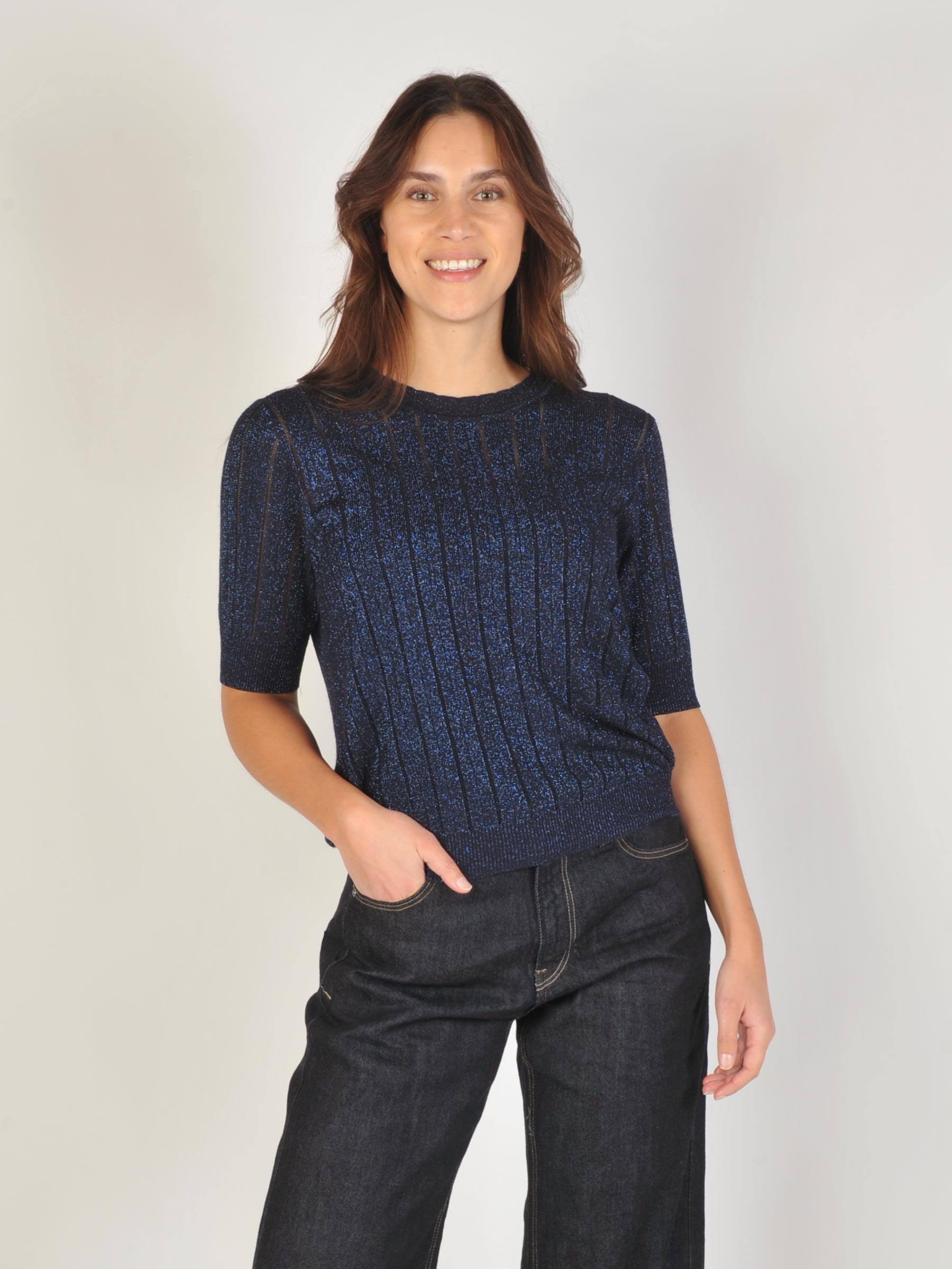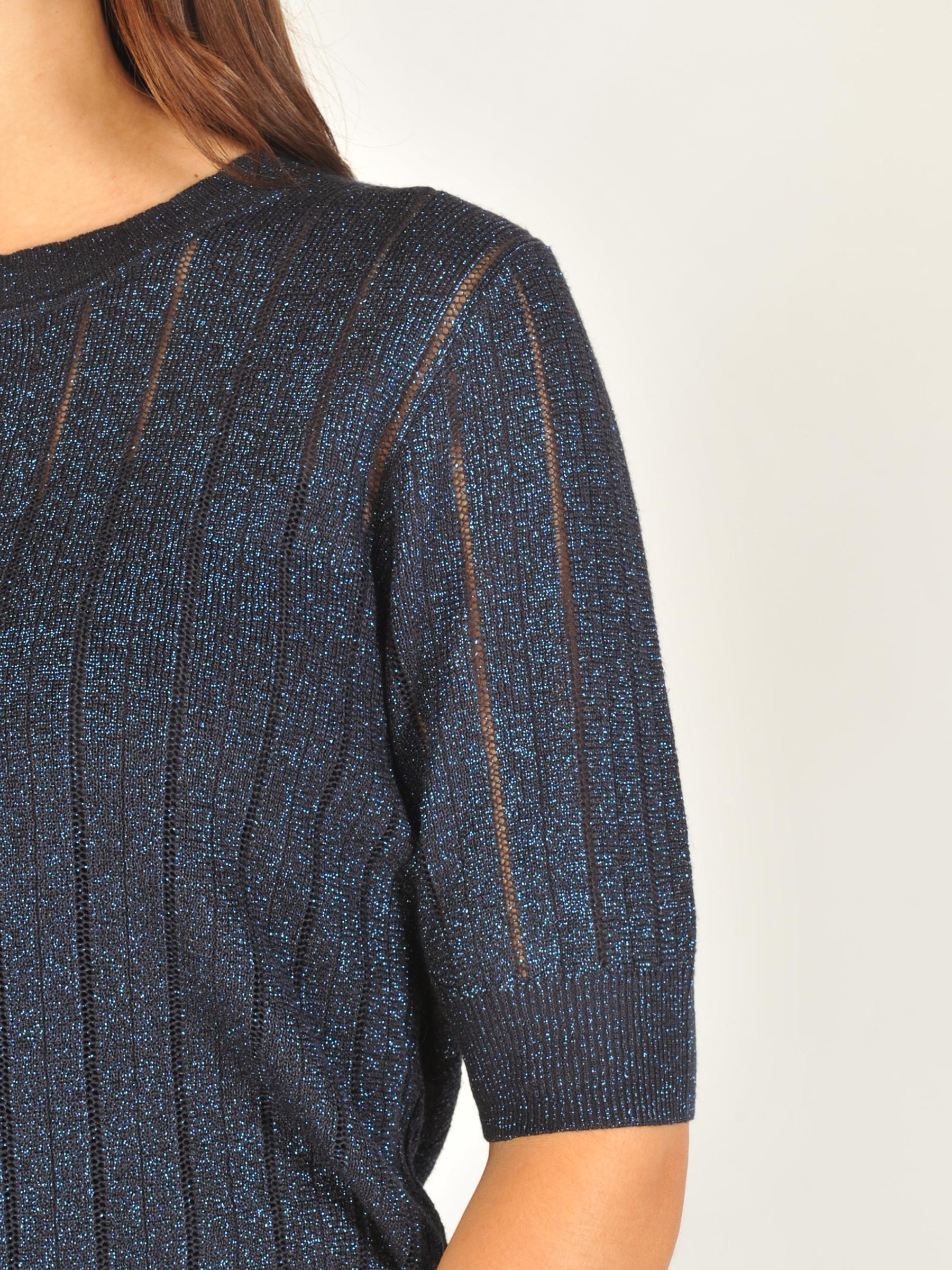 Deze glitter top van Nümph brengt meteen wat sparkle in je dag. De subtiele glitter en ingebreide verticale strepen geven een feestelijke touch, terwijl de halve mouw zorgt dat je ‘m het hele jaar door kunt dragen. Combineer met een jeans of rok en je bent klaar voor alles van koffiedate tot avondje uit.