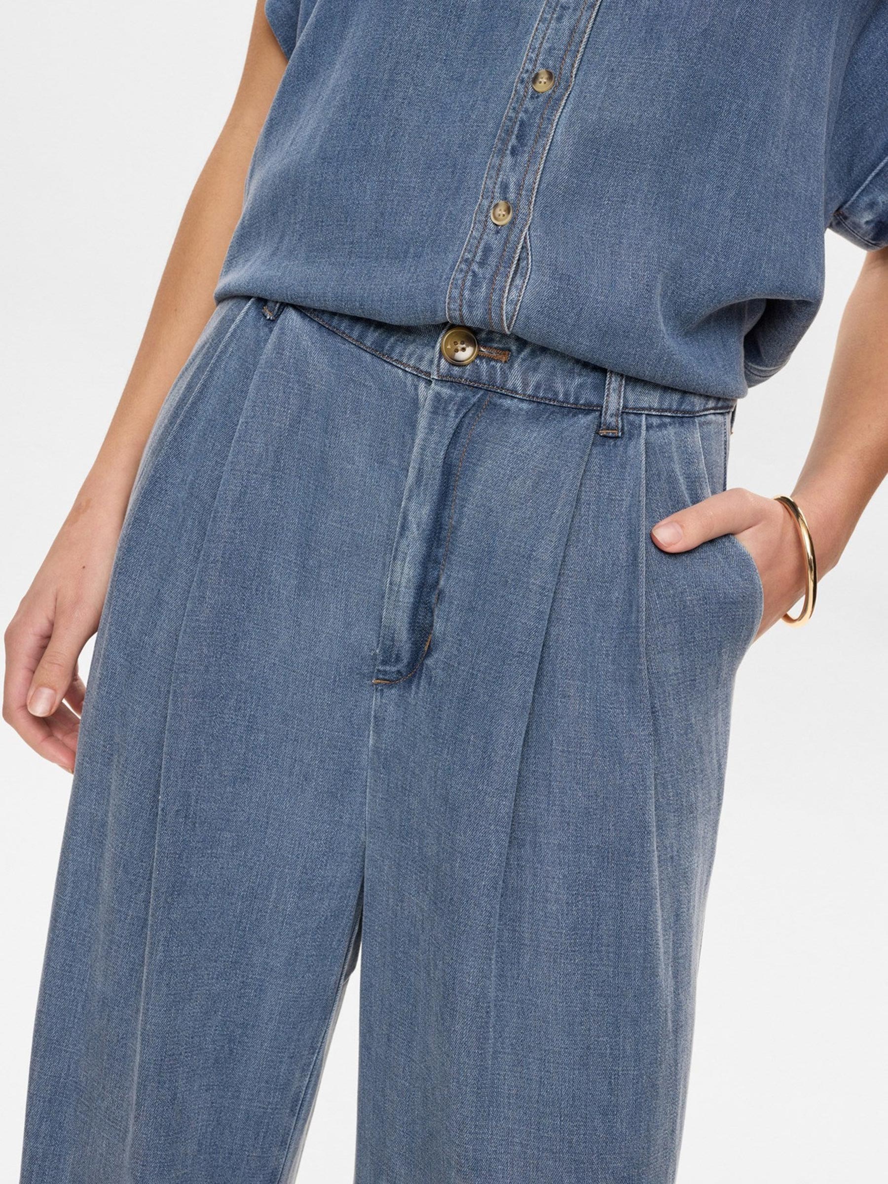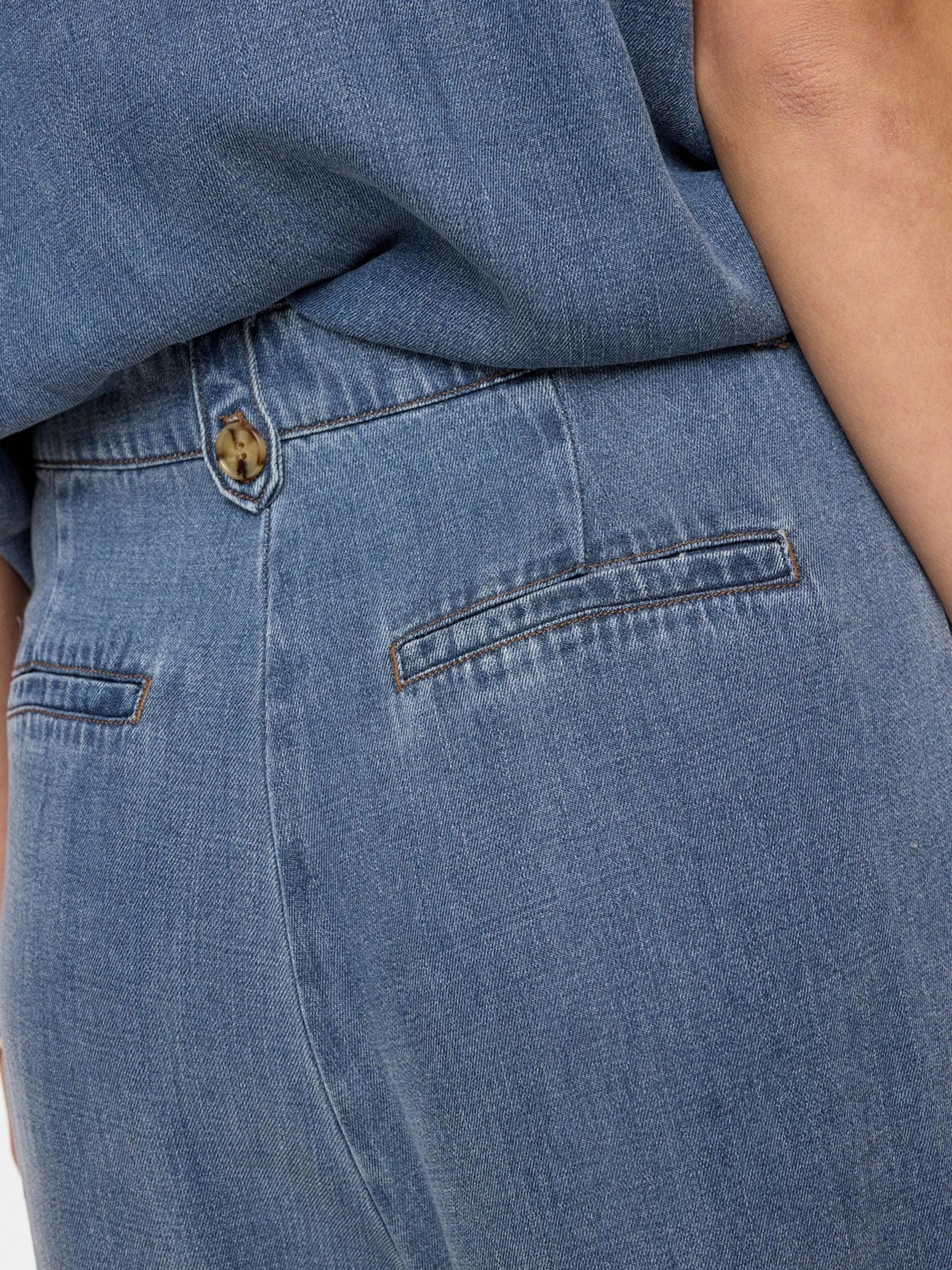 De nuelida pants van Numph heeft de looks van een klassieke spijkerbroek door de snow washed denim wassing, maar draagt heerlijk luchtig door de soepele stof. Numph laat met dit ontwerp zien dat duurzame materialen en een hippe pasvorm perfect samengaan.