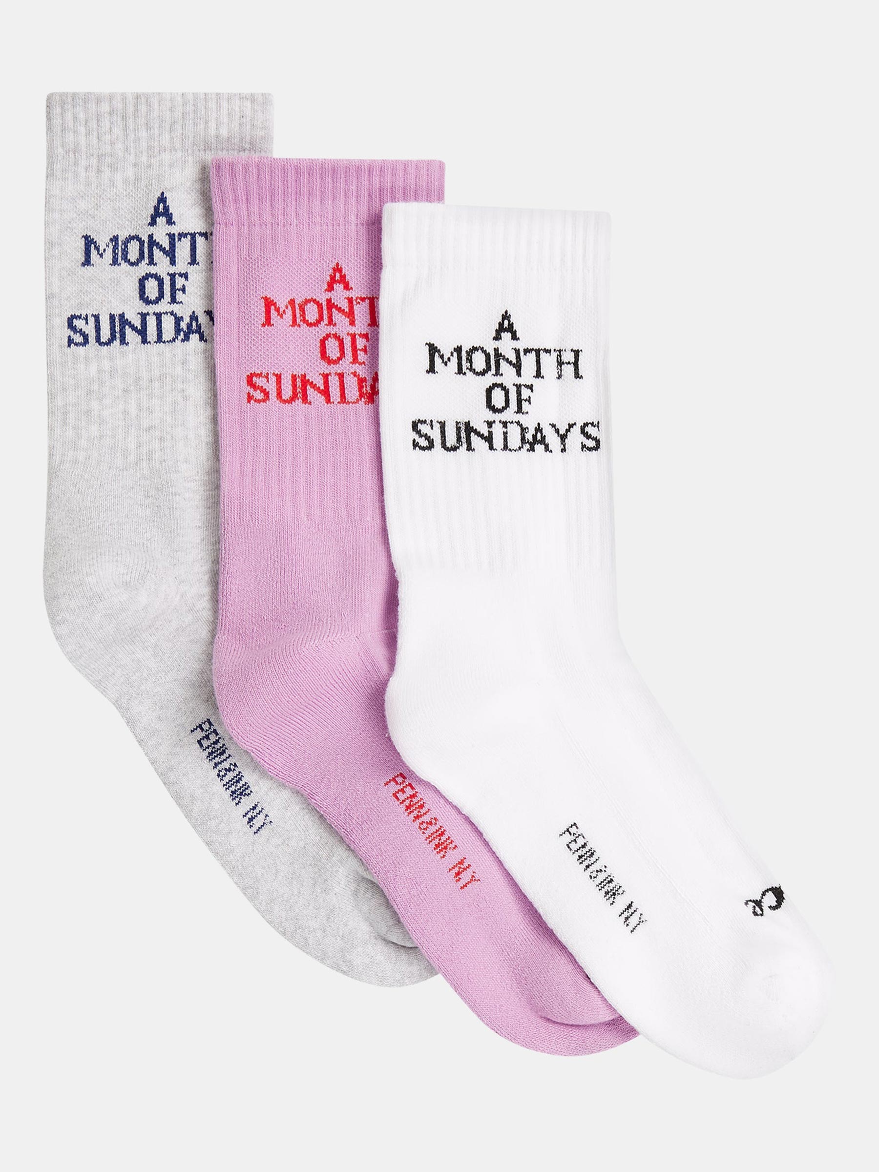 Met de 3-pack a month of sundays van Penn & Ink N.Y. geef je jouw voeten elke dag een vrolijke en comfortabele start. Deze set bevat drie paar sokken in verschillende kleuren, elk voorzien van een speelse tekst die perfect past bij een relaxte lifestyle.