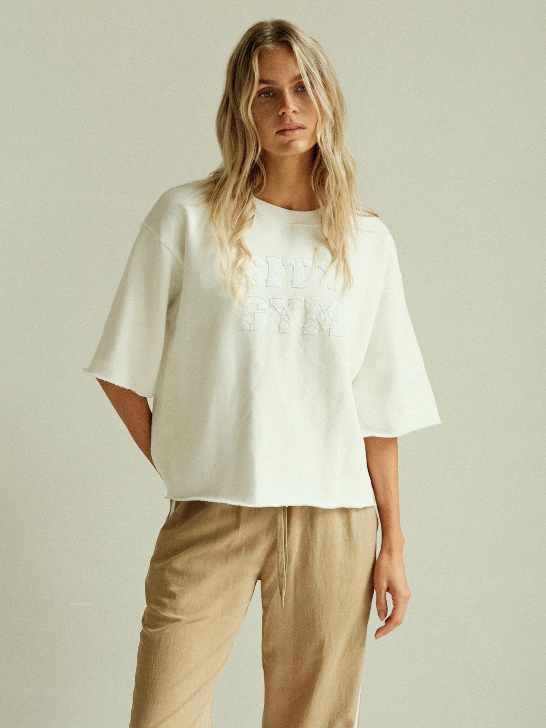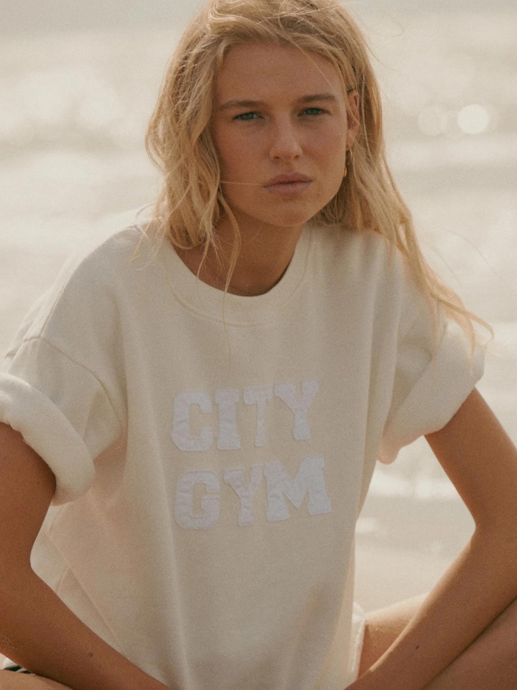 - Ton sur ton "City Gym" print op de voorkant