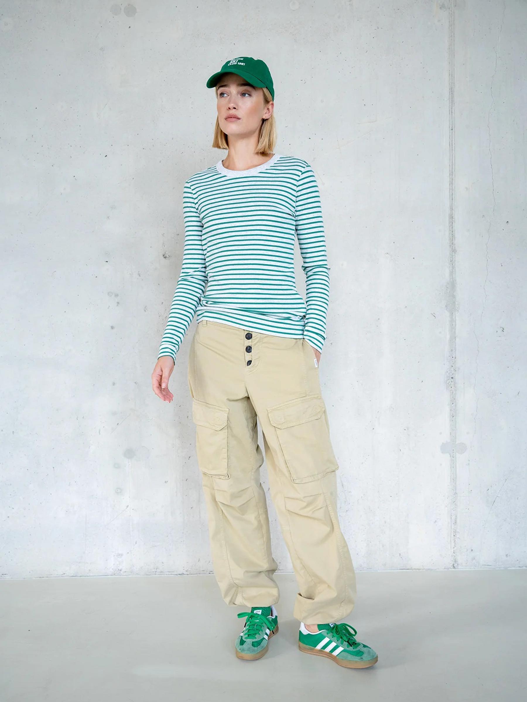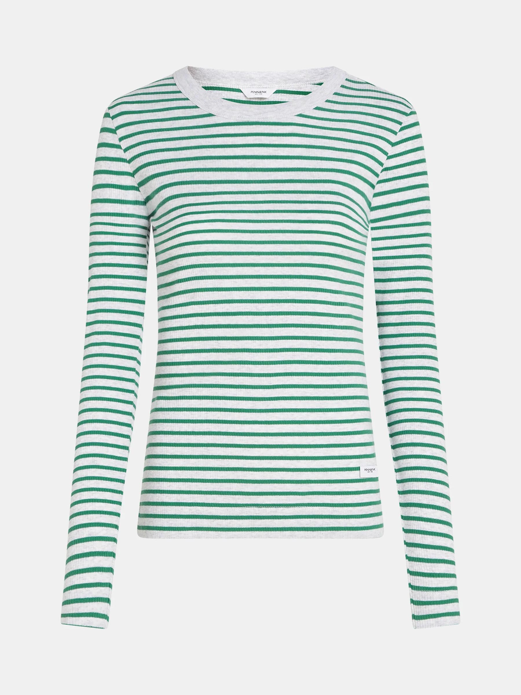 Dit groene longsleeve shirt van Penn & Ink is zo’n item dat altijd goed zit. De zachte ribstof en frisse kleur geven een relaxte look die je makkelijk combineert met jeans, pantalon of rok. Een fijne basic die je keer op keer uit de kast pakt.