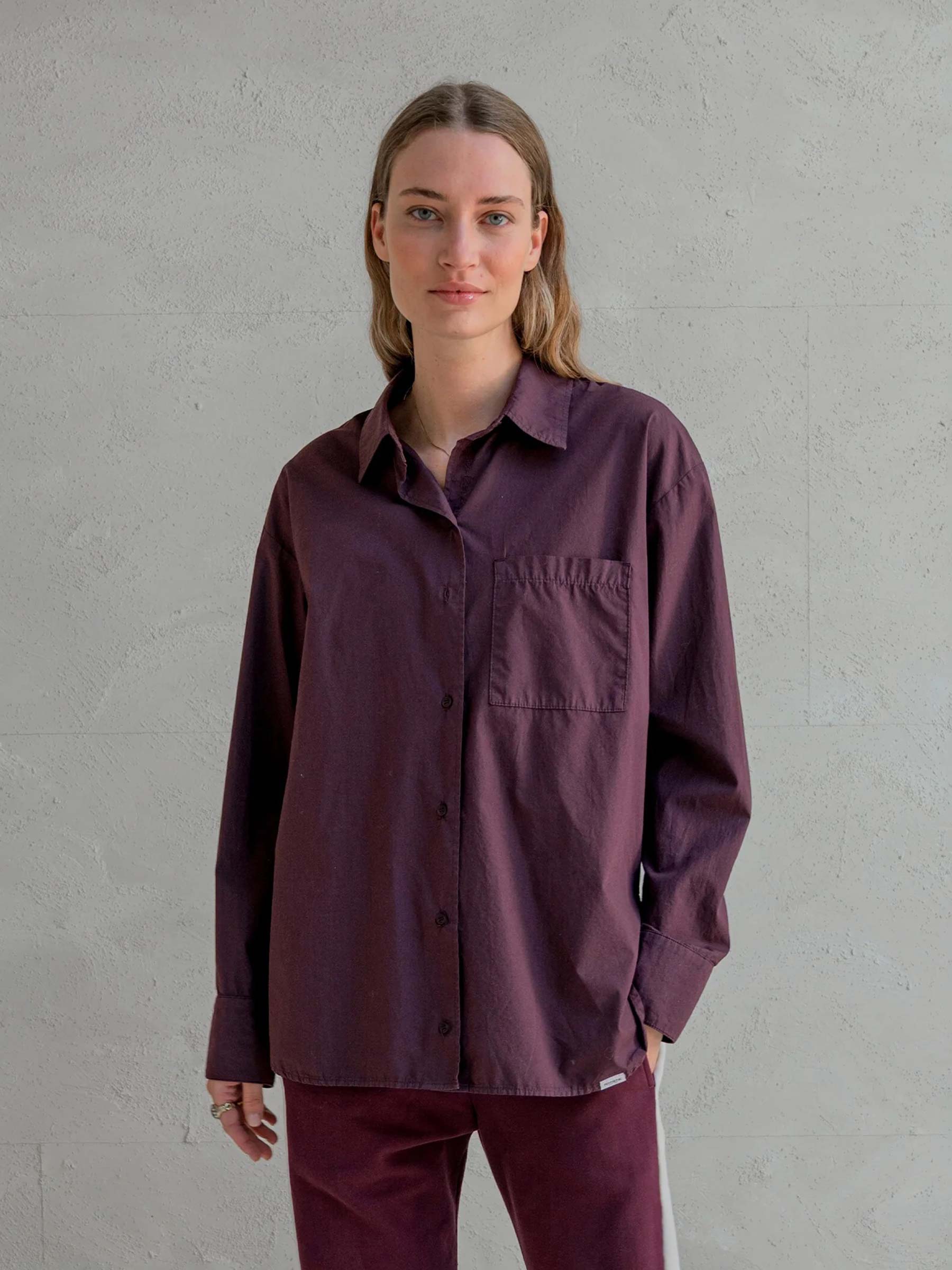 Deze auberginekleurige blouse van Penn & Ink verdient echt een vaste plek in je kast. De kleur maakt elke outfit net wat warmer en de klassieke knoopsluiting met kraag zorgt ervoor dat je er alle kanten mee op kunt. Draag los en nonchalant of juist netjes ingestopt, dit is er eentje die altijd werkt.