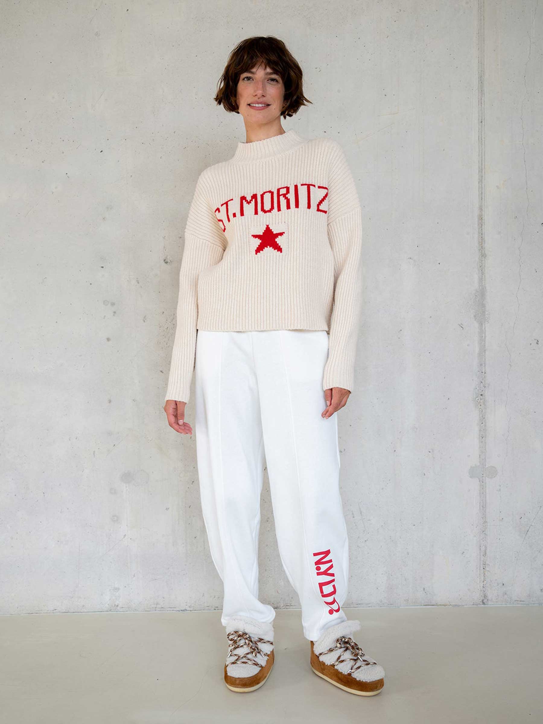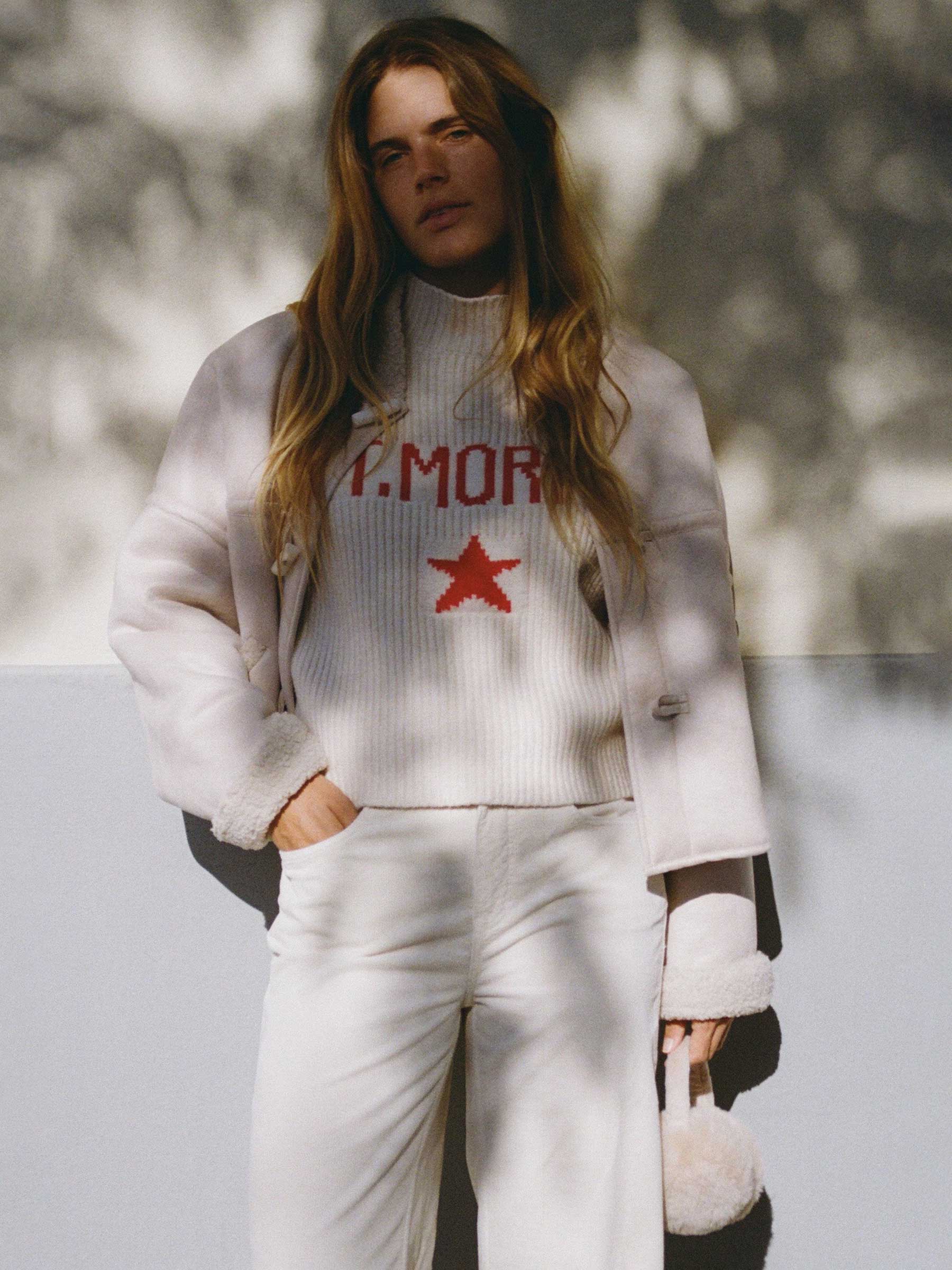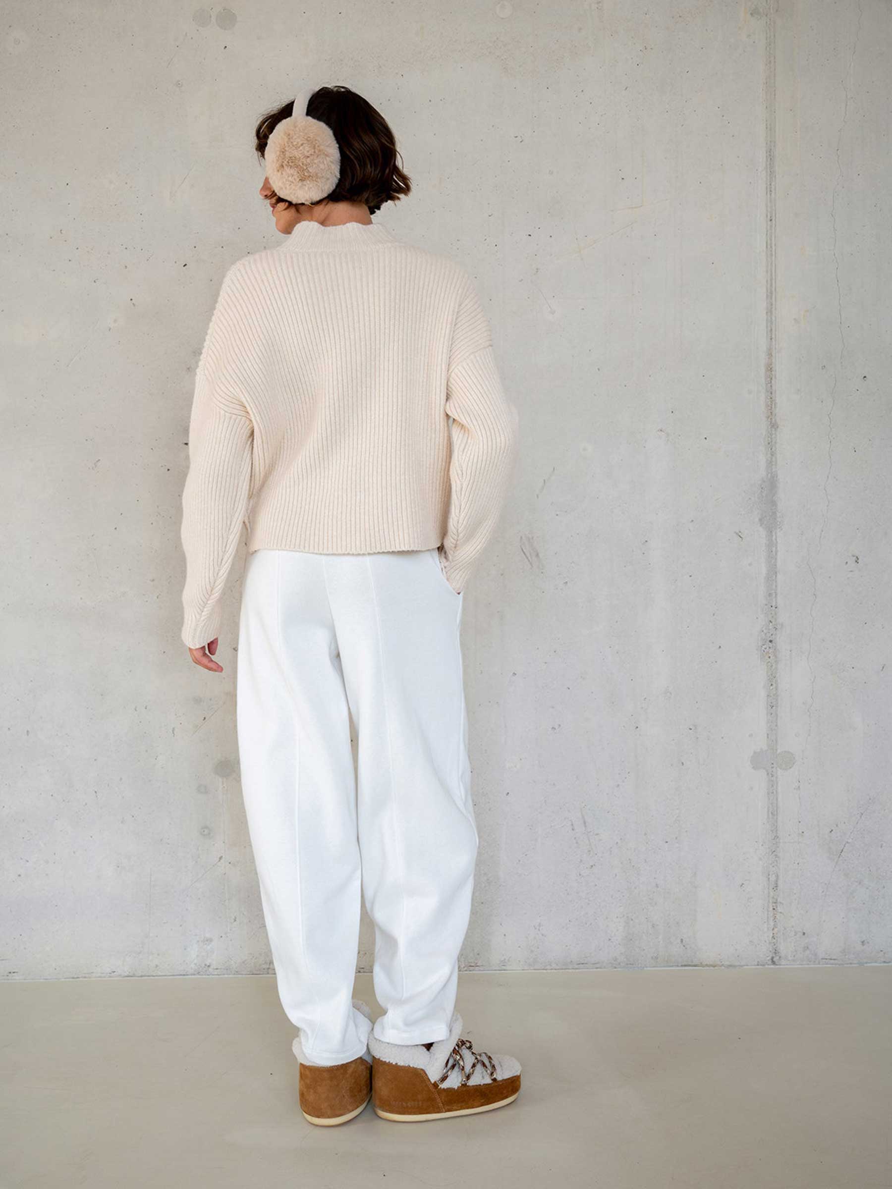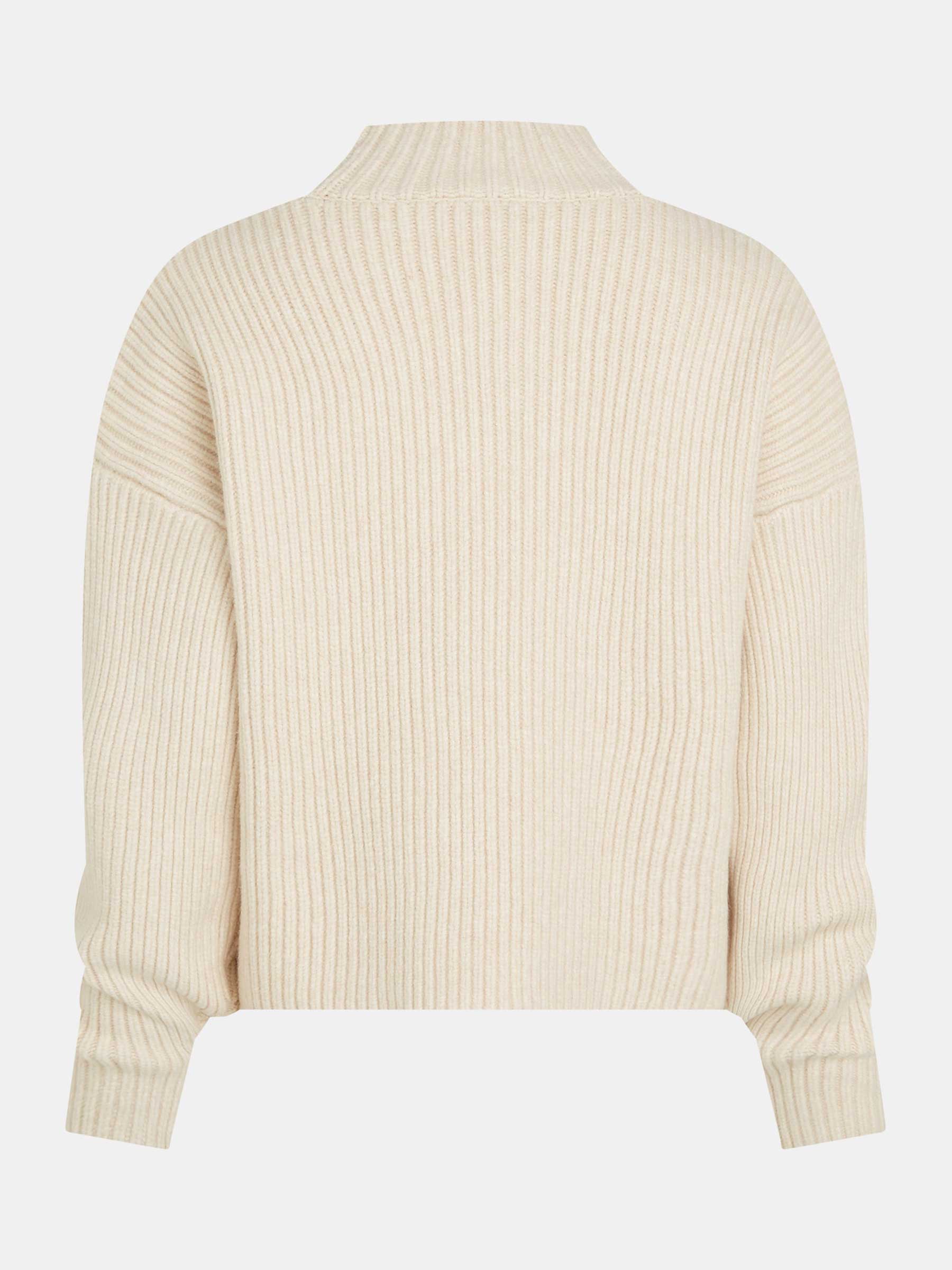 Deze ecru trui van Penn & Ink is heerlijk zacht en heeft een sportieve, cozy look. De opstaande kraag en grove ribstructuur geven extra warmte op frisse dagen. Mooi met ton-sur-ton tinten of juist een donkere jeans.