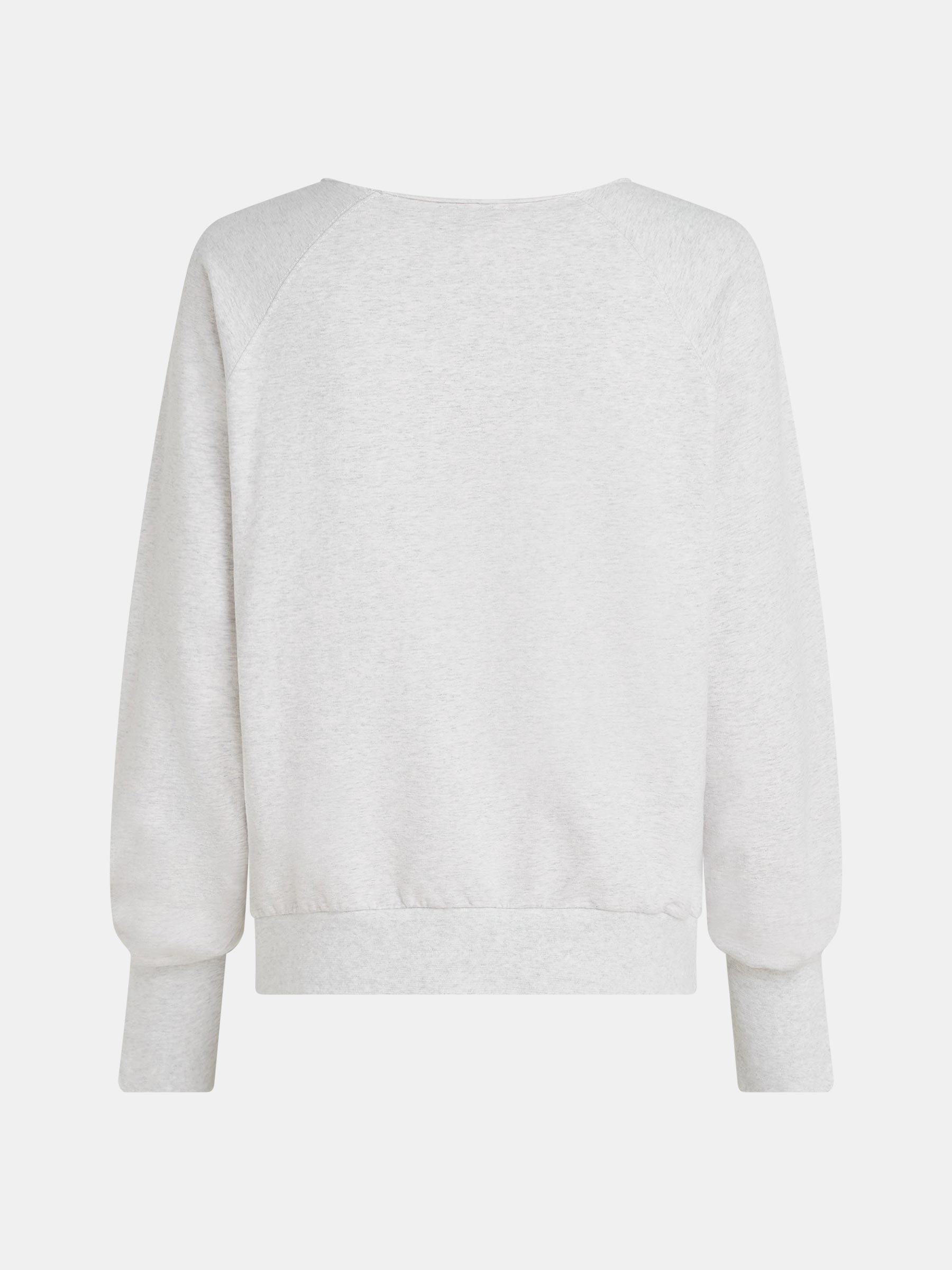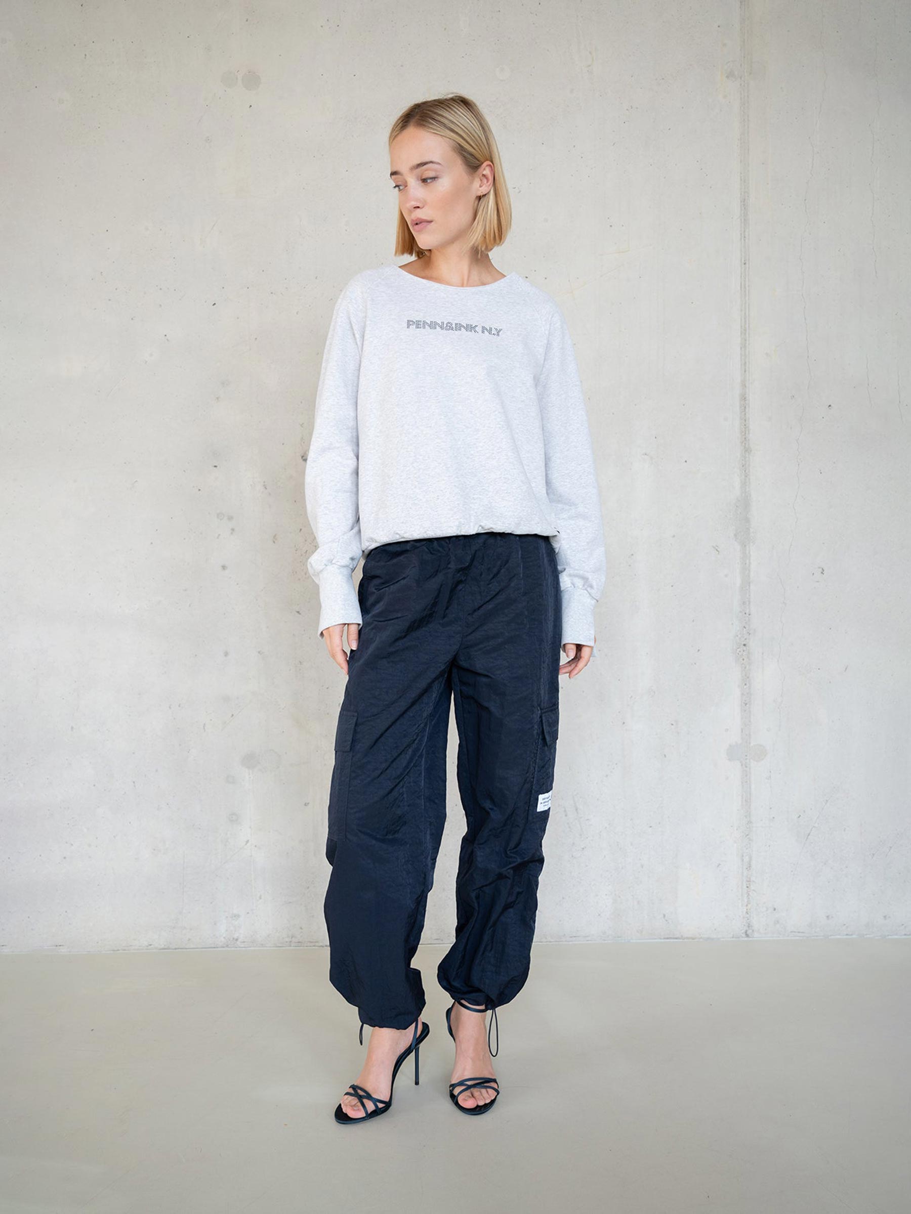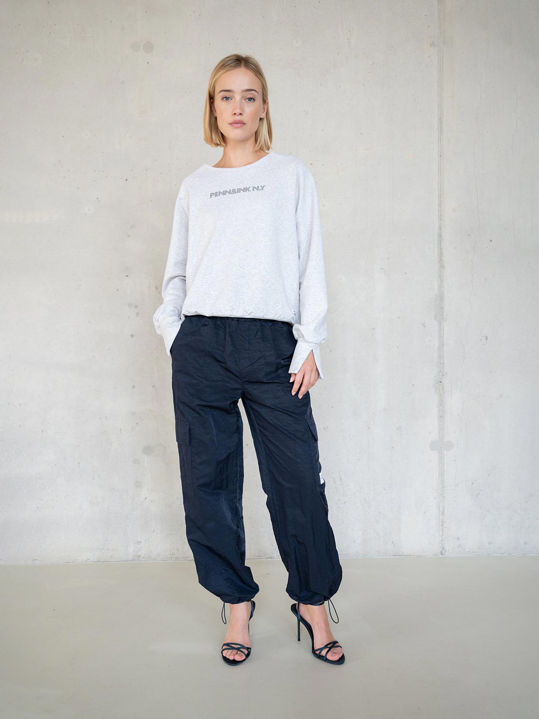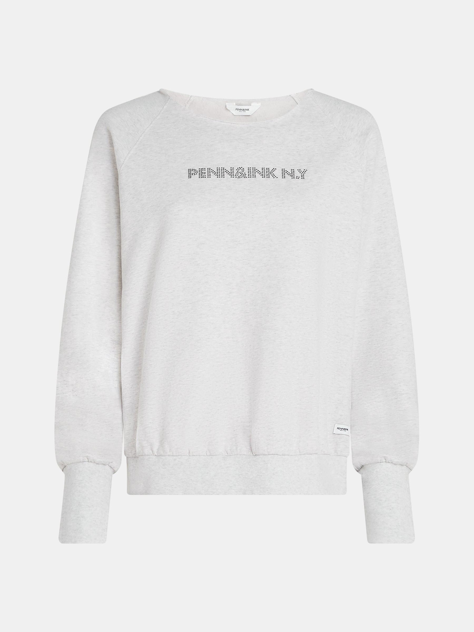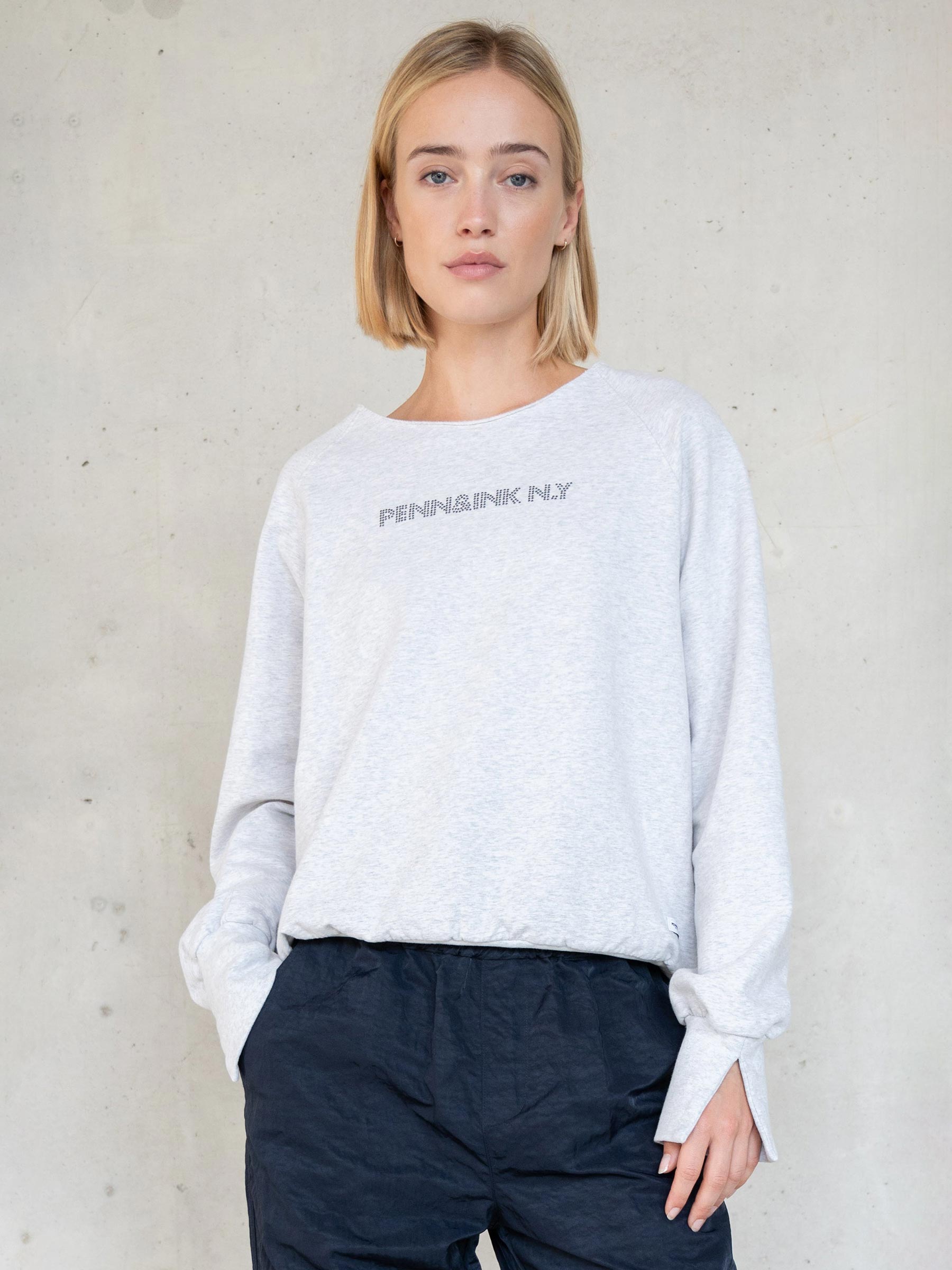Deze lichtgrijze sweater van Penn & Ink is zo’n item dat altijd goed voelt. De zachte melangestof en het subtiele logo op de borst geven haar een relaxte, sportieve uitstraling met een moderne twist. Combineer met denim voor een casual dag of met een pantalon voor een easy-going citylook.