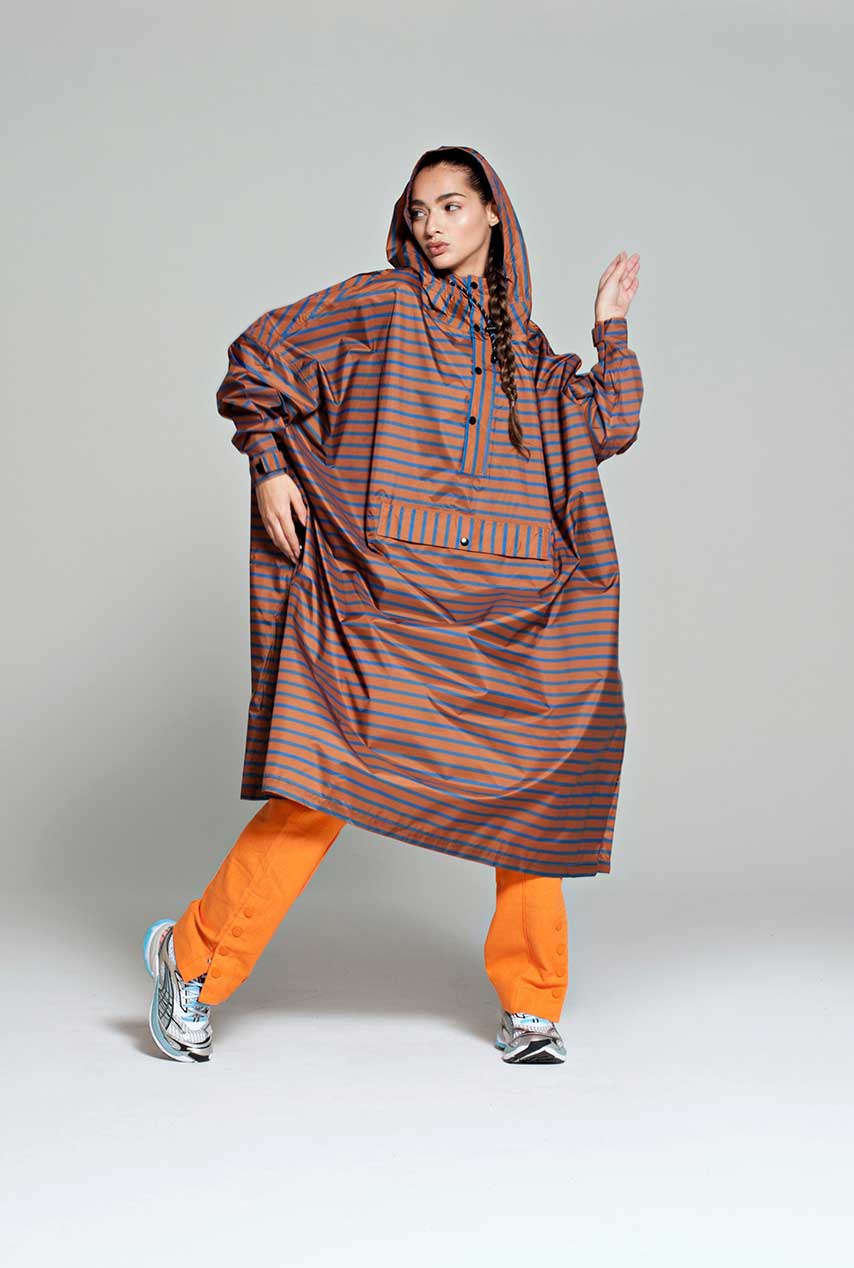 Gestreepte regenponcho van het merk Rainkiss in bruin en blauw. Deze poncho's zijn gemaakt van gerecycled polyester en zijn 100% waterdicht! De poncho heeft een borstzak die tegelijkertijd dient als handige opbergtas, zodat je je regenponcho klein en compact kunt meenemen. De regenjas heeft een verstelbare capuchon en drukknopen aan beide zijkanten, perfect voor op de fiets. Daarnaast is de poncho voorzien van getapete naden en heeft hij een waterkolom van 7000mm. Wij gaan blij de regen in!