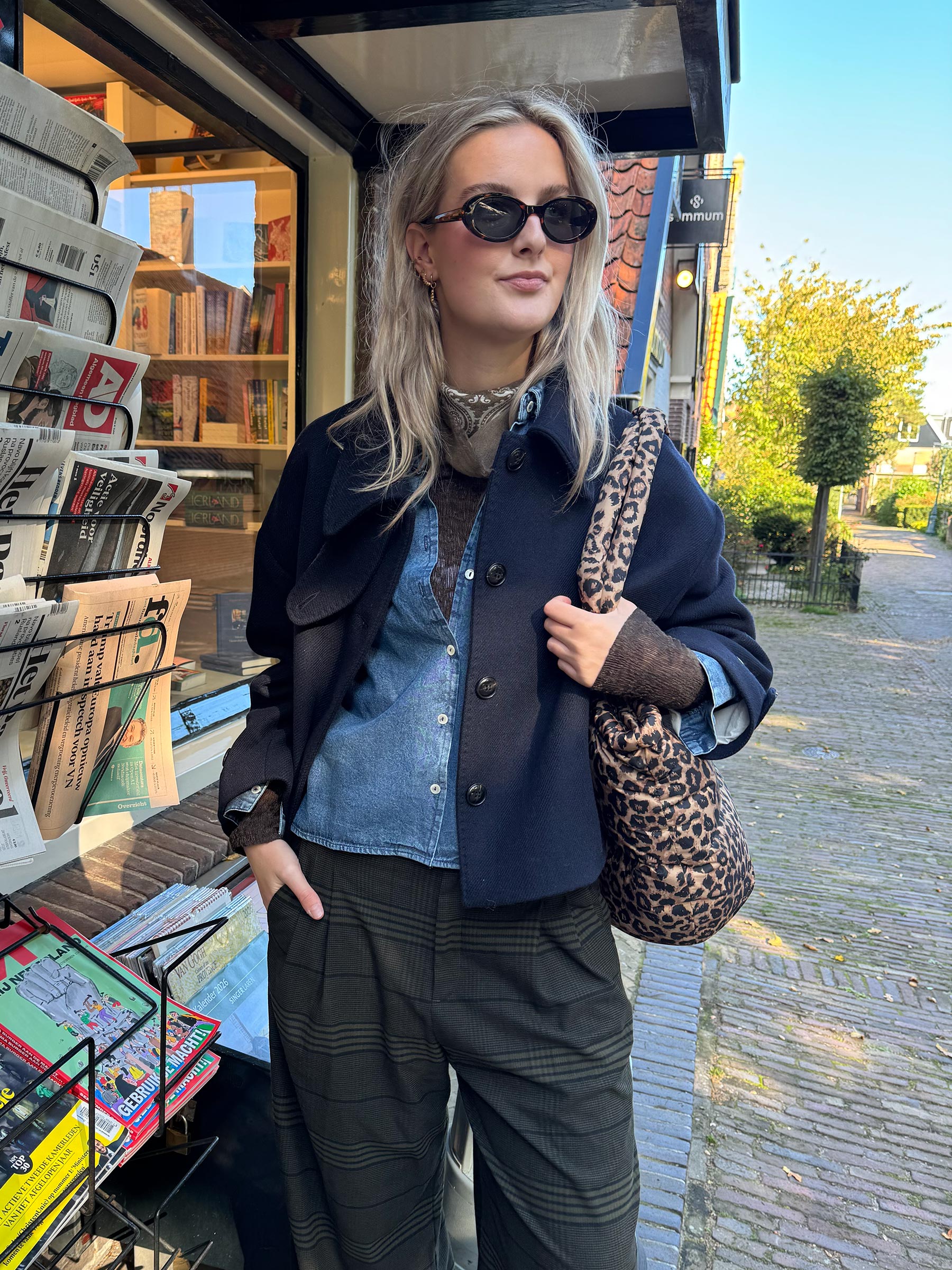 Met deze wollen jacket van Ruby Tuesday zit je goed voor het aankomende seizoen! De boxy jas is beschikbaar in het donker blauw en licht bruin en heeft een een kraag die omhoog gezet kan worden, perfect voor de koude dagen. Combineer deze parel met een warme trui en een jeans om je outfit compleet te maken.