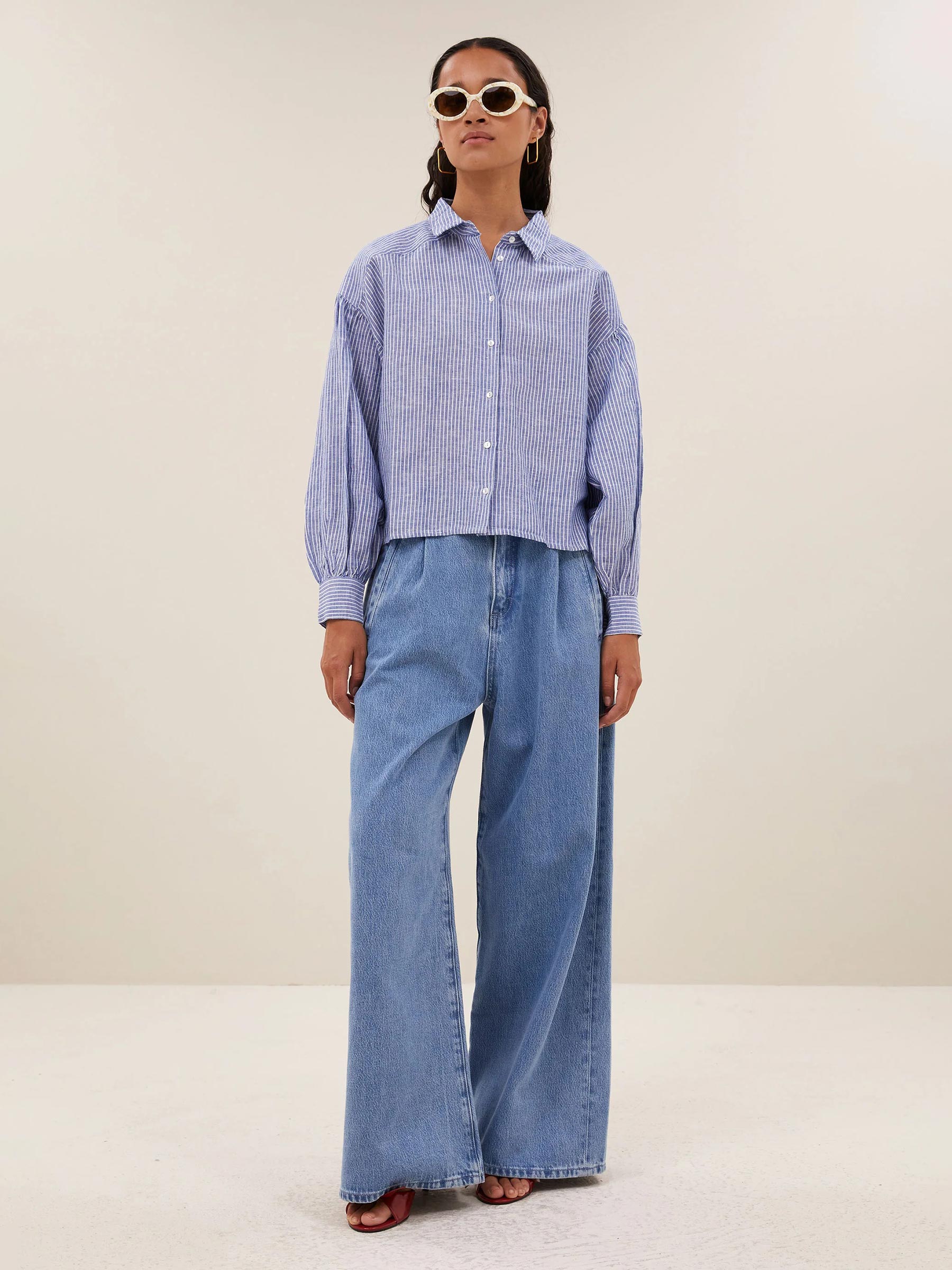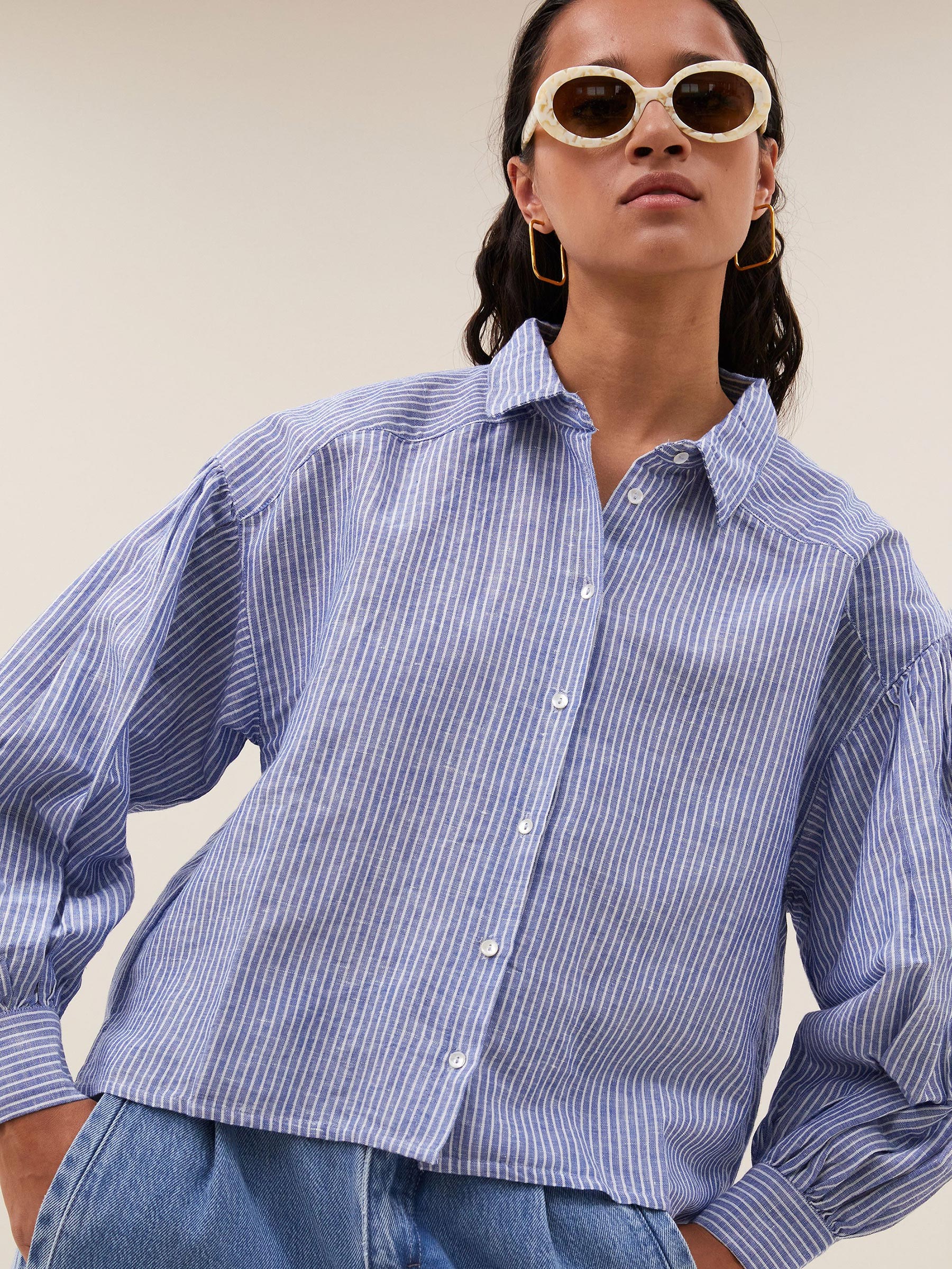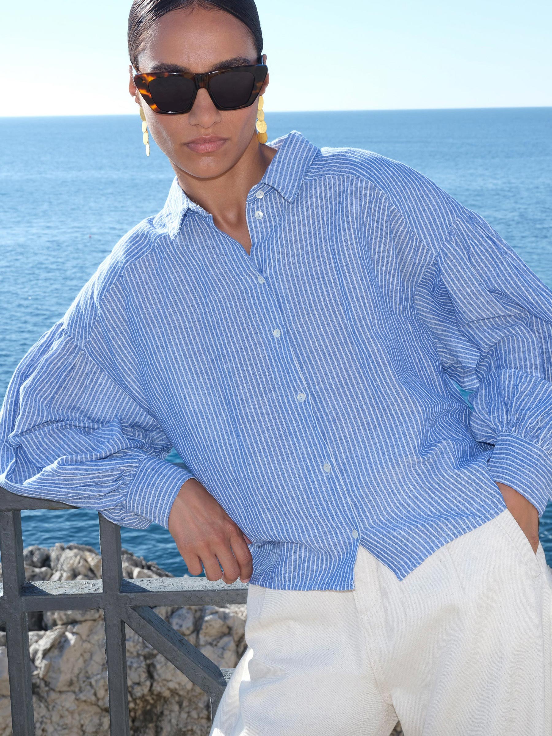 Deze blauw gestreepte blouse van by-bar is perfect voor zonnige dagen waarop je look fris en relaxed mag zijn. Luchtig linnen, fijne strepen en zo’n fit die meteen lekker valt.