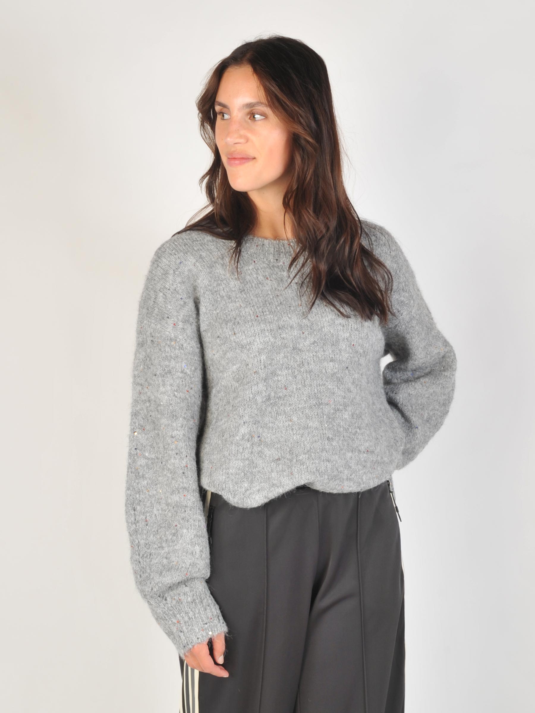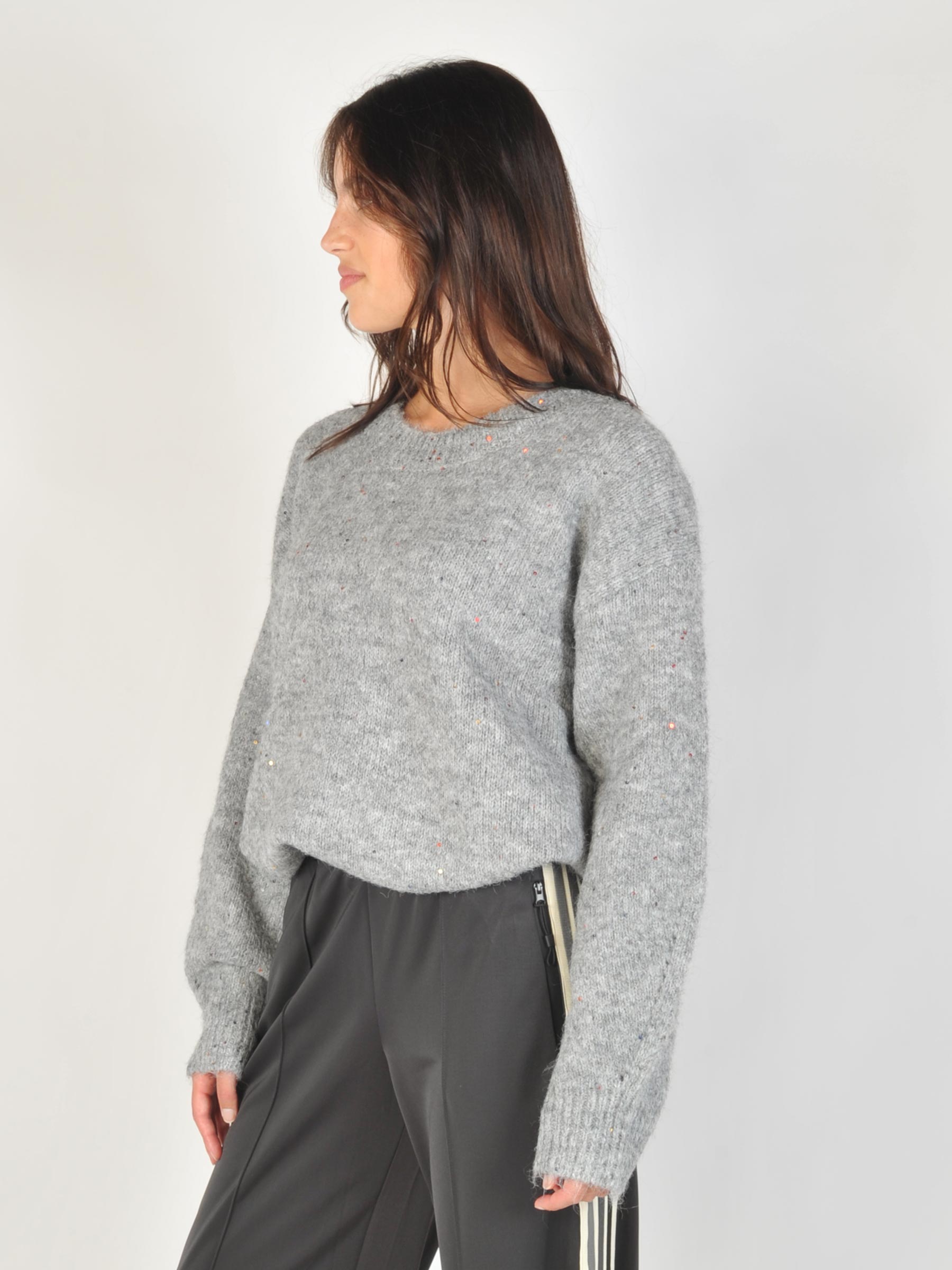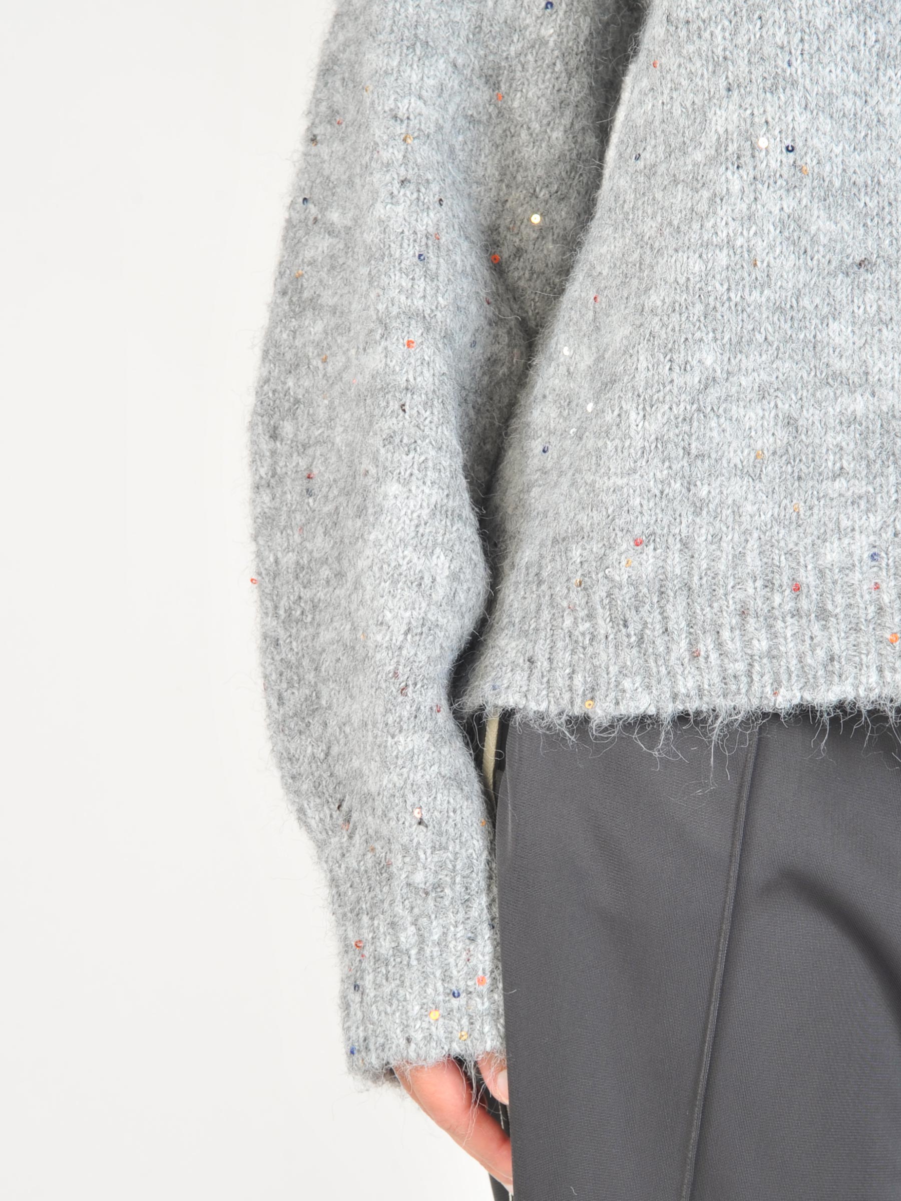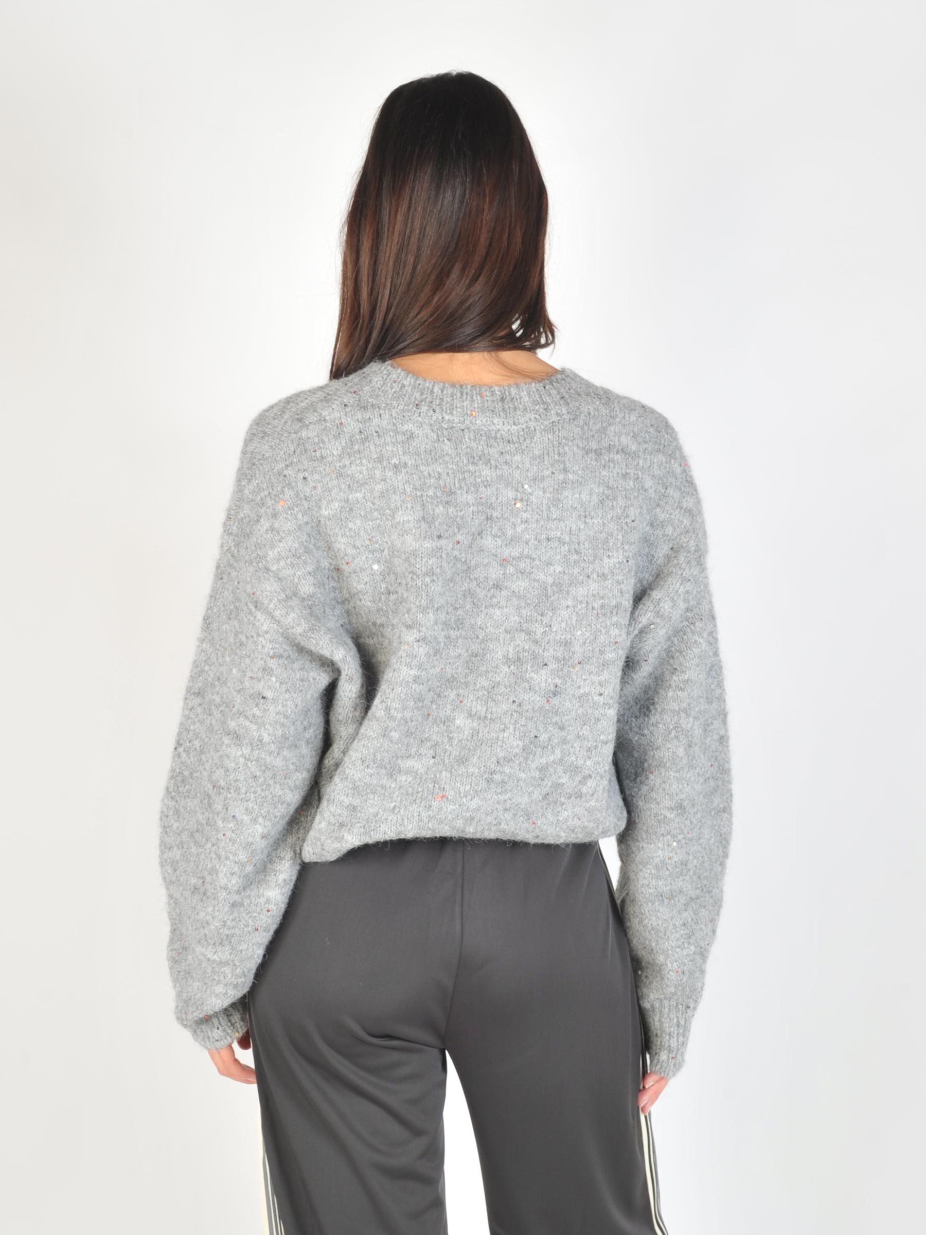 Deze grijze trui van See U Soon brengt subtiele glans in je look. De zachte knit is afgewerkt met kleine gekleurde pailletten die het licht mooi opvangen. Perfect voor dagen waarop je comfortabel wilt zijn en toch iets bijzonders wilt dragen.