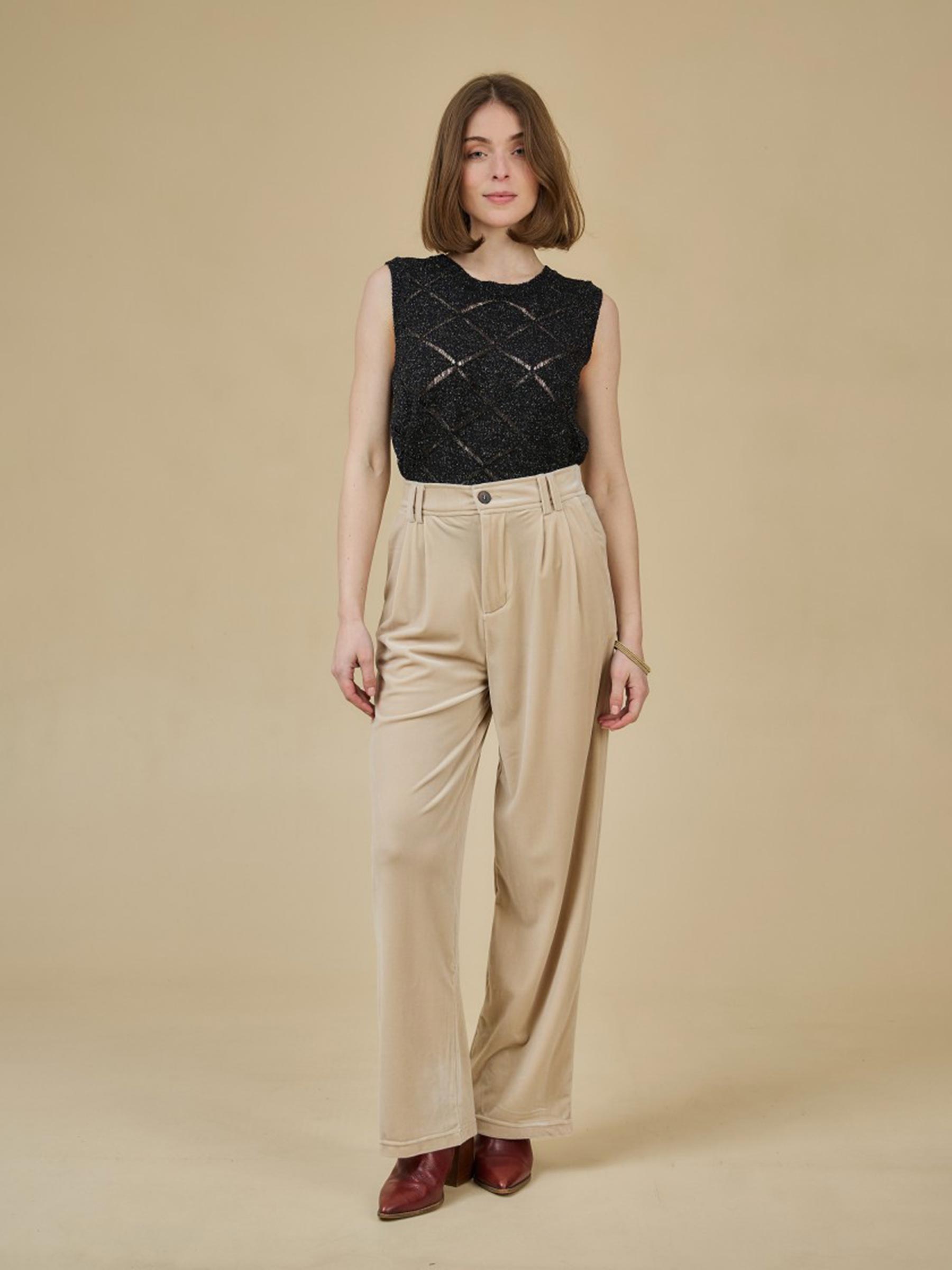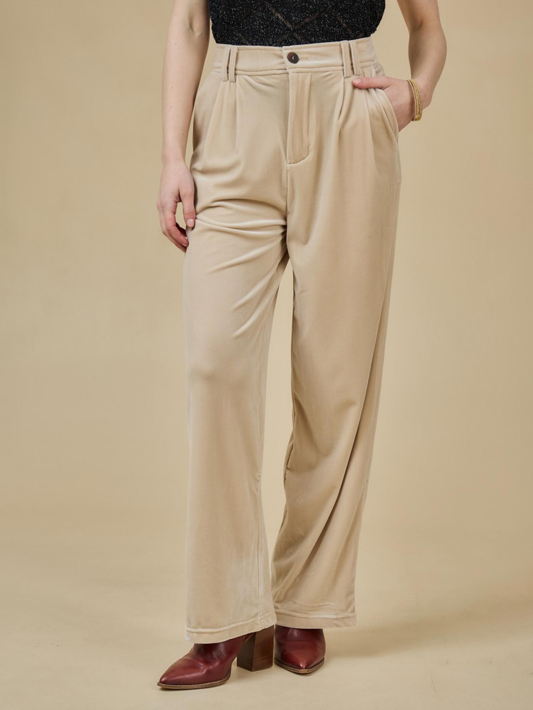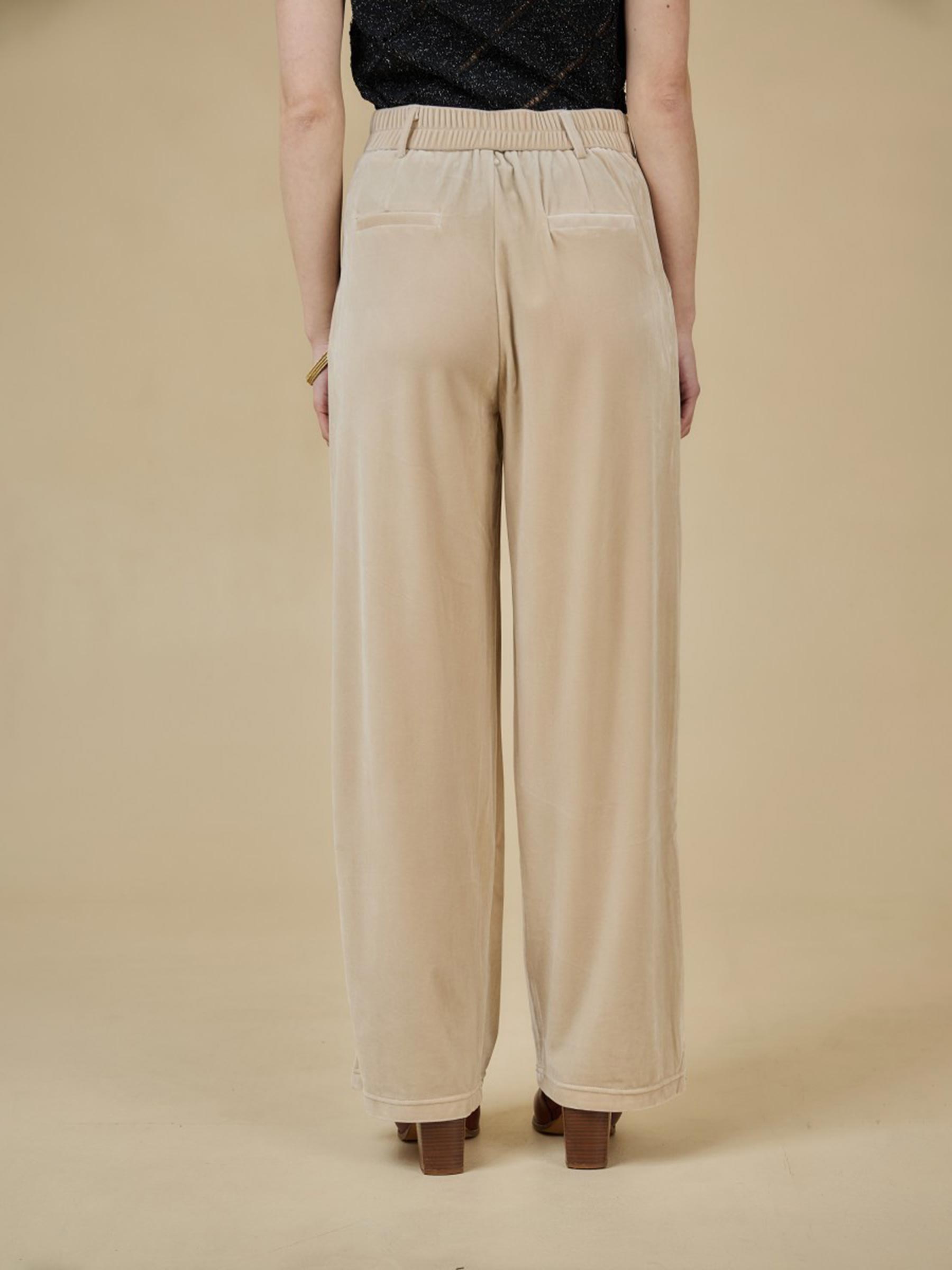 Deze beige velvet pantalon van See U Soon is elegant, soepel en perfect in balans tussen chic en relaxed. De zachte stof met lichte glans valt mooi om het lichaam en beweegt met je mee. Combineer met de bijpassende blazer voor een stijlvolle set die moeiteloos meegaat van dag tot avond.