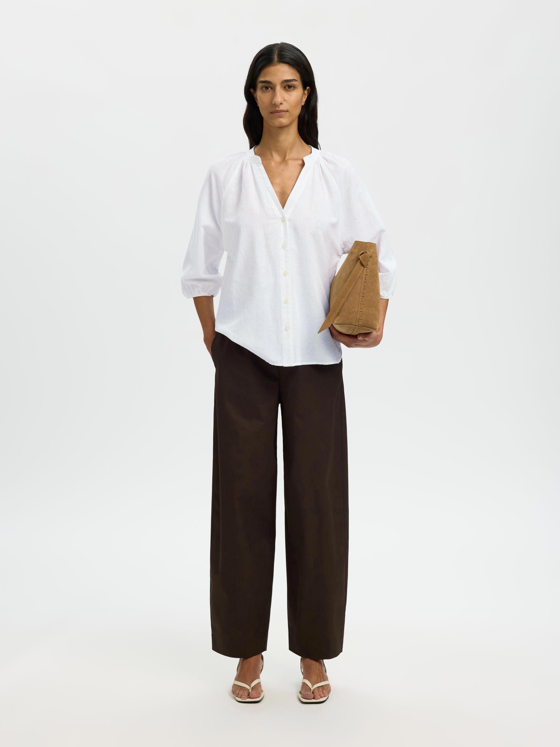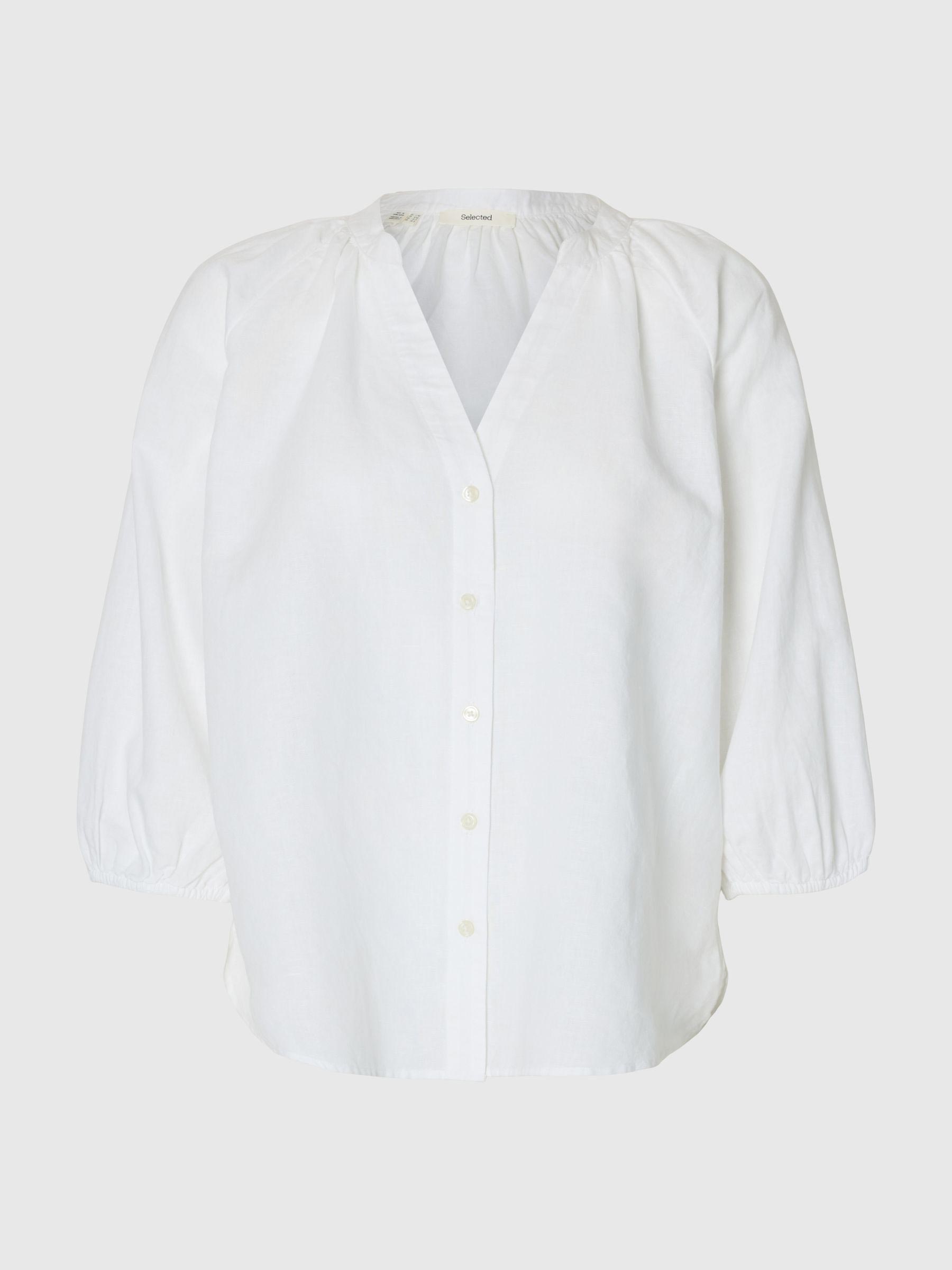 Luchtig, licht en precies goed: deze linnenmix blouse van Selected Femme voelt heerlijk aan op je huid en is zo'n item dat je steeds weer uit je kast trekt. De driekwart ballonmouwen met elastische boordjes en de mooie v-hals geven de blouse net dat beetje extra. Met een mix van linnen en gerecycled katoen is dit ook nog eens een fijne duurzame keuze.