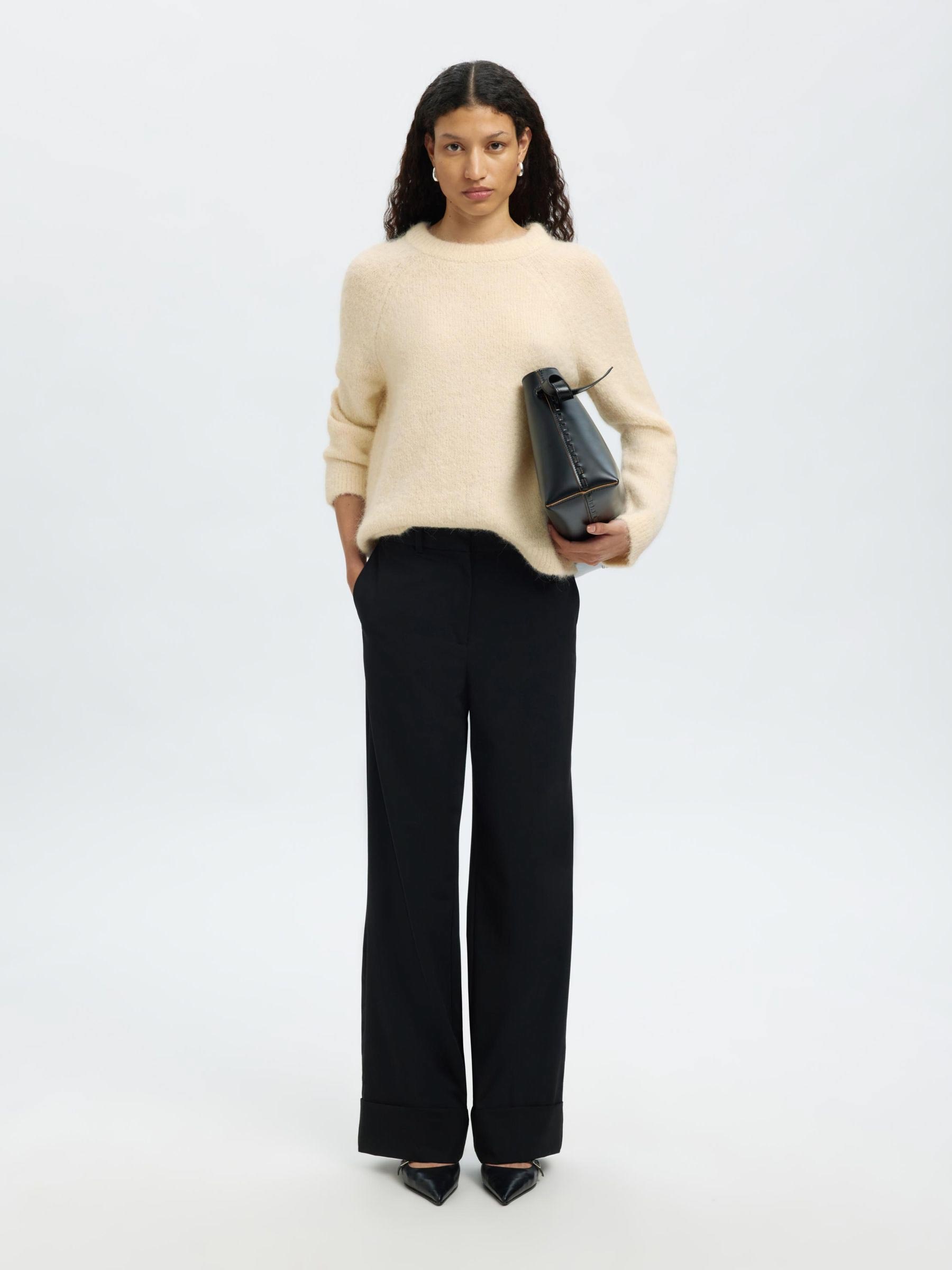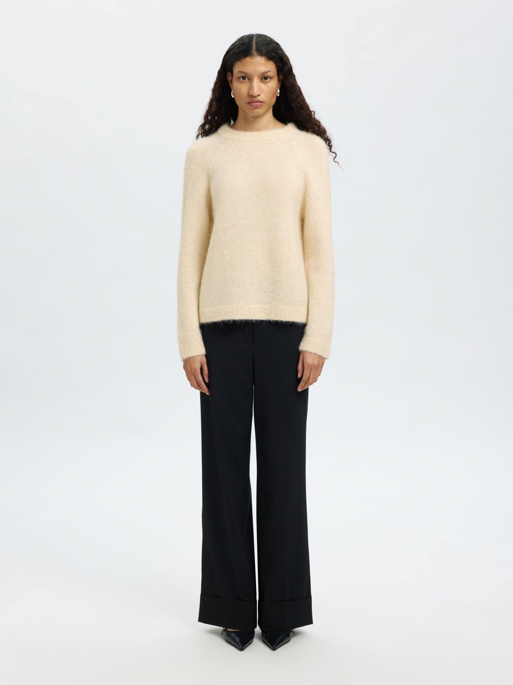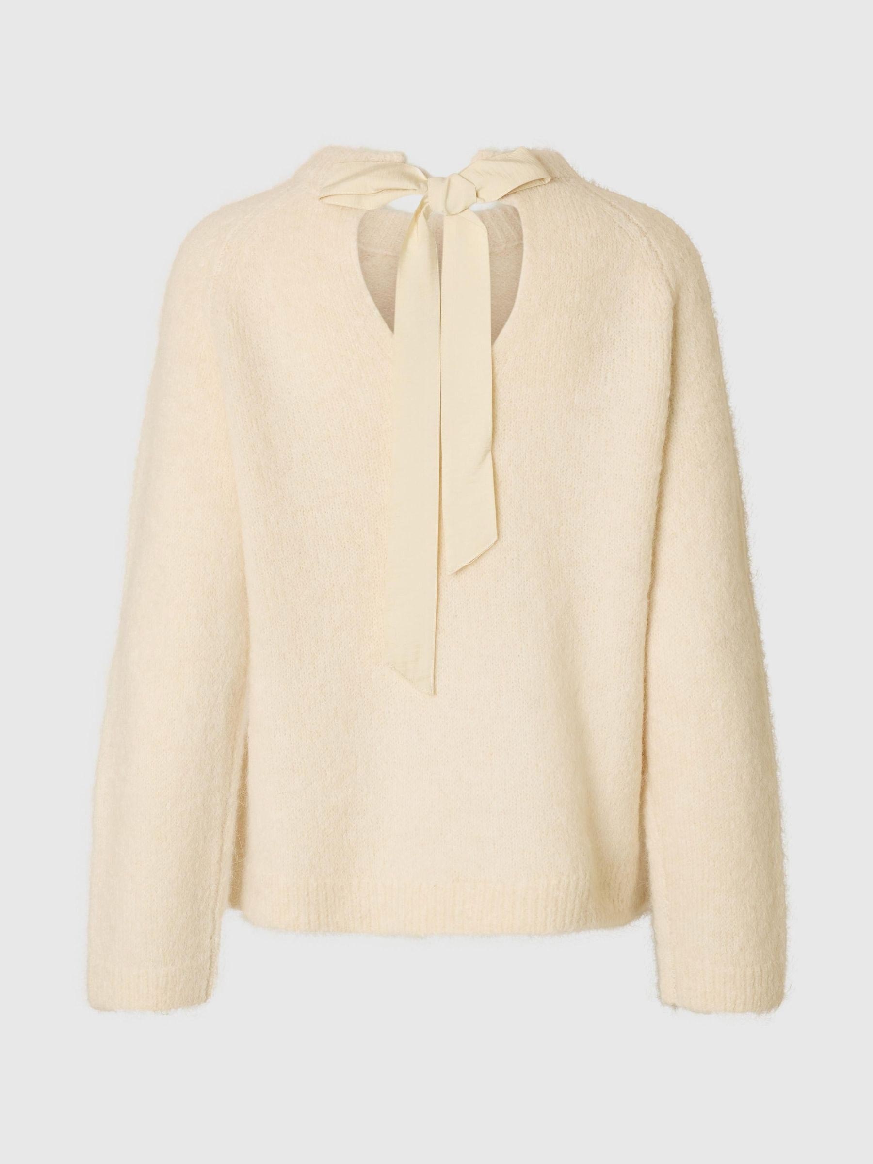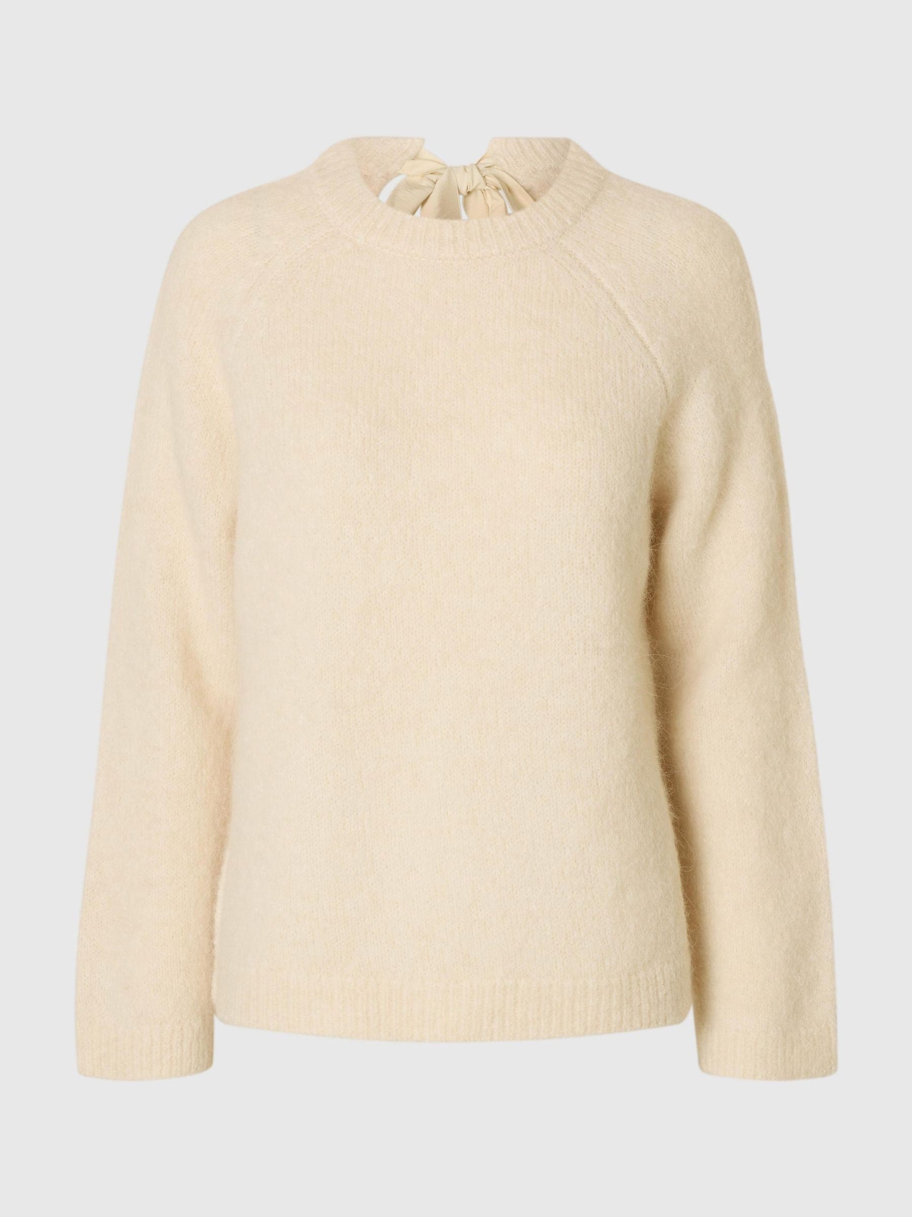 Deze lichtbeige trui van Selected Femme is zacht, vrouwelijk en nét even anders. De open rug met strikdetail geeft een verrassend accent, terwijl de alpacablend heerlijk warm aanvoelt. Combineer met een pantalon of rok voor een classy, cozy look.