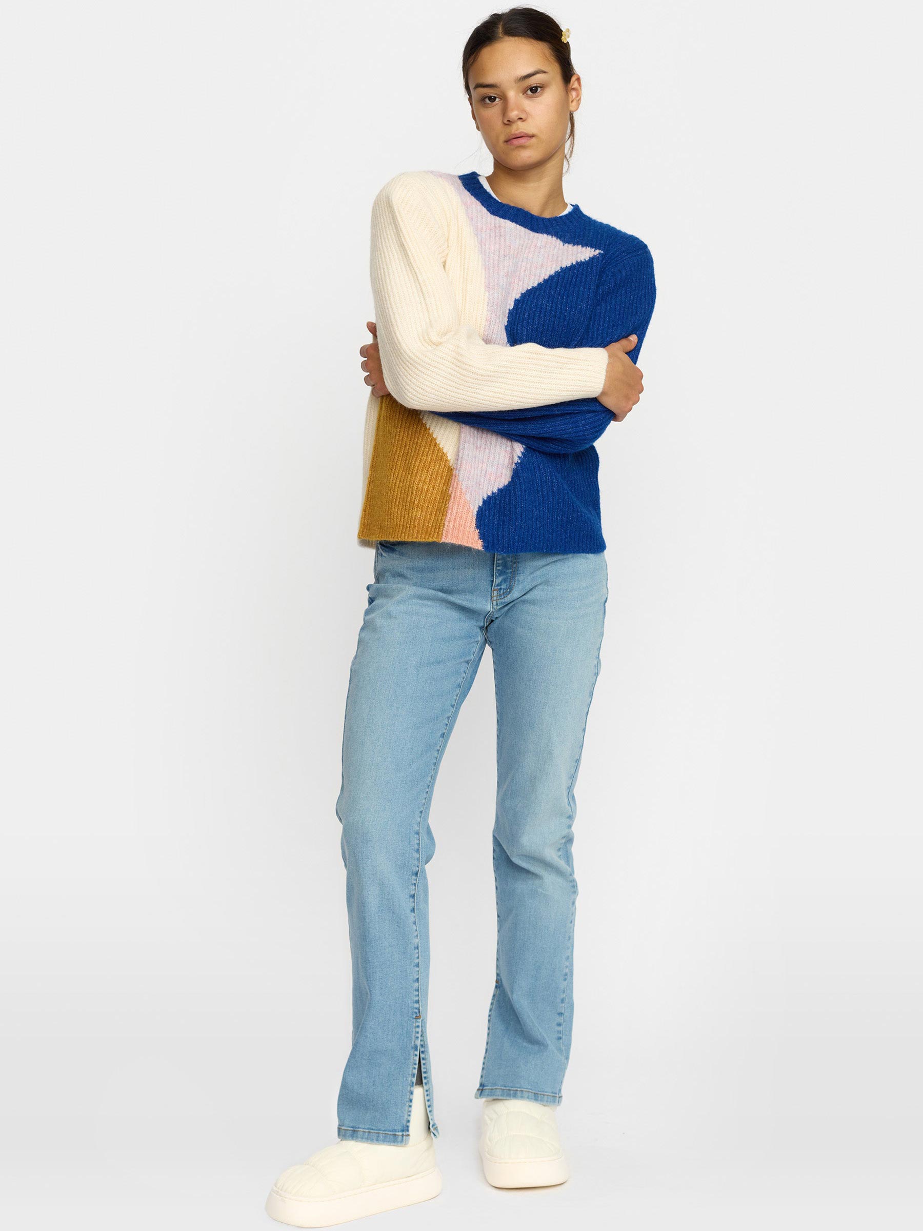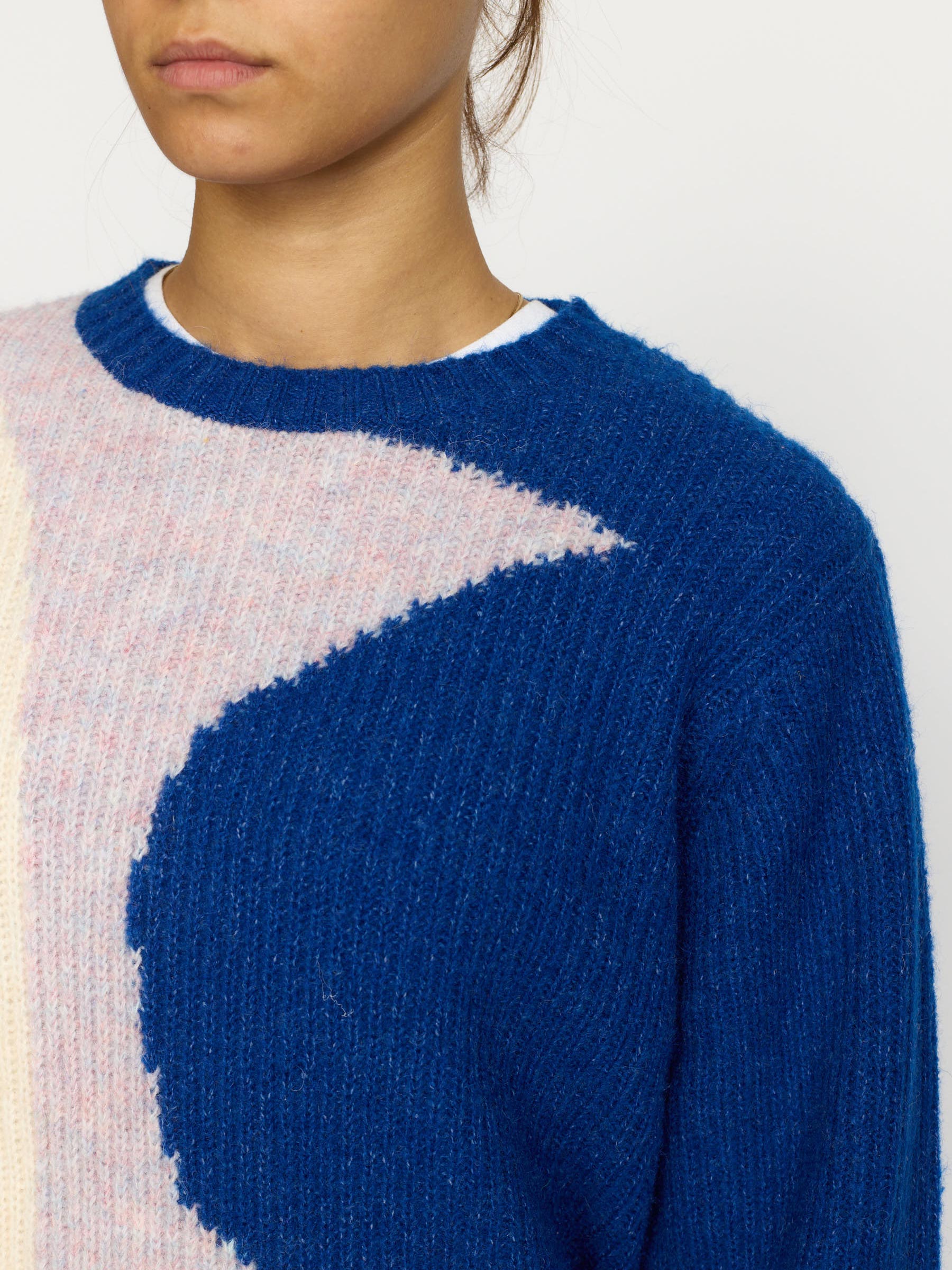 Deze blauwe gebreide trui van Selfhood valt op door het speelse kleurvlakontwerp. De mix van crème, blauw, roze en oker geeft de knit een artistieke uitstraling die perfect past bij een eigentijdse look. Gemaakt van een zachte wolblend die comfortabel zit en warmte biedt op koelere dagen.