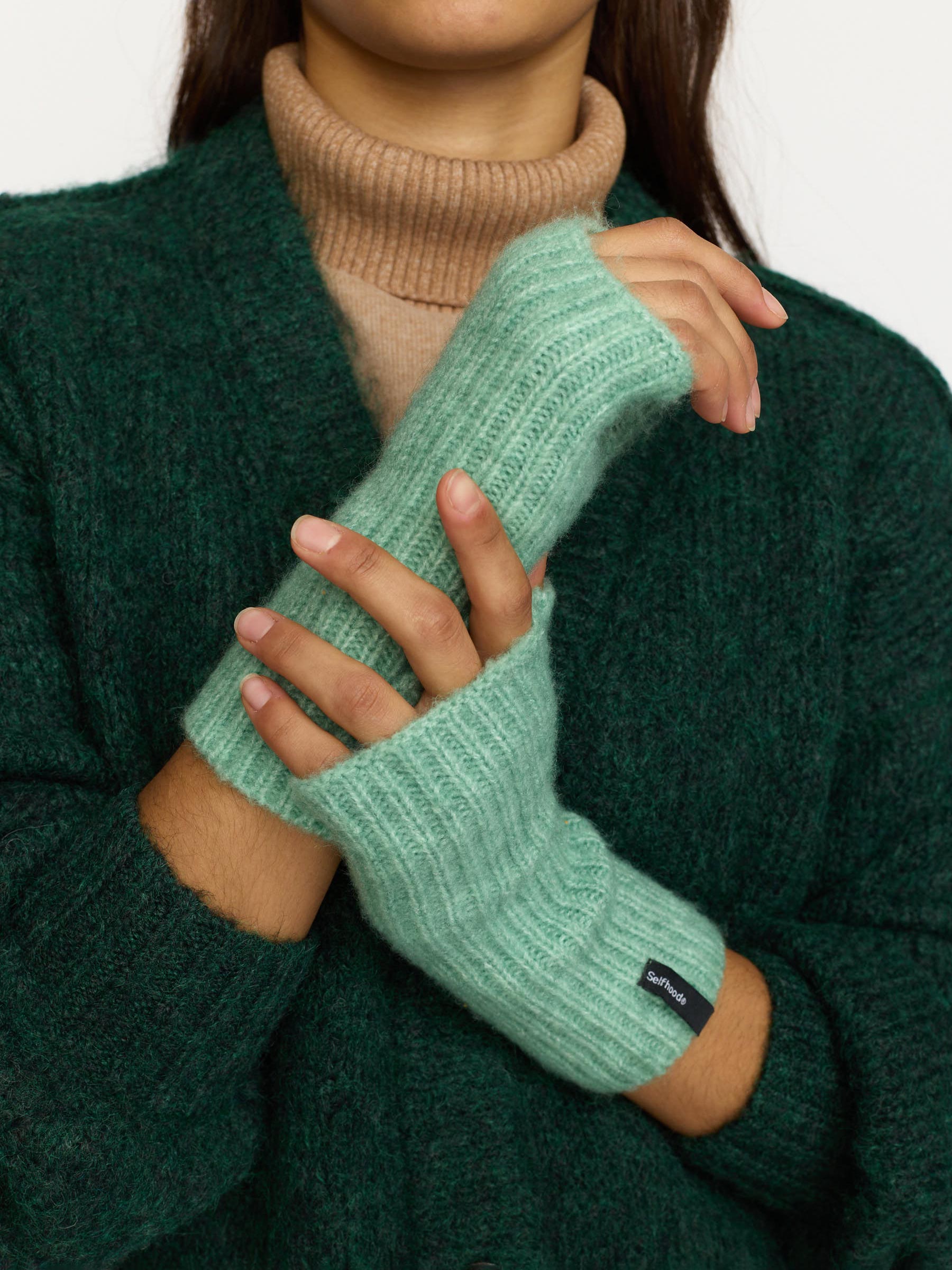 Deze gebreide handschoenen van Selfhood houden je handen warm zonder je bewegingsvrijheid te verliezen. De zachte wolblend met fluffy structuur voelt comfortabel aan en geeft een cozy look. Perfect te combineren met de matching beanie of sjaal voor een complete set.