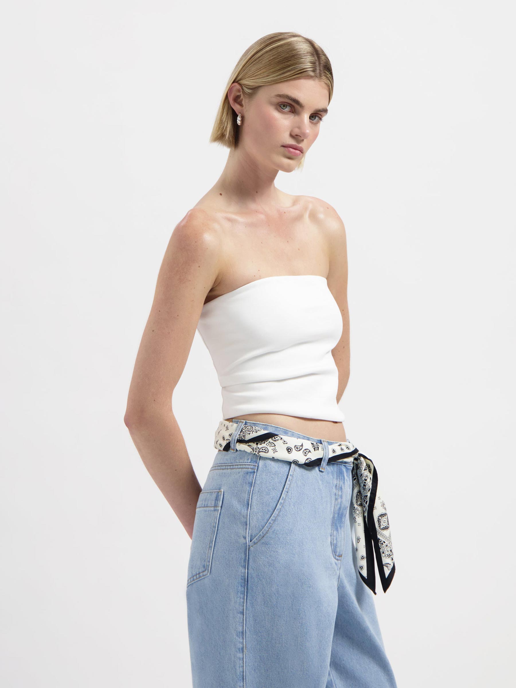 Deze strapless top van Nous Sommes is er eentje waar je steeds naar teruggrijpt. Makkelijk, comfortabel en eindeloos te combineren, van een losvallende jeans tot onder een jasje. Zo’n basic die altijd werkt en nooit verveelt.