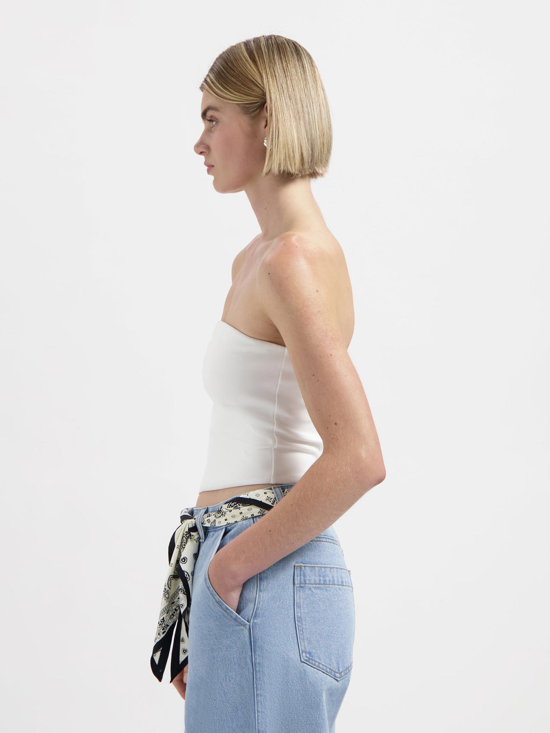 • Strapless top