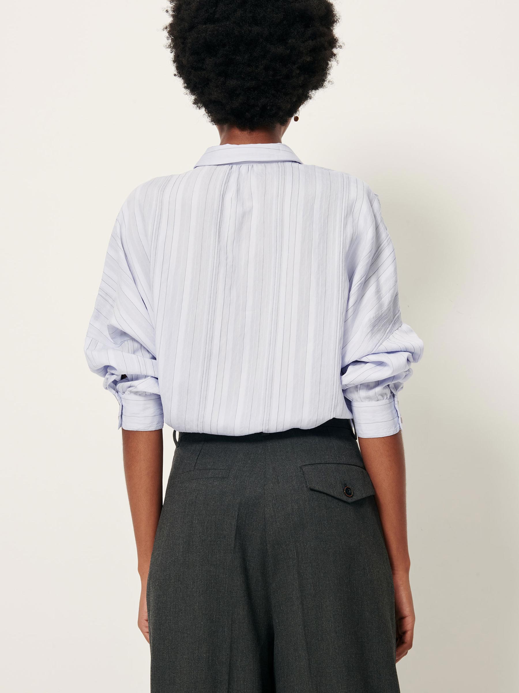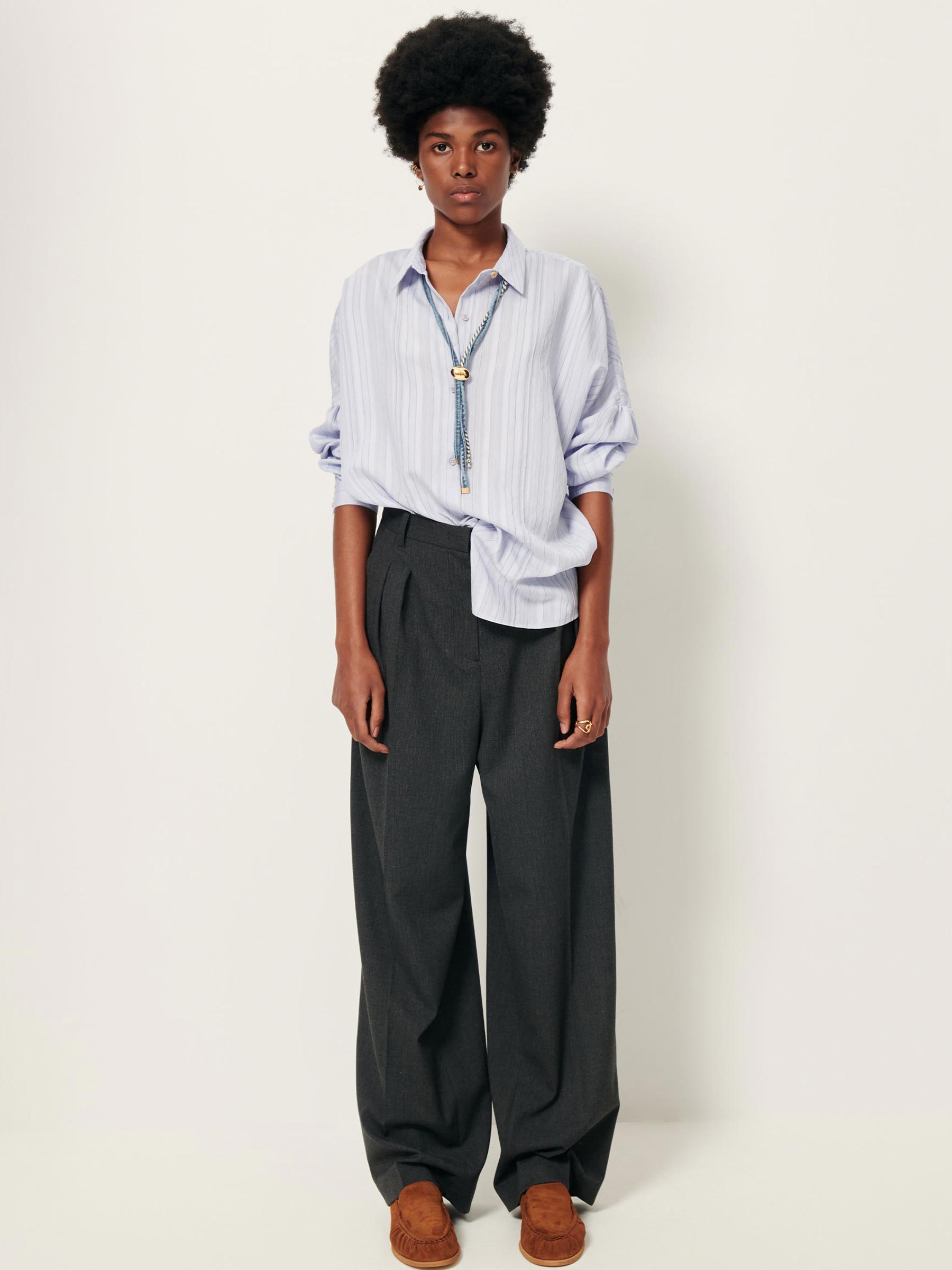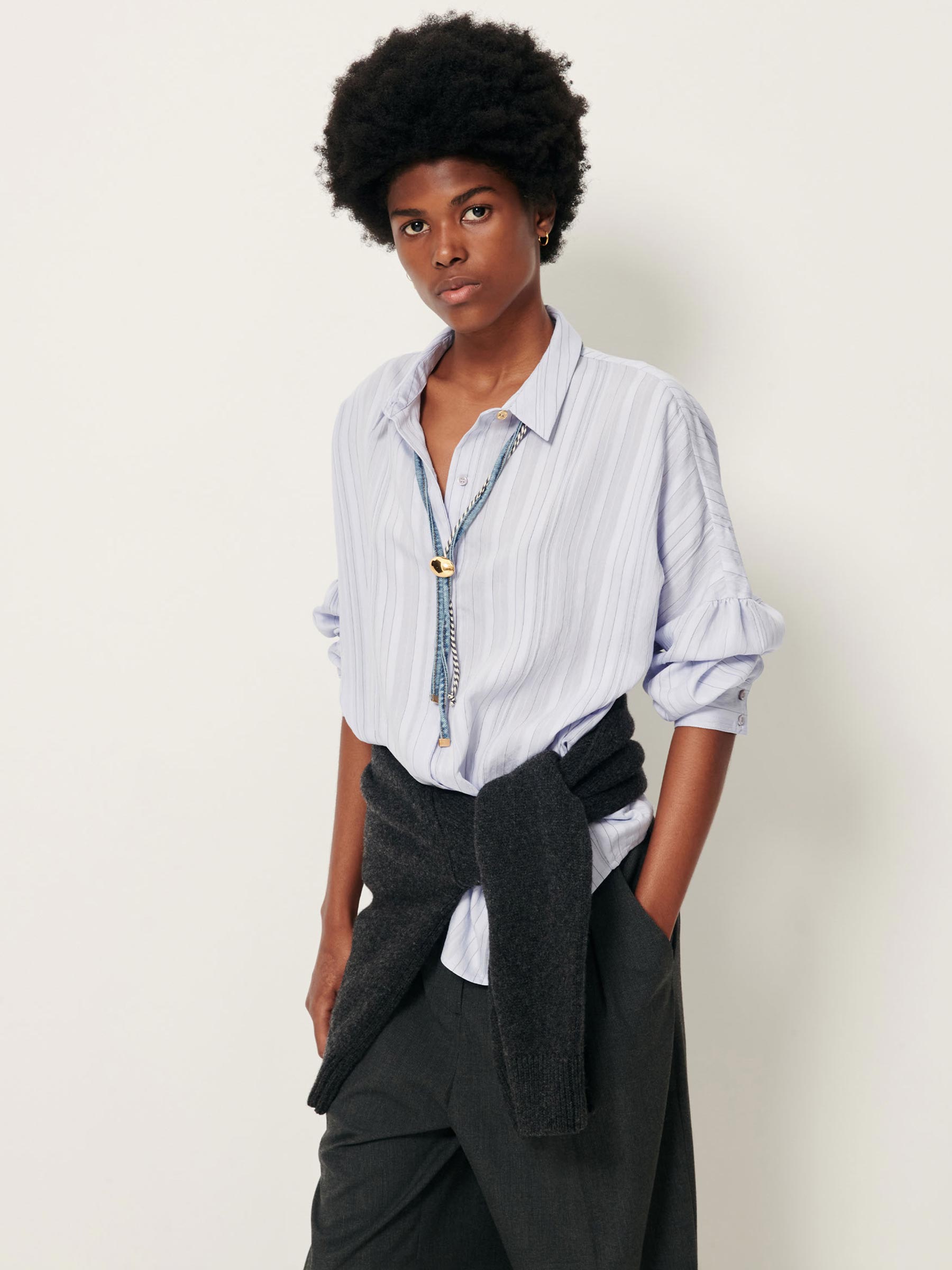Deze lichtblauwe blouse van Sessùn brengt meteen frisse energie in je look. Het subtiele streeppatroon en de losse fit geven een luchtige uitstraling en maken hem ideaal voor zowel werk als vrije tijd. Style hem met een pantalon of juist casual met je favoriete jeans.