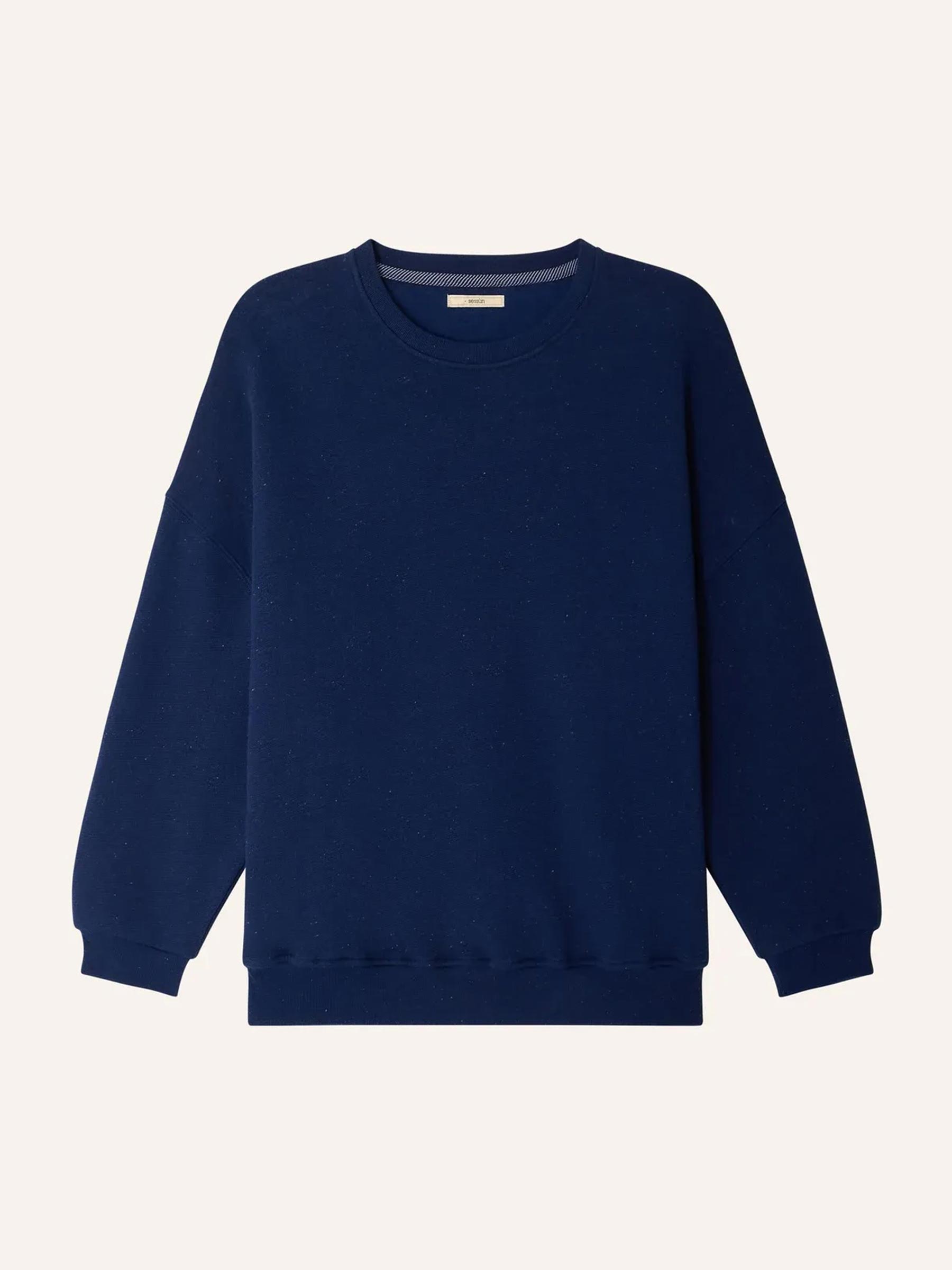 Deze donkerblauwe sweater van Sessùn is perfect voor dagen waar je kiest voor comfortabel. De ruime pasvorm en zachte kwaliteit maken hem ideaal om nonchalant te dragen, thuis of onderweg.