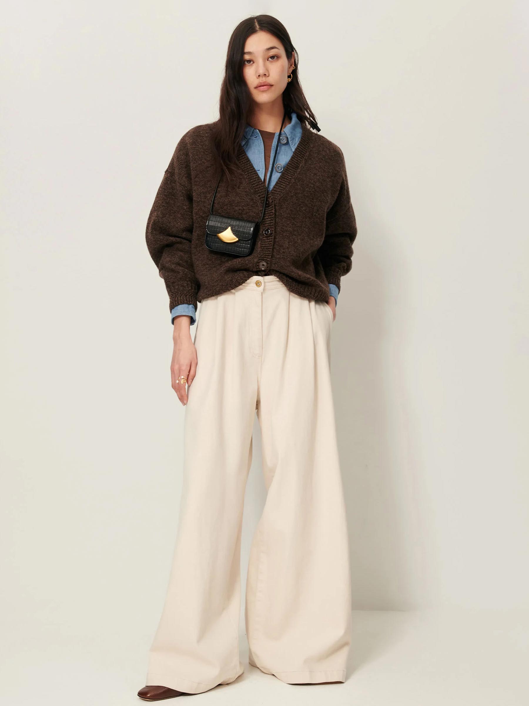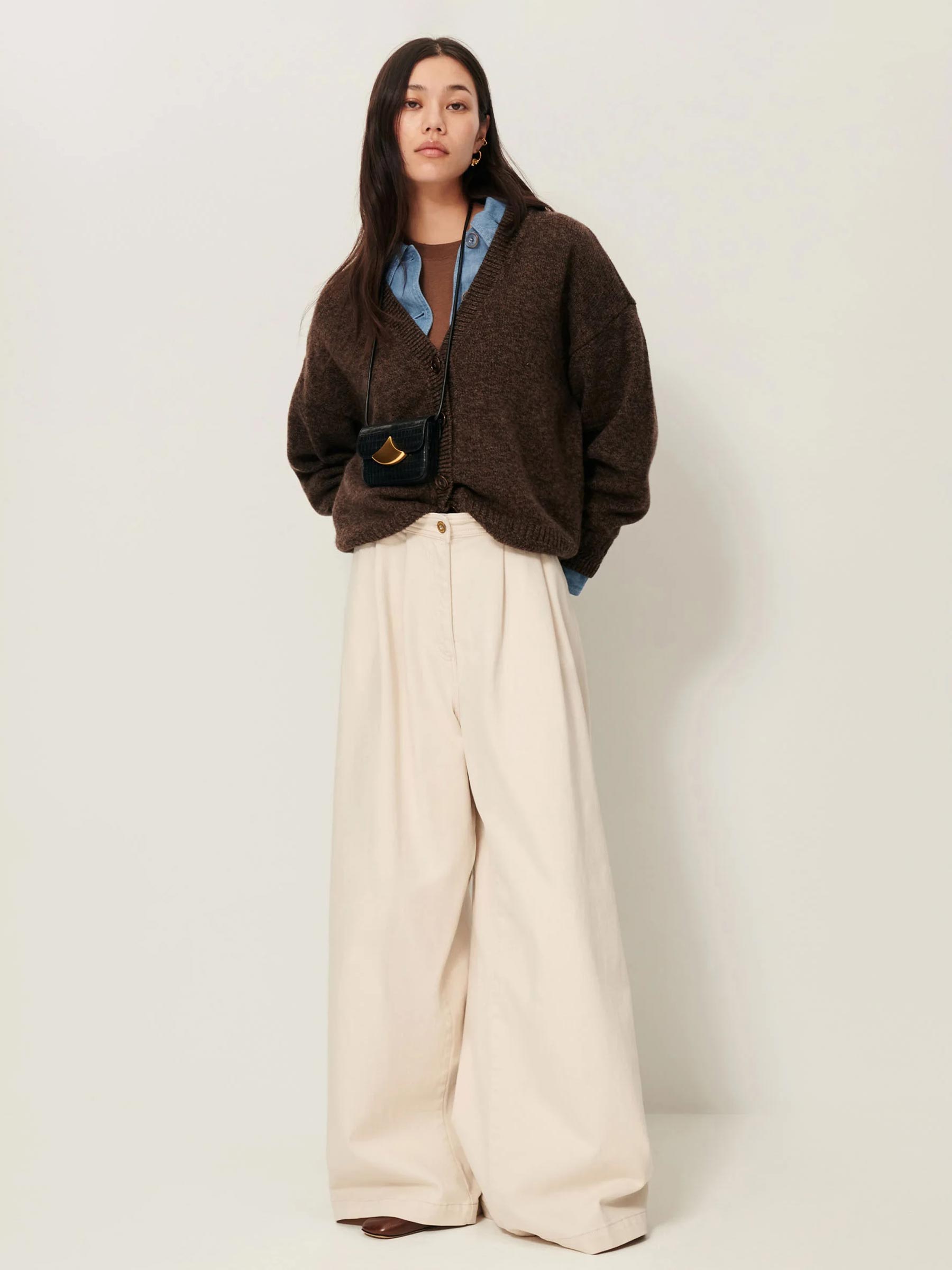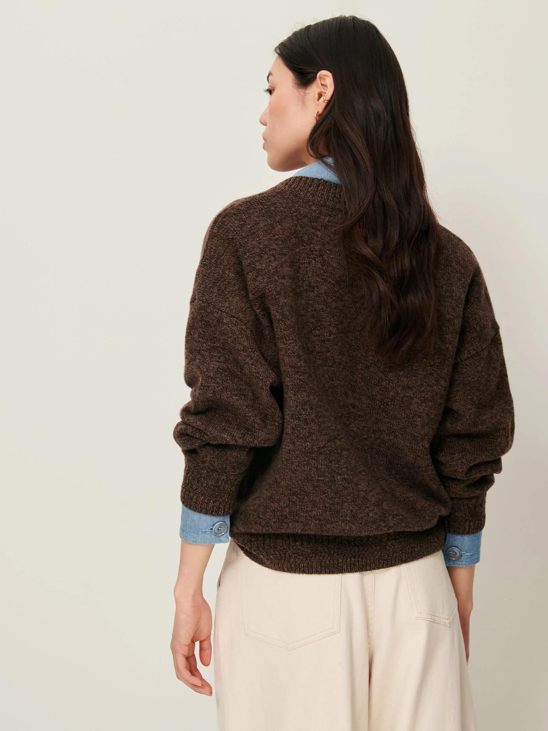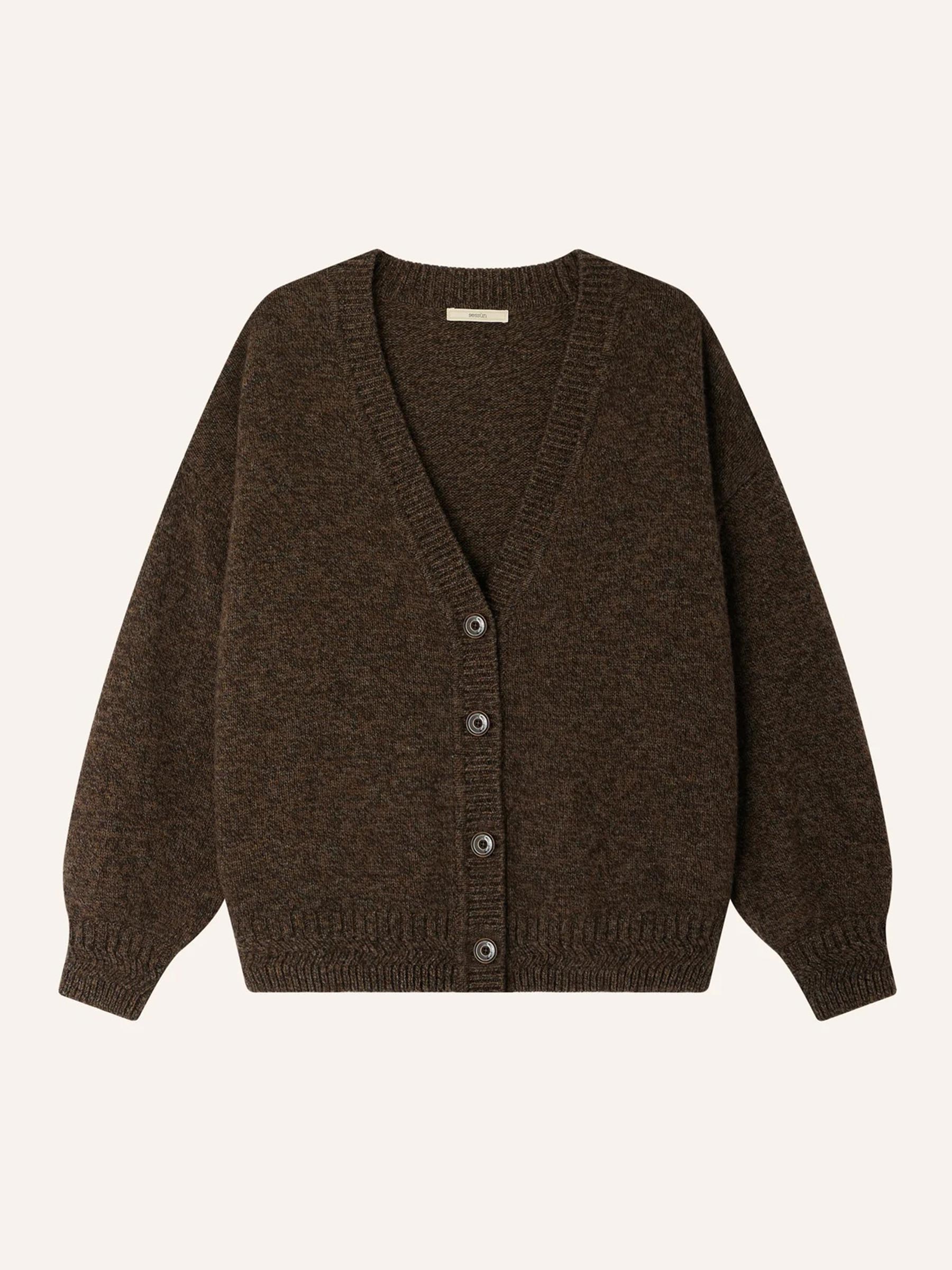 Dit bruine gebreide vest van Sessùn is een veelzijdig item dat je het hele jaar door kunt dragen. Het losse model en de diepe V-hals maken hem ideaal om te combineren met een blouse of T-shirt eronder. Stijlvol én comfortabel, precies wat je zoekt in een everyday favorite.