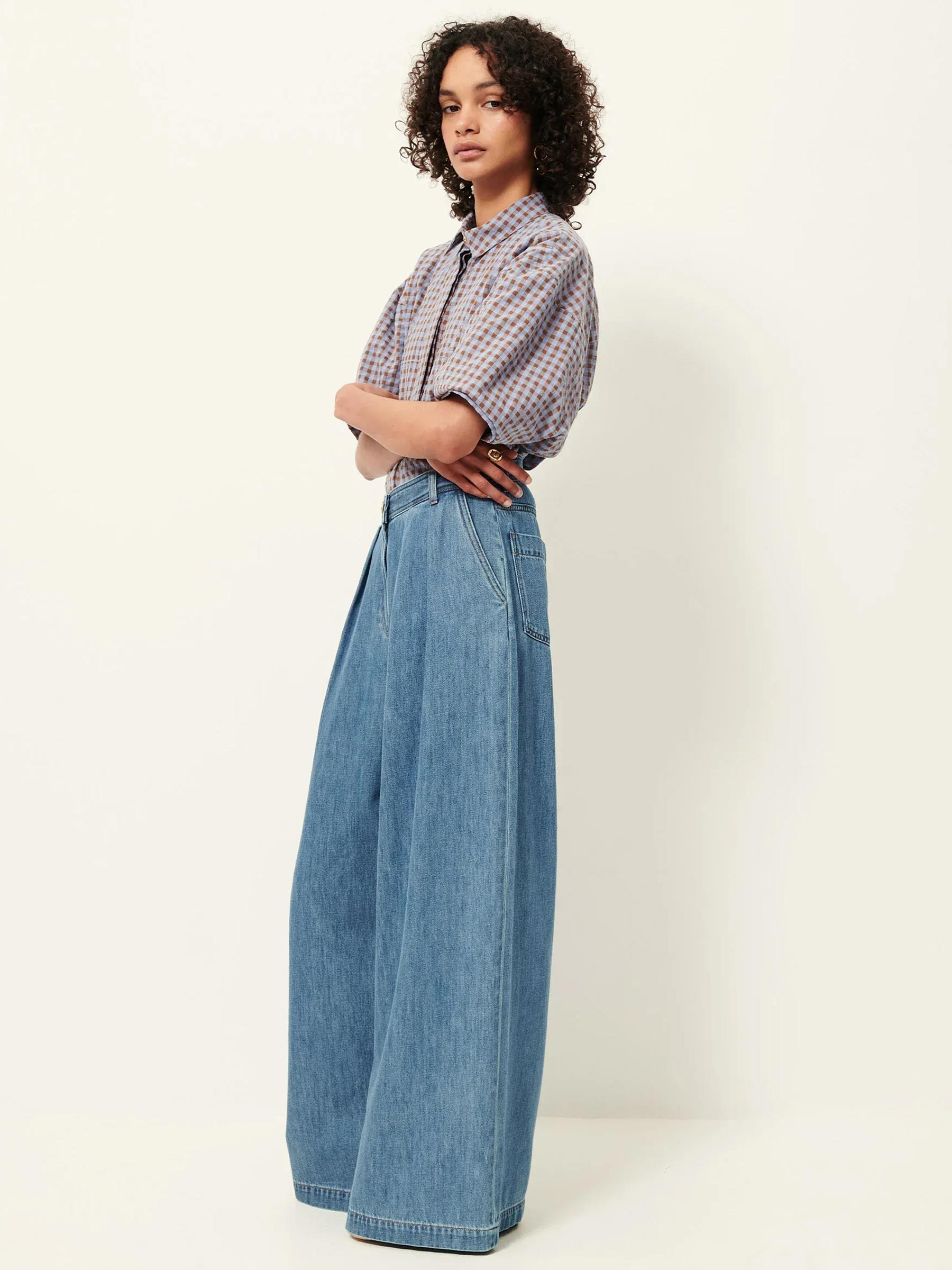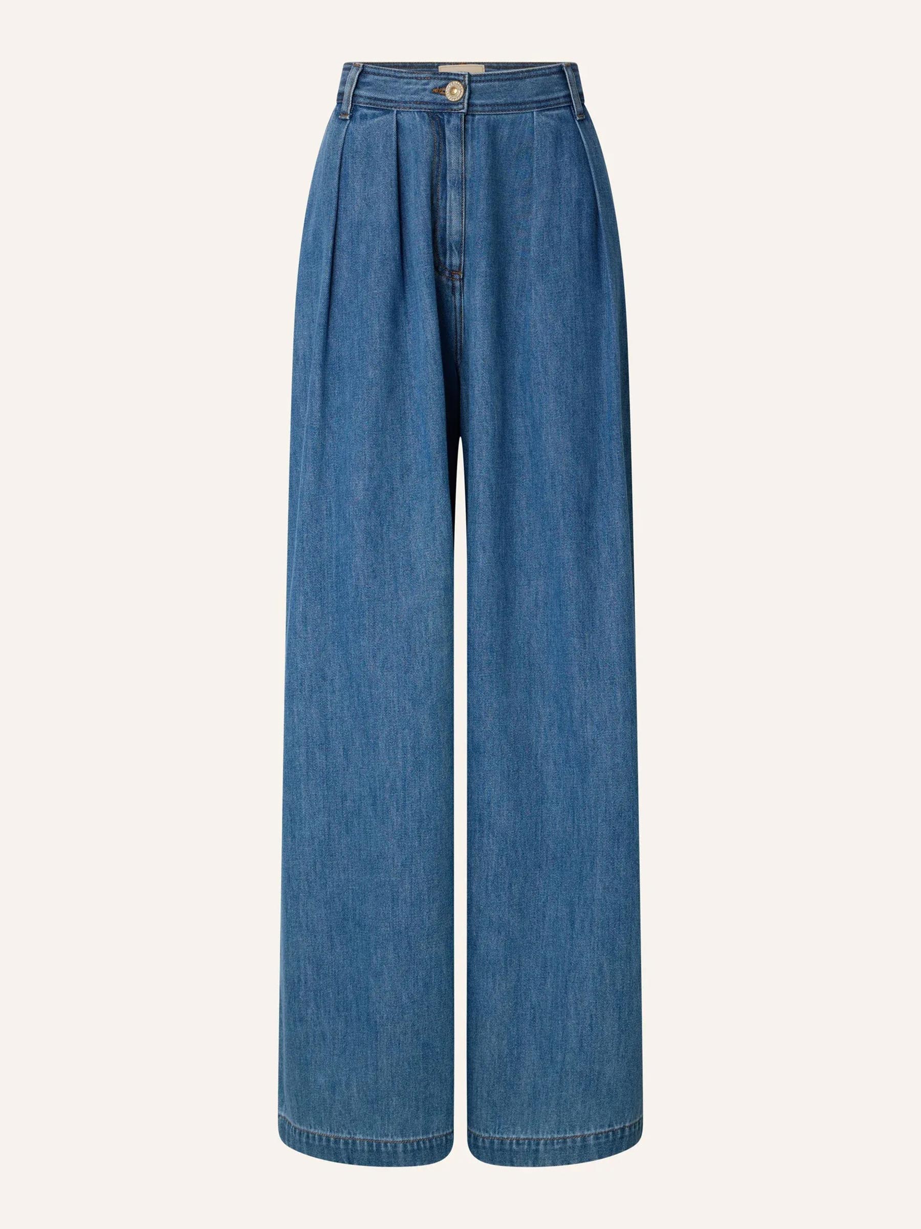 Deze blauwe jeans van Sessùn is perfect als je houdt van een nonchalante en vrouwelijke look met extra comfort. De hoge taille en wijde pijpen geven je outfit meteen een vrouwelijke uitstraling!