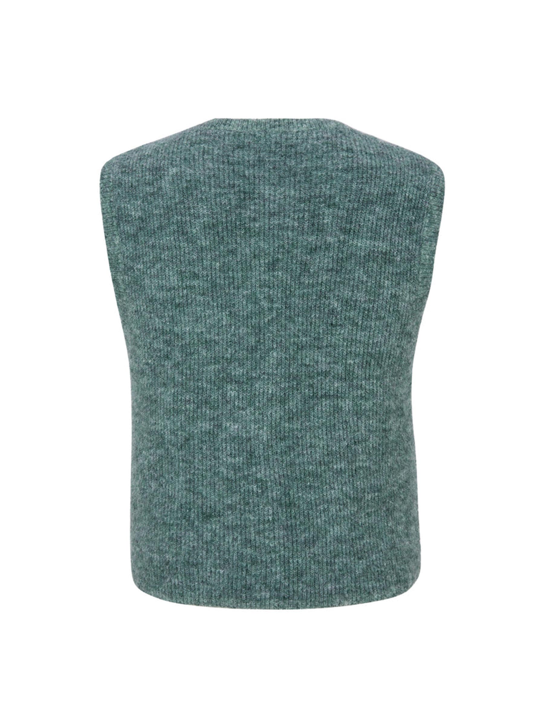 Deze groene spencer van Soft Rebels is zo’n item dat je look meteen meer diepte geeft. De gemêleerde knit en knoopsluiting maken deze top perfect om te stijlen over een blouse of jurk, maar ook mooi op een basic top. Een fijne toevoeging voor elke dag.