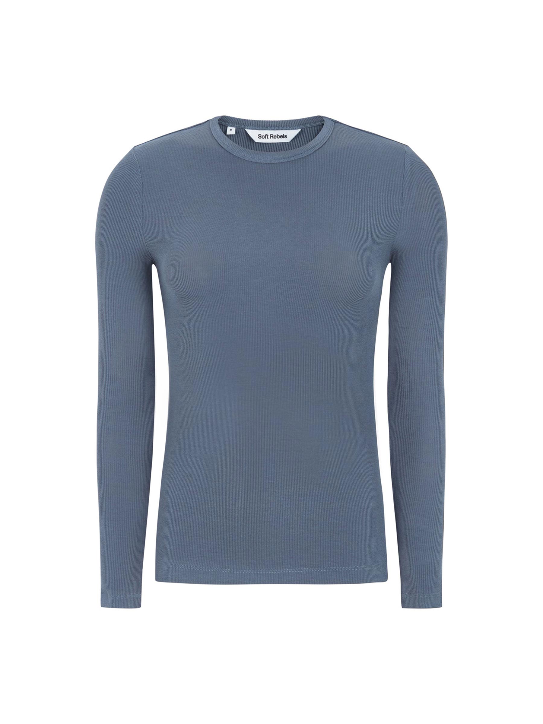 Deze blauwe longsleeve van Soft Rebels is een echte basic die je eindeloos combineert. De ribstructuur geeft een subtiel detail en het aangesloten model maakt hem perfect om te dragen onder een blazer of vest. Een tijdloos item dat altijd van pas komt in je garderobe.