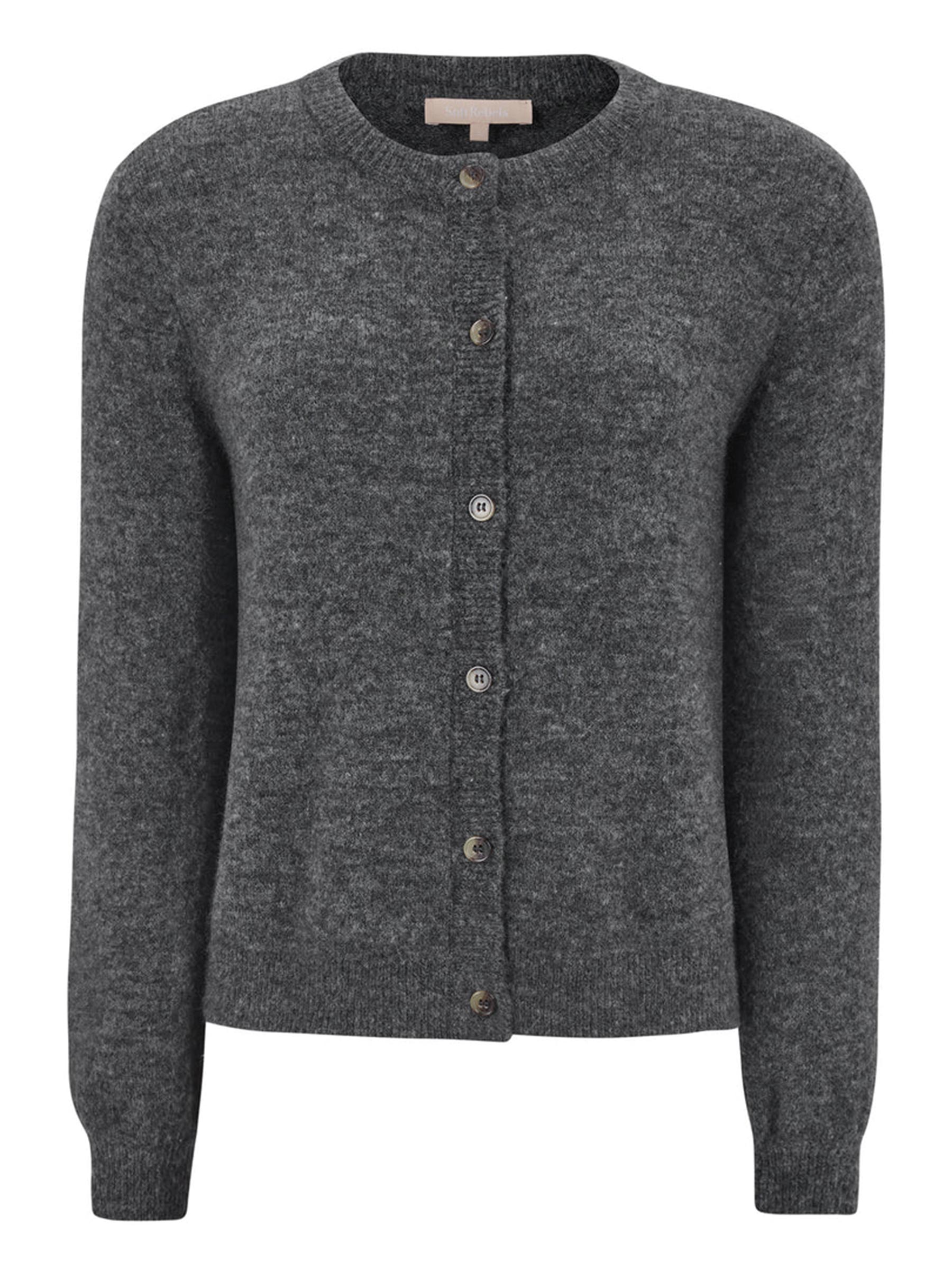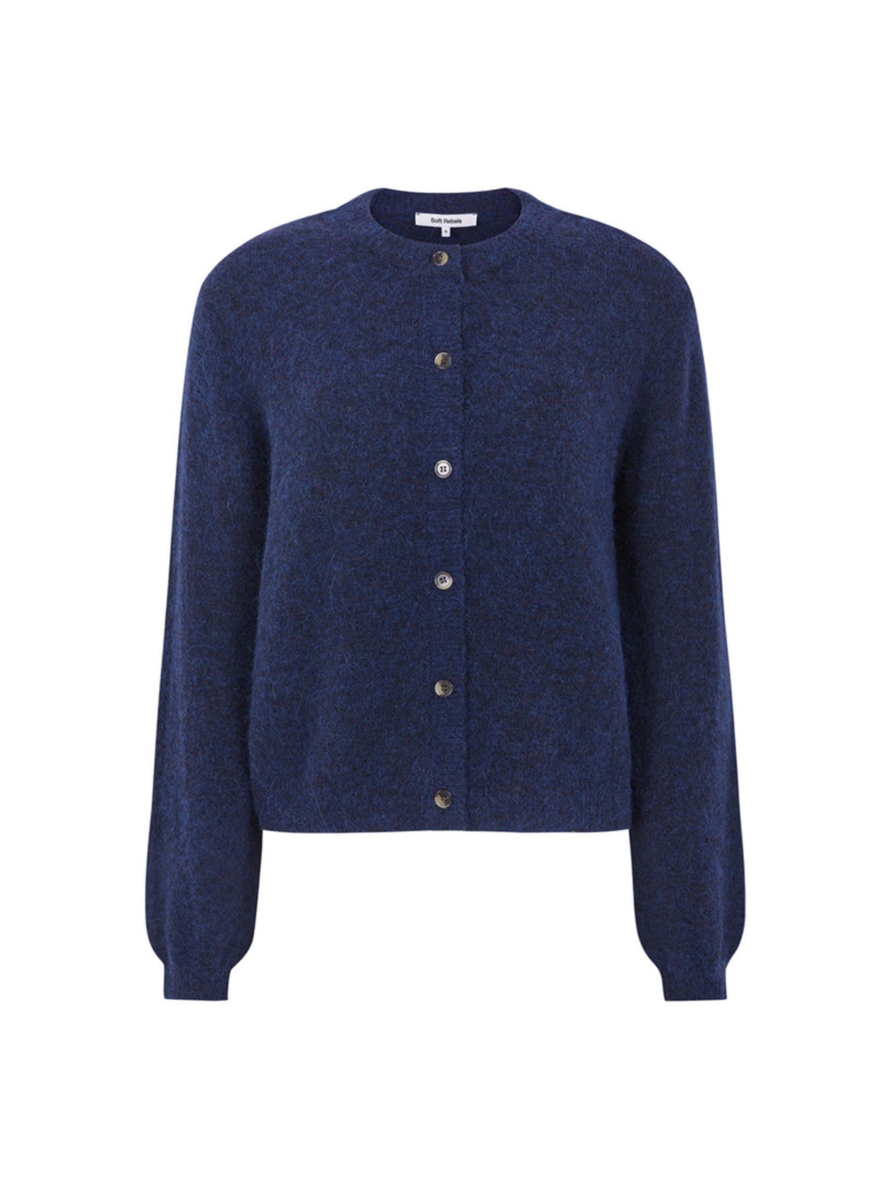 Get comfy in deze gebreide cardigan van Soft Rebels. Het vest komt in donkerblauw en donkergrijs en is gemaakt van een zachte kwaliteit stof die perfect is voor de koudere dagen. Draag ‘m over een tee met een jeans of combineer met een pantalon.