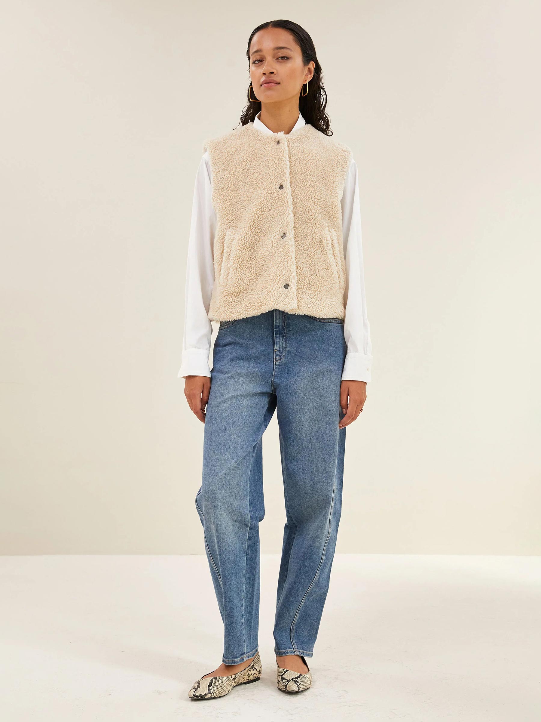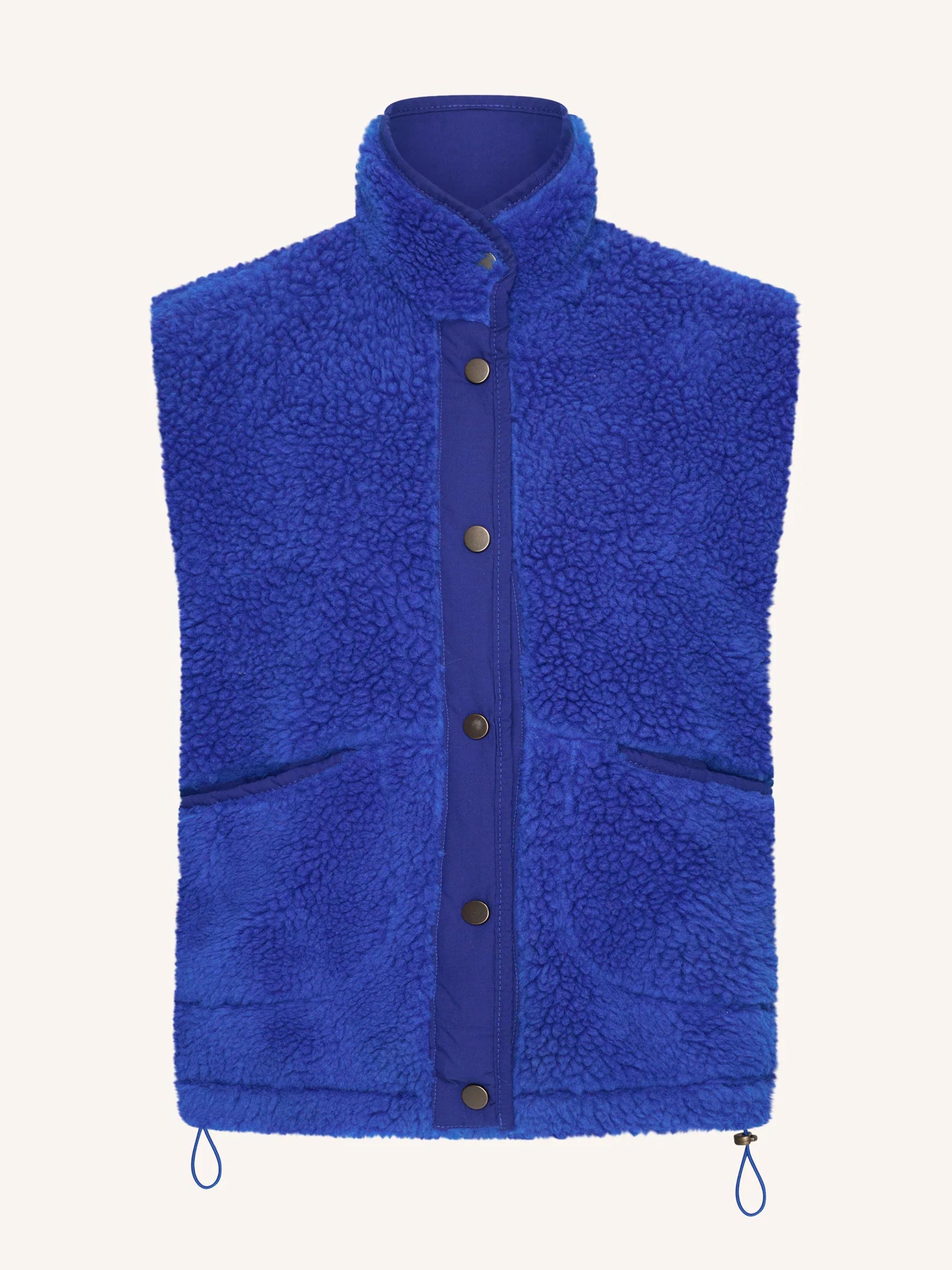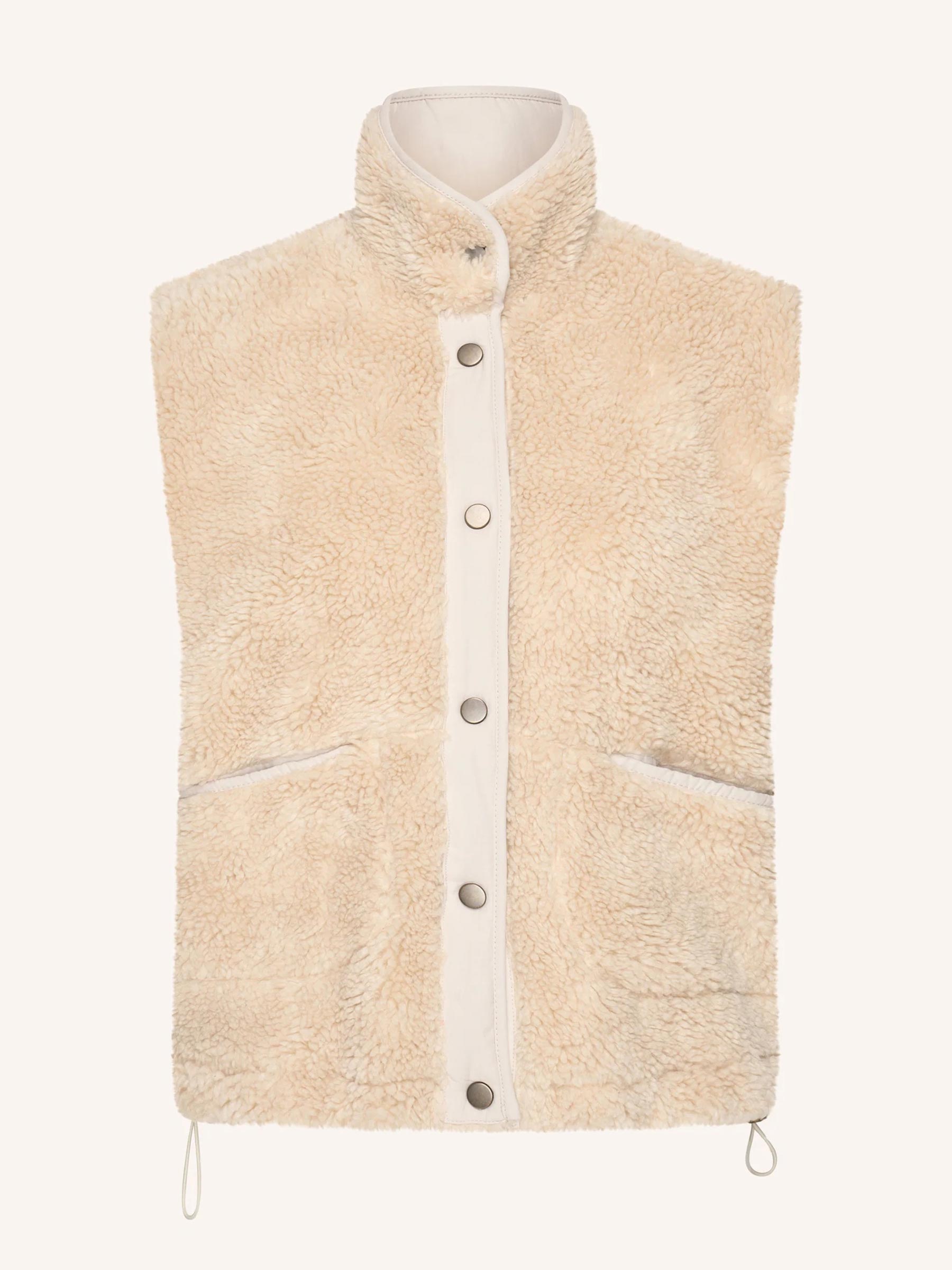 Dit teddy gilet van by-bar is perfect voor frisse dagen waarop je outfit wel wat extra body mag hebben. Zacht teddy materiaal, fijne drukknopen en zo’n item dat elke look meteen afmaakt. Draag hem over een blouse of knit en je bent in één keer klaar.