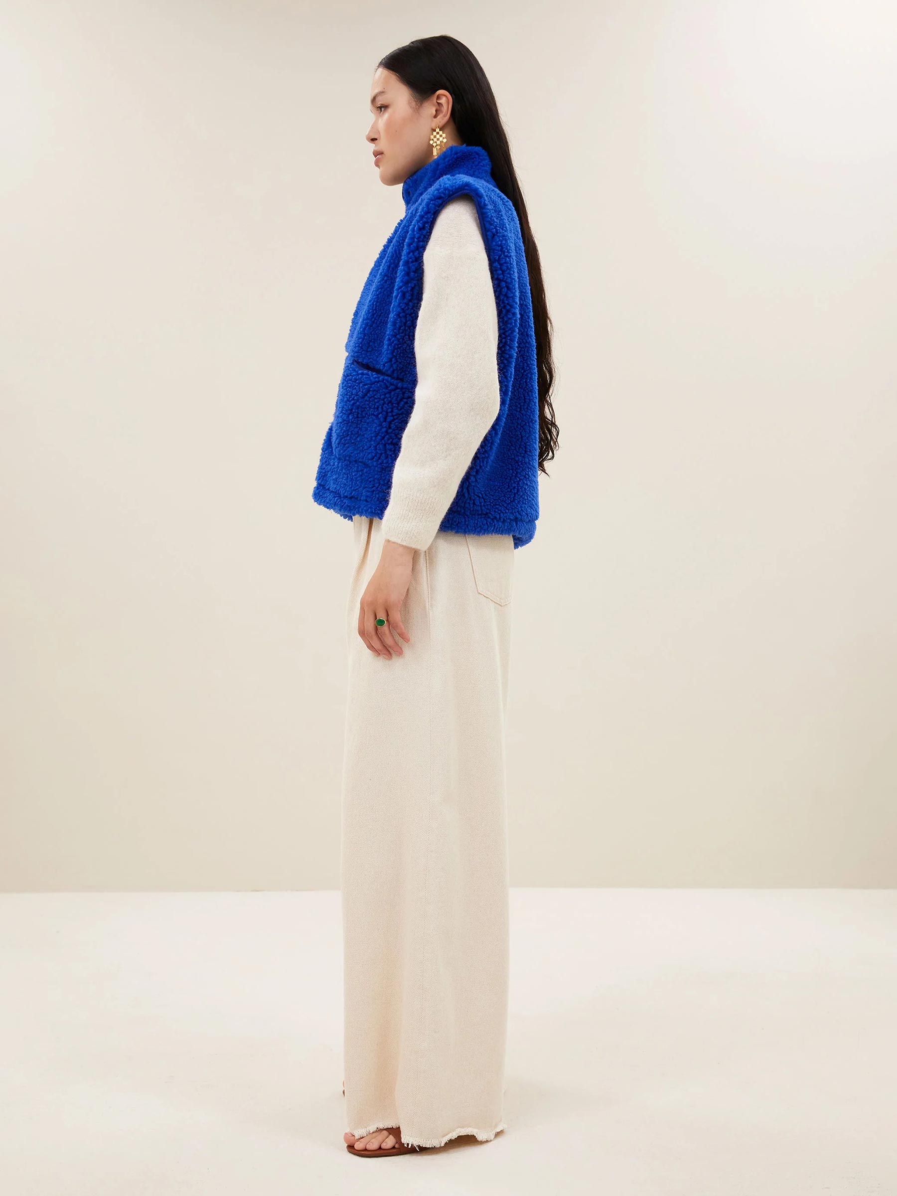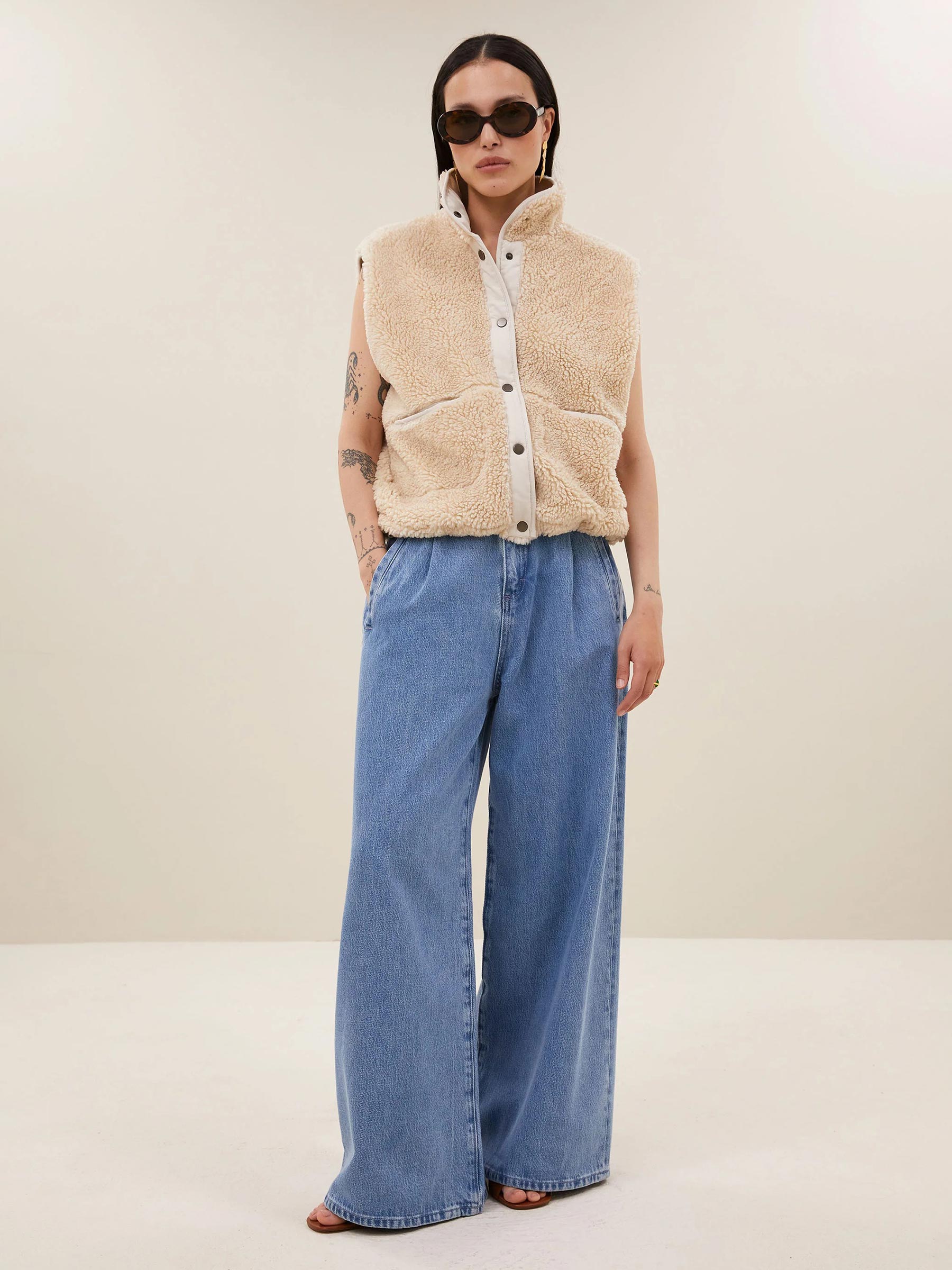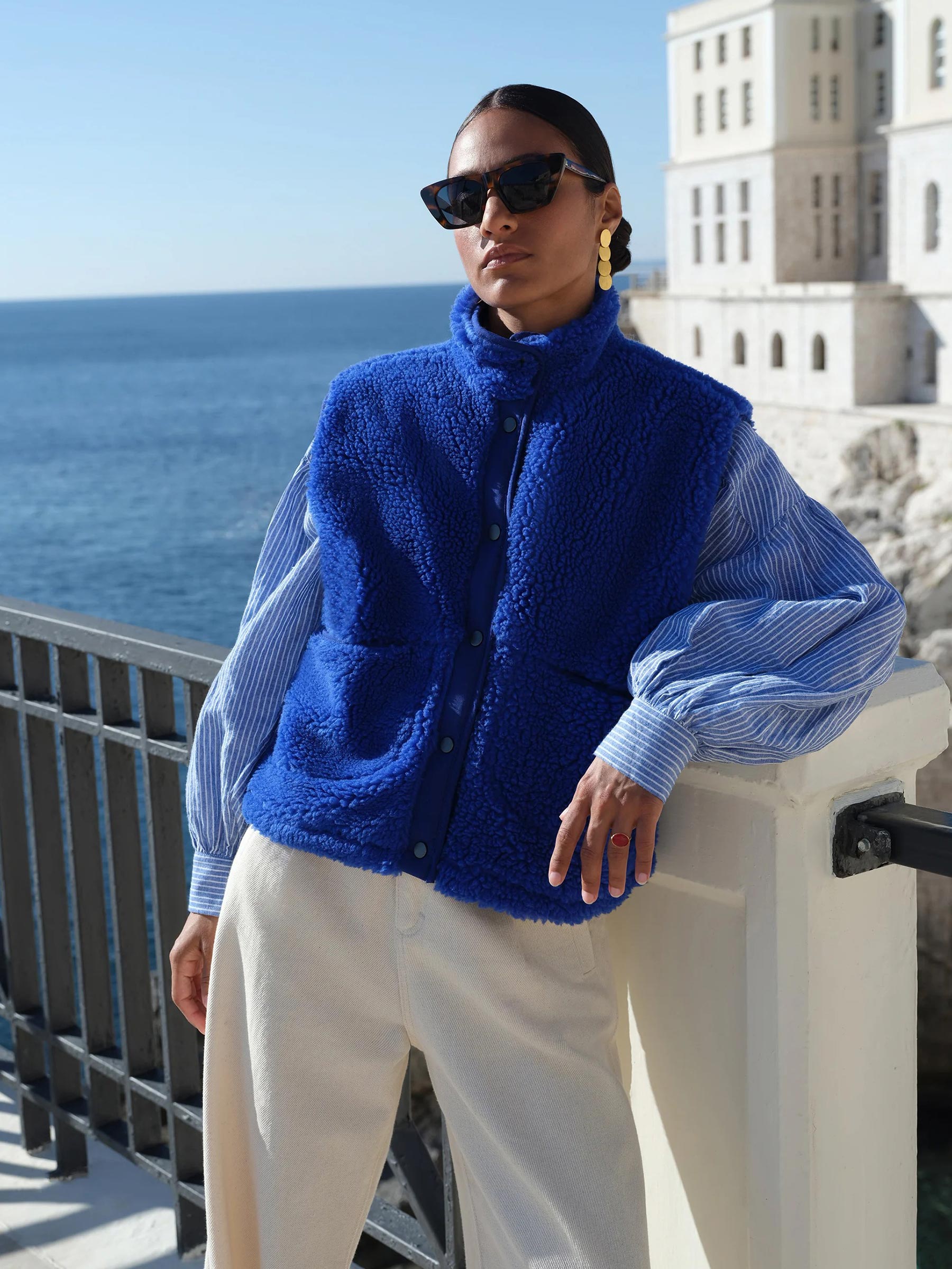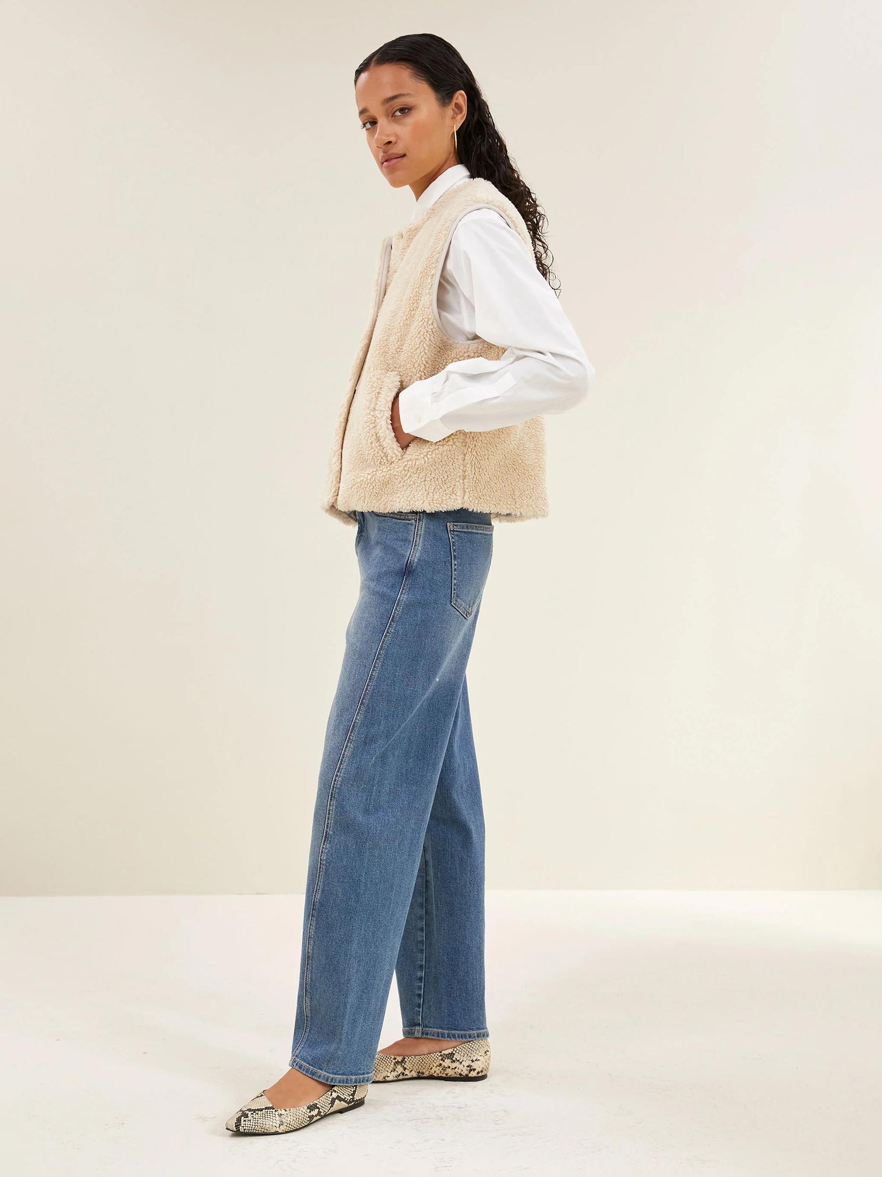Dit teddy gilet van by-bar is perfect voor frisse dagen waarop je outfit wel wat extra body mag hebben. Zacht teddy materiaal, fijne drukknopen en zo’n item dat elke look meteen afmaakt. Draag hem over een blouse of knit en je bent in één keer klaar.