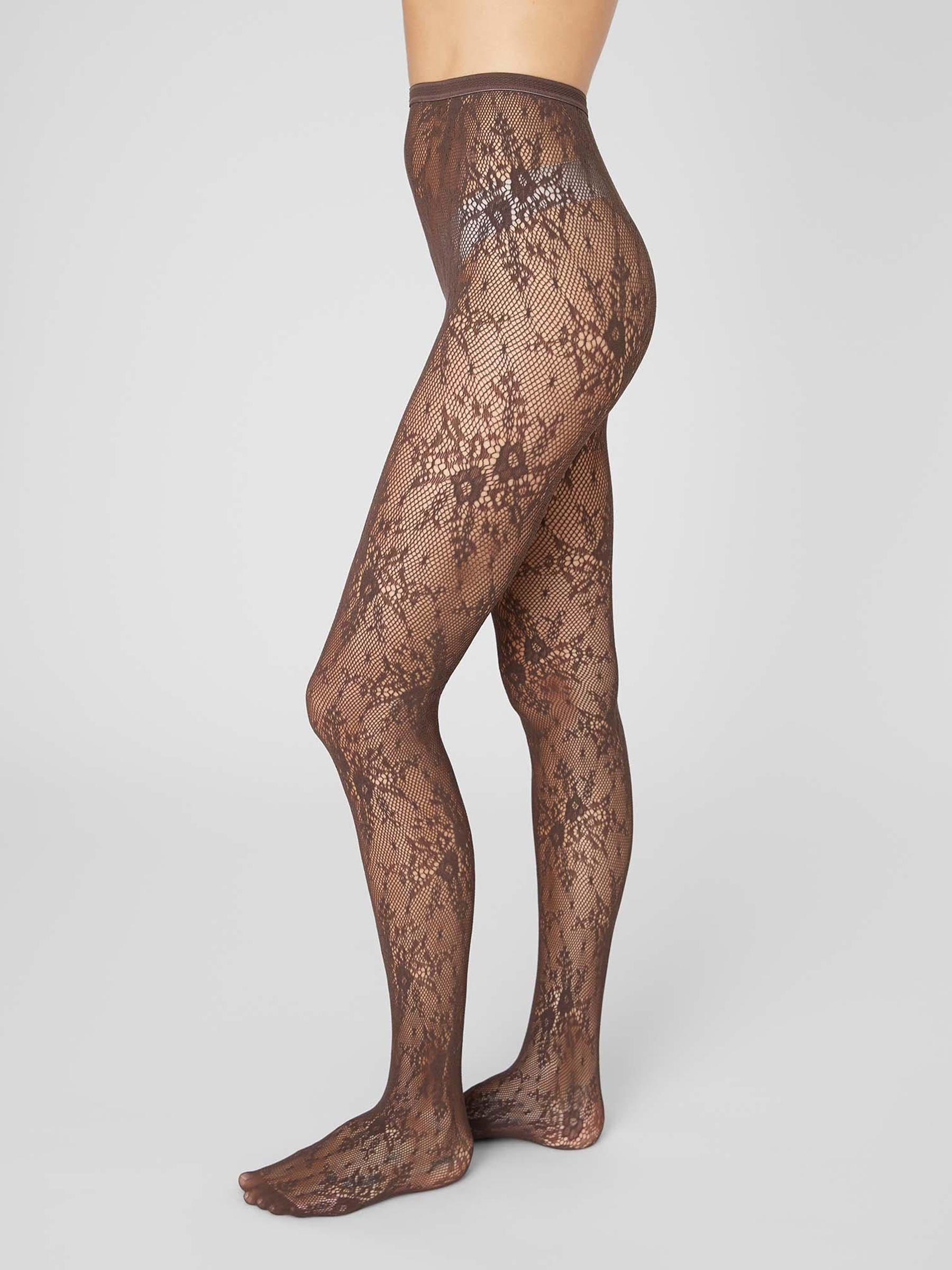 Deze donkerbruine kanten panty van Swedish Stockings is er eentje voor wie houdt van mooie basics met iets extra’s. Rosa geeft je outfit een stijlvolle touch met een zachte, luxueuze feel. Gemaakt van duurzaam ECONYL® garen en geproduceerd in Italië, een favoriet voor elke gelegenheid.