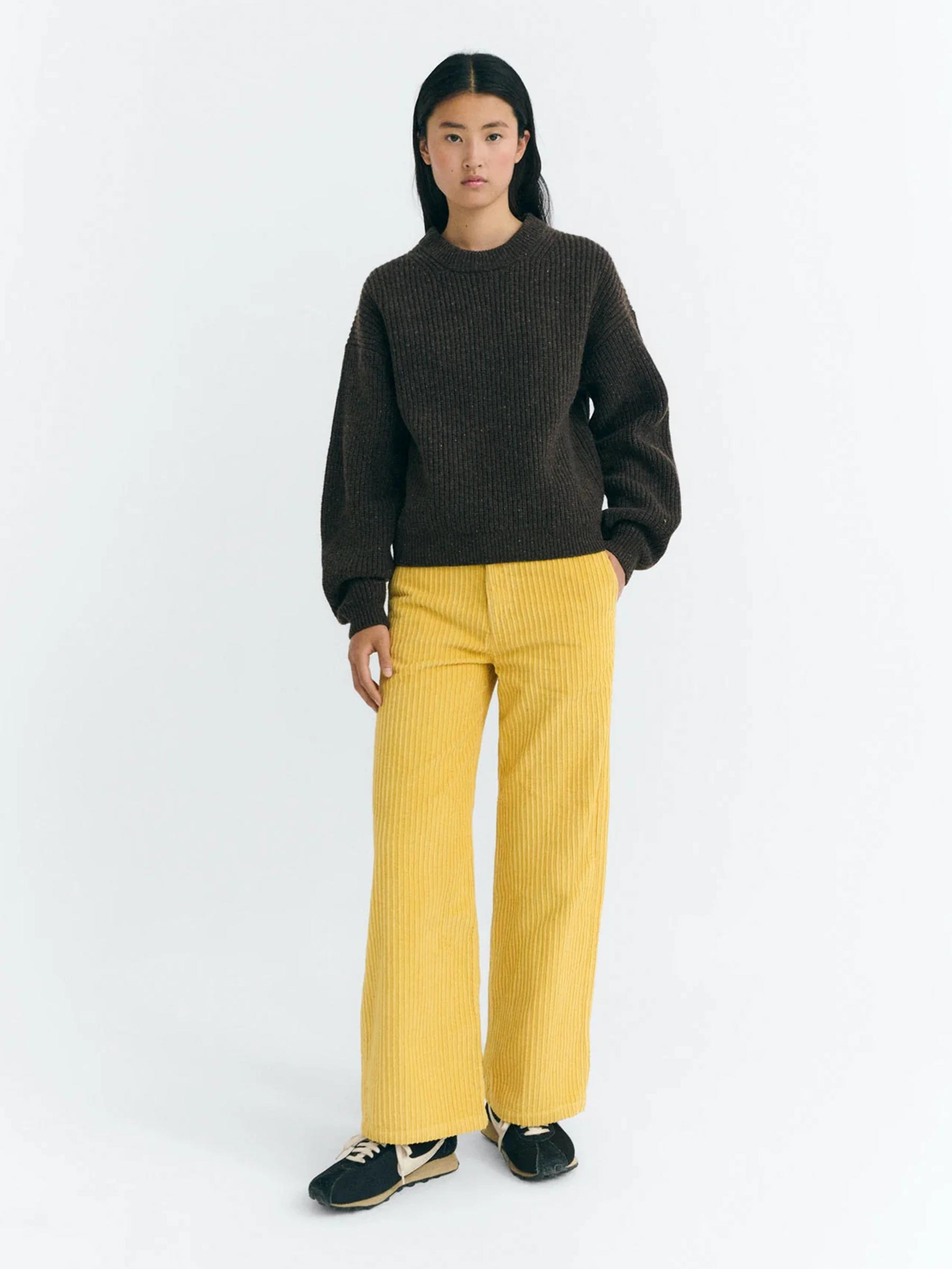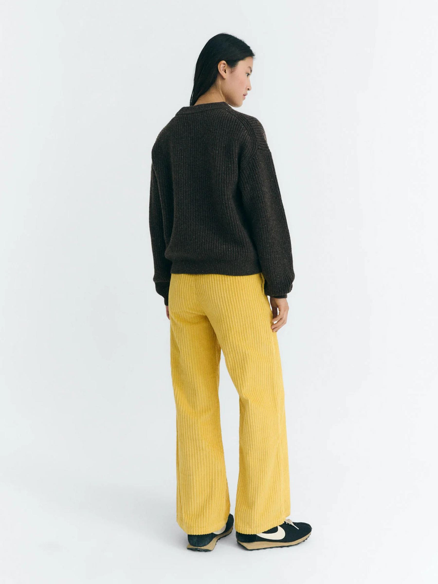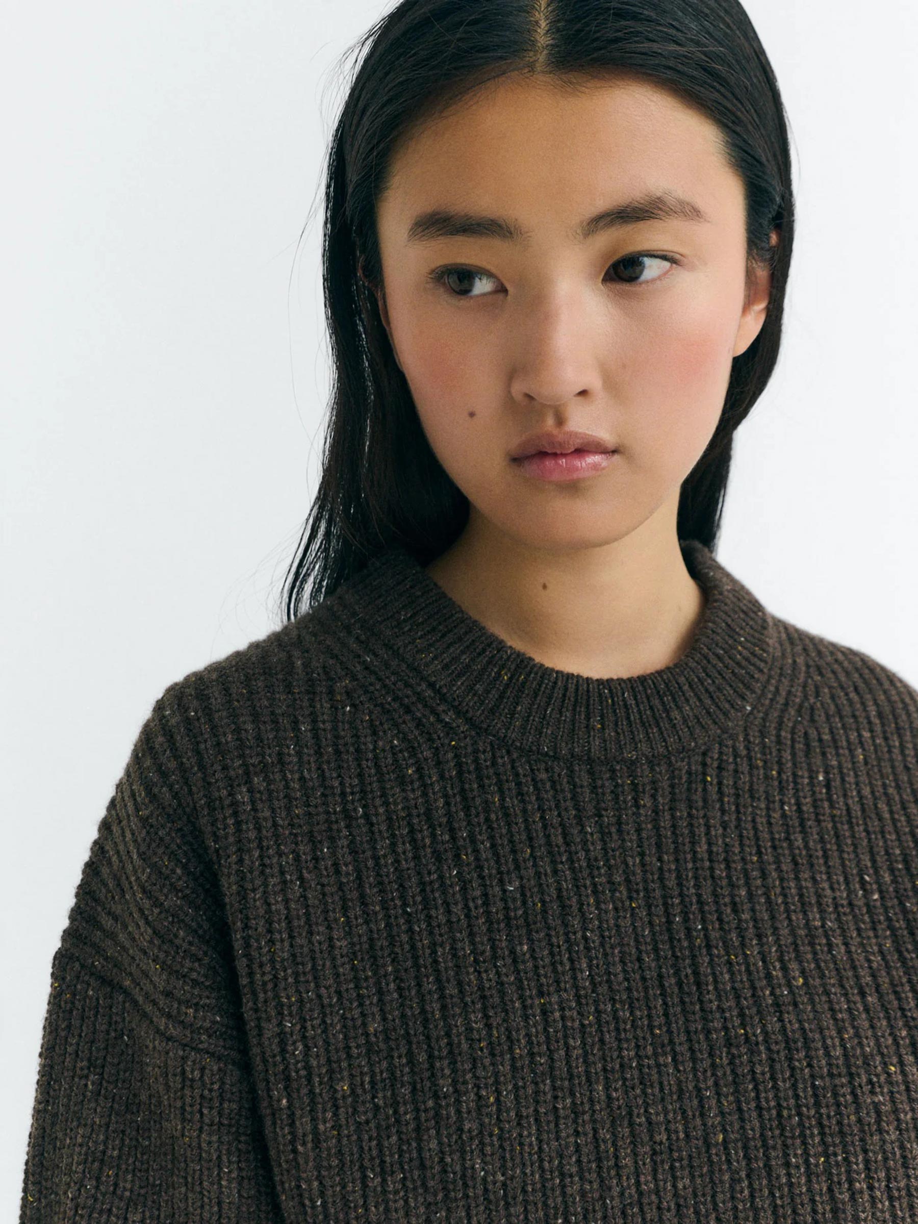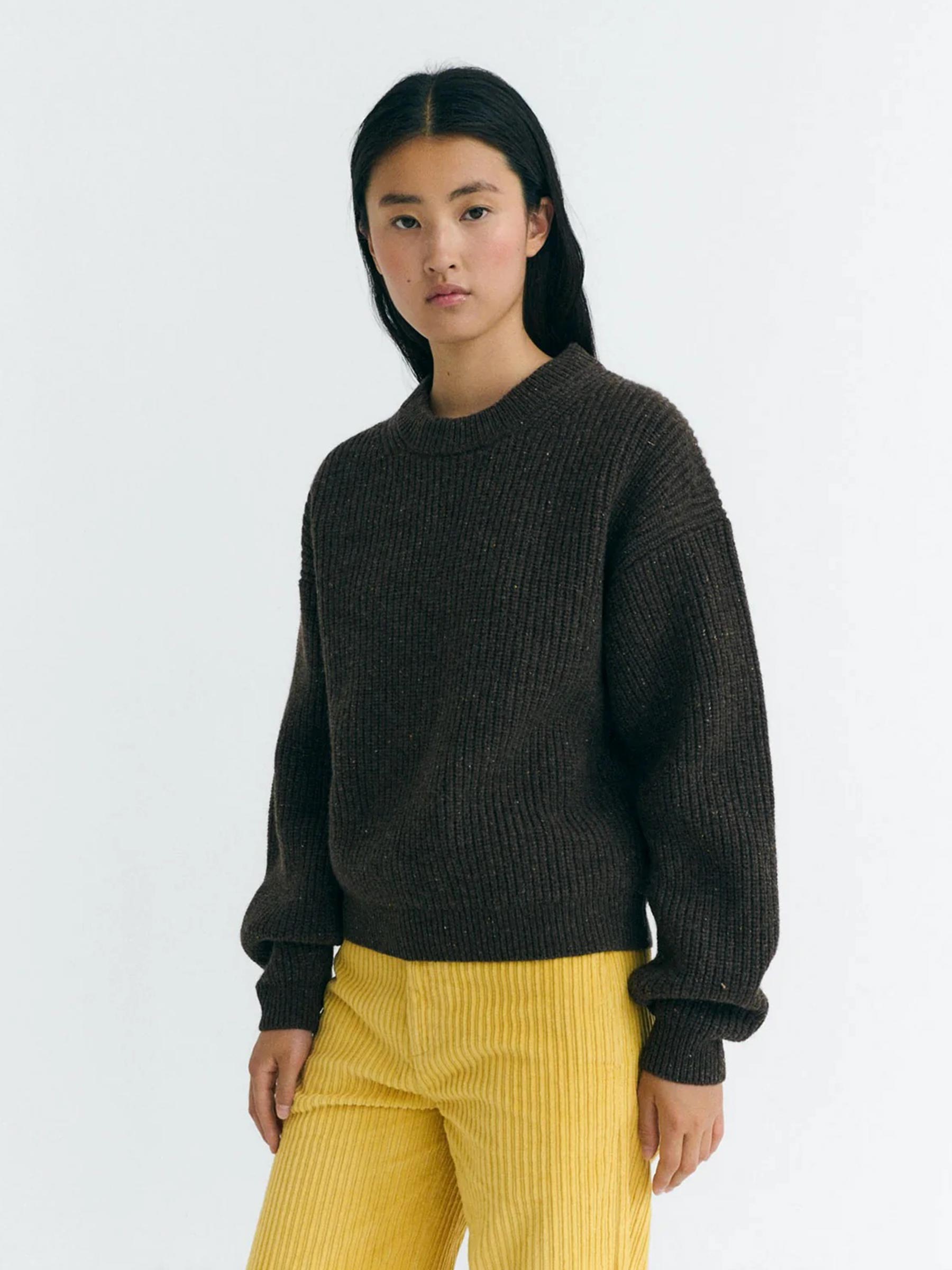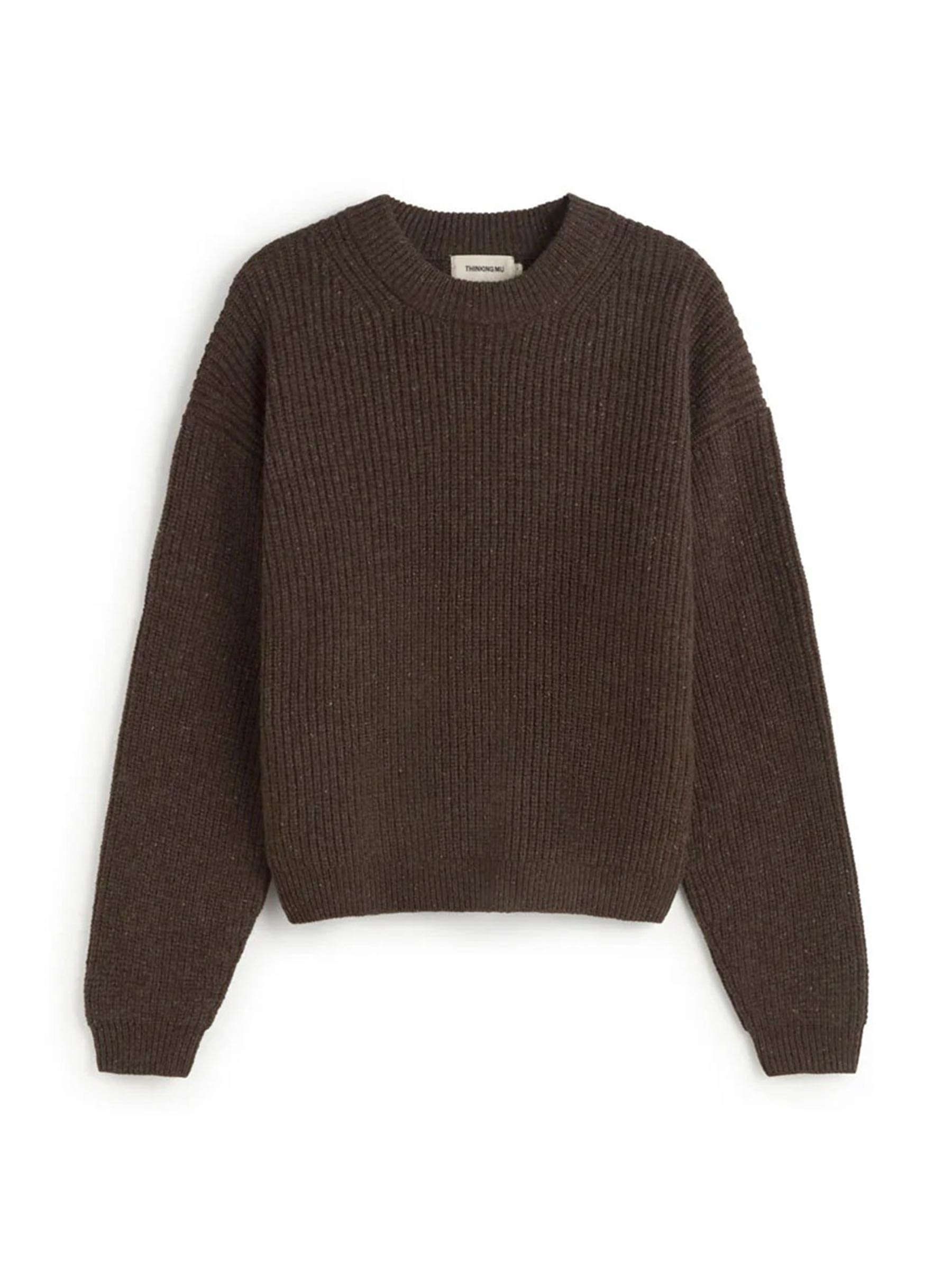 Deze bruine trui van Thinking Mu is zo eentje die je er steeds weer bij pakt. Fijn gebreid van wol met een mooie gemêleerde structuur en een regular fit die lekker zit. Draag deze trui op een jeans voor elke dag of combineer met een corduroy broek voor een warme, rijke look.