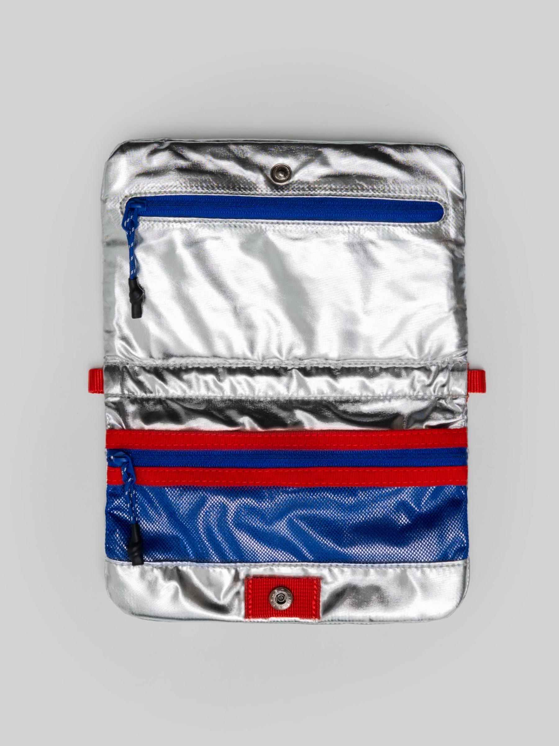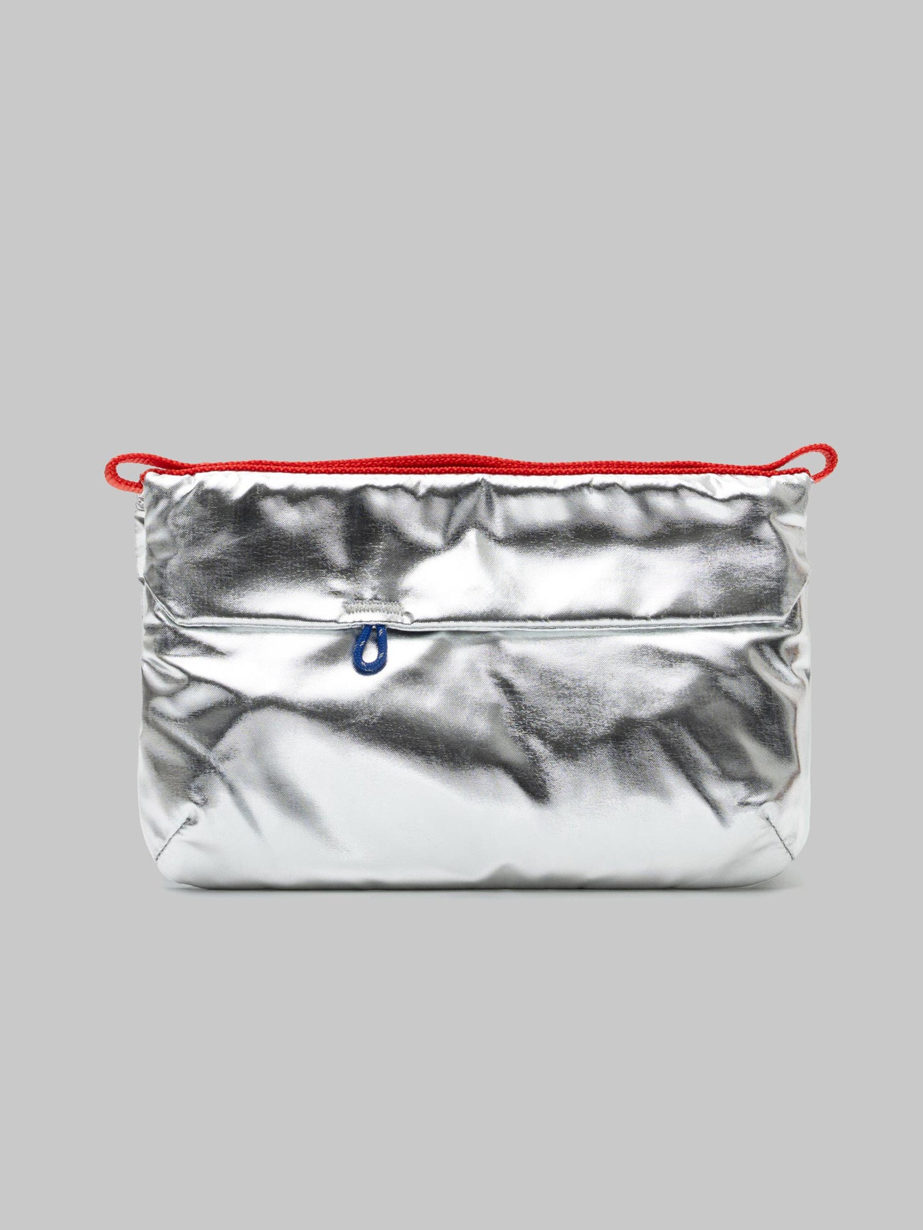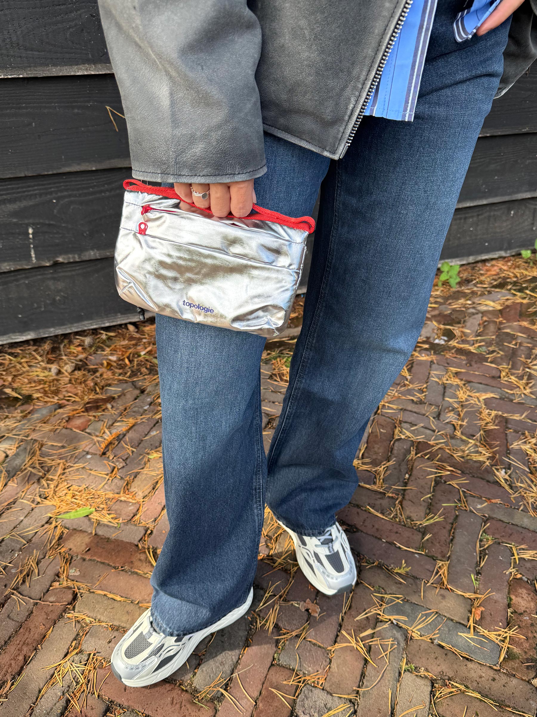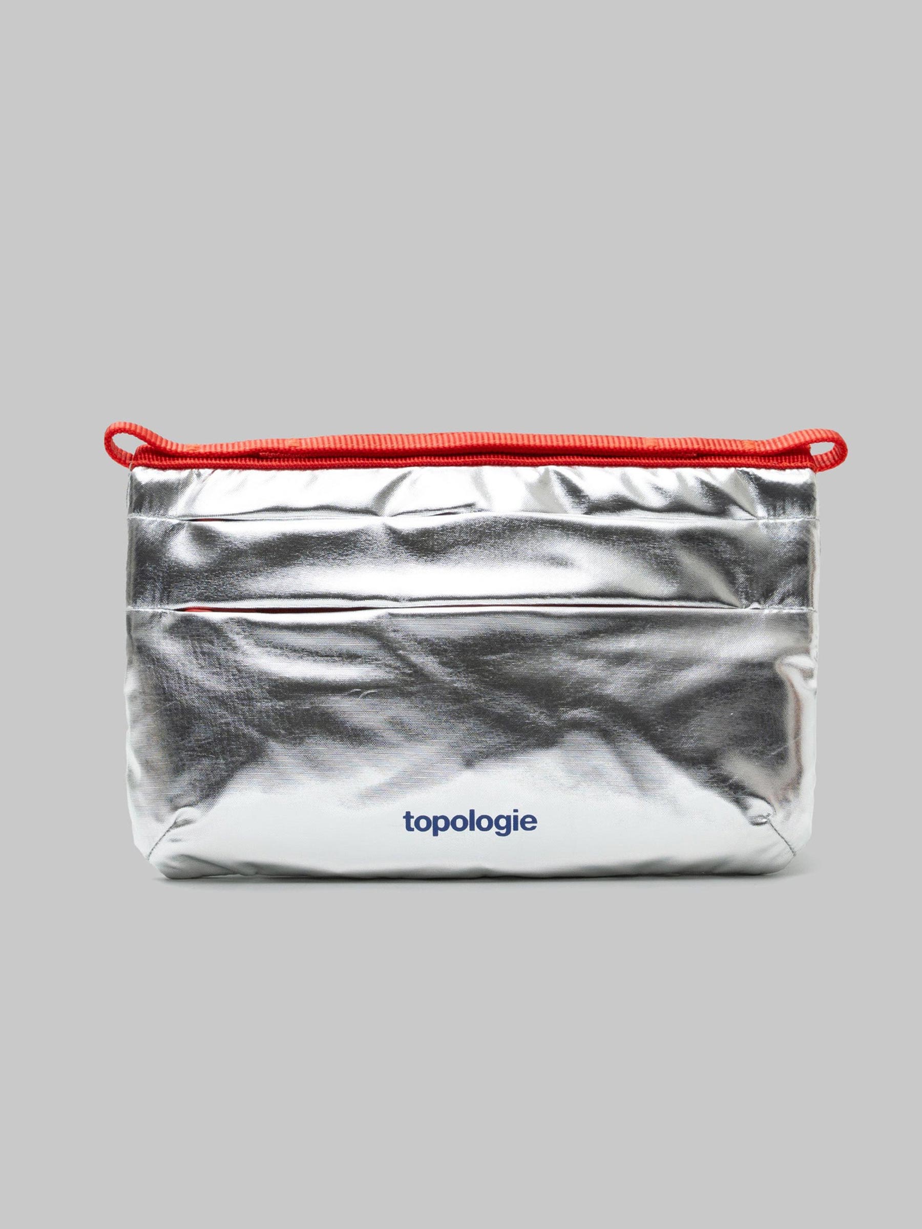 Deze zilveren tas van Topologie geeft je outfit meteen een futuristische boost. Het compacte formaat is ideaal voor je essentials en dankzij de rode strap voeg je er een speels kleuraccent aan toe. Perfect voor zowel dagelijks gebruik als een opvallende party look.