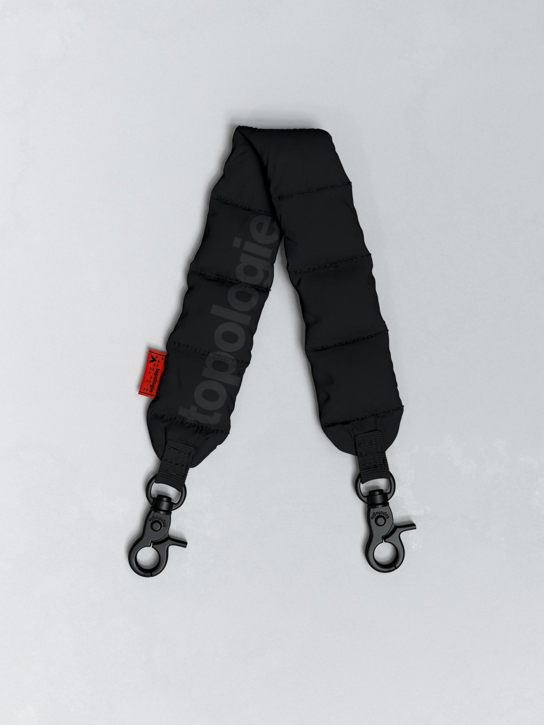 Deze zwarte puffer strap van Topologie maakt elke tas meteen een stuk stoerder! Het gewatteerde ontwerp voelt comfortabel in je hand en de stevige metalen haken zorgen dat je ‘m makkelijk vastklikt aan je favoriete tas. Een klein detail dat je look groots kan veranderen.