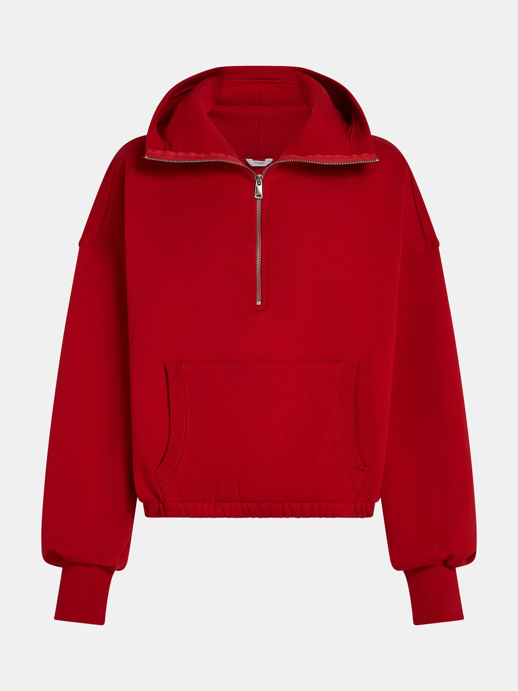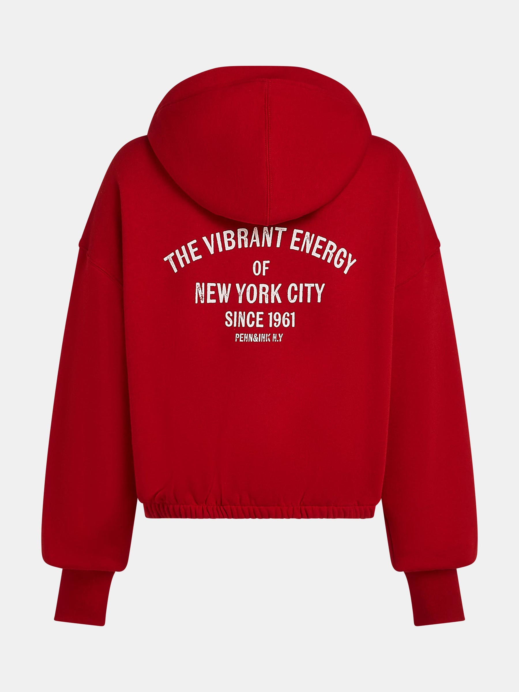 Deze rode hoodie van Penn & Ink brengt sportieve energie in elke look. Gemaakt van zacht katoen, met een halve rits en een opvallende print op de rug. De relaxte fit en elastische boorden zorgen voor een comfy pasvorm die perfect is voor casual dagen of een city stroll.