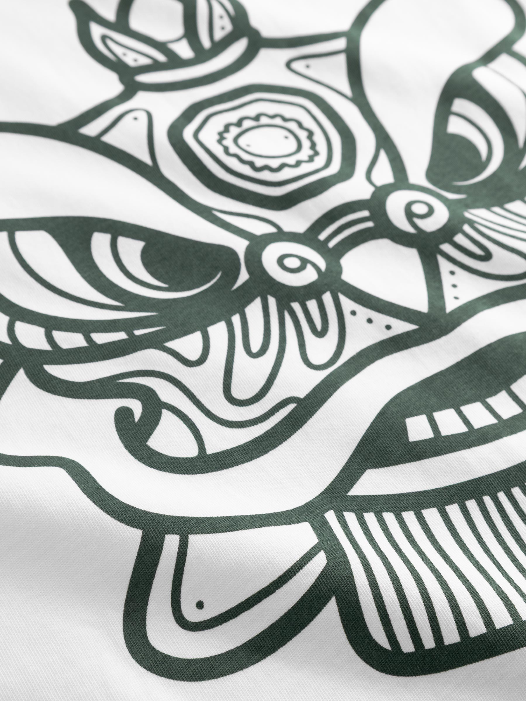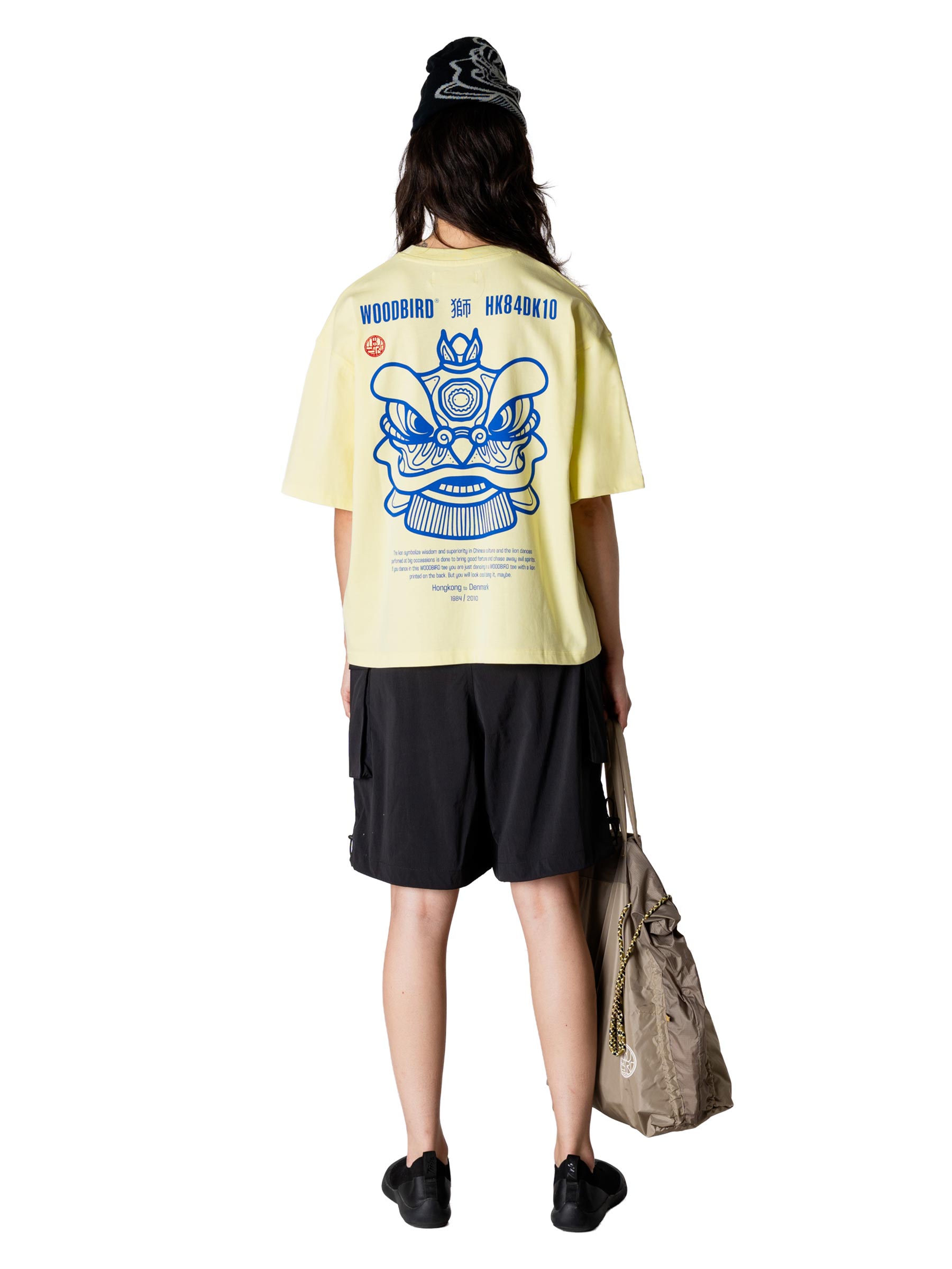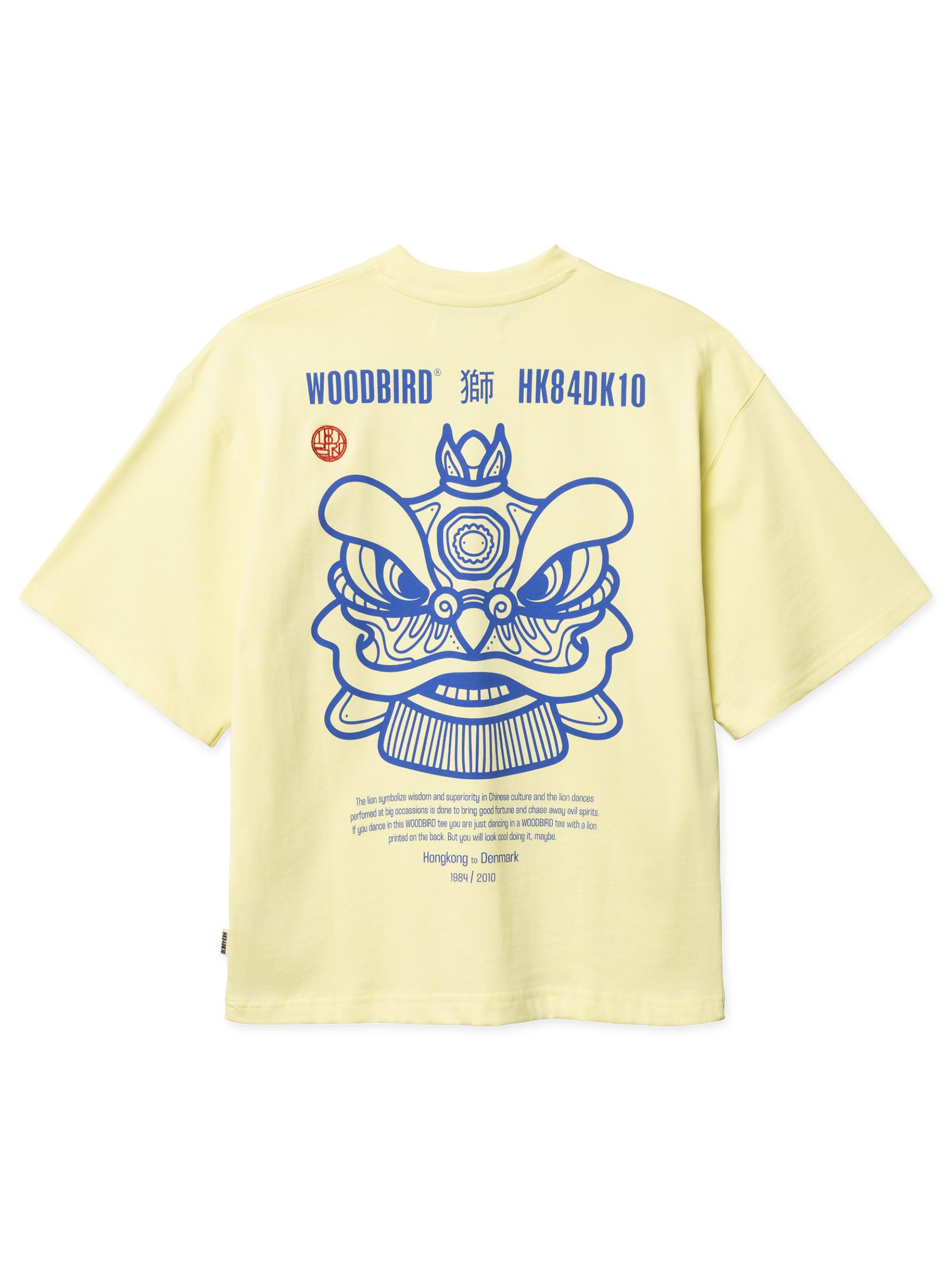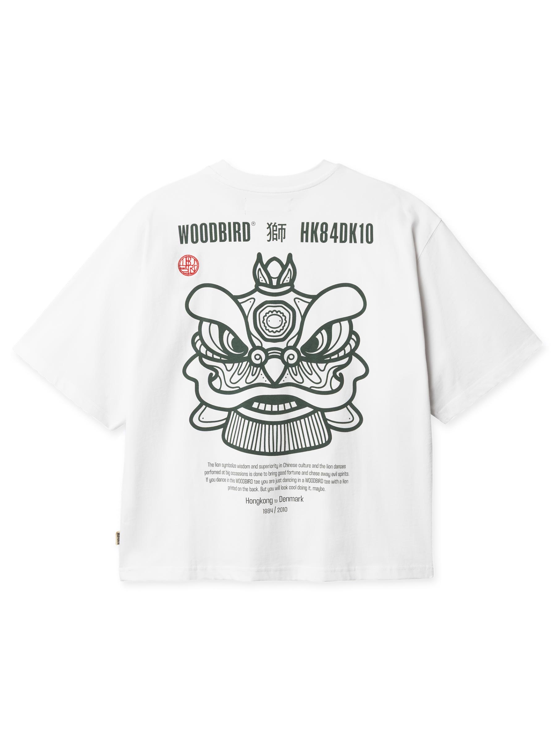 Dit oversized T-shirt van Woodbird draagt op de rug een gedetailleerde Chinese leeuwenkop, het symbool van geluk en wijsheid in de Chinese cultuur, aangevuld met Chinese karakters. De katoenen stof heeft dat gewicht dat je wilt van een goed T-shirt: stevig genoeg om mooi te vallen, zacht genoeg om de hele dag in rond te lopen.