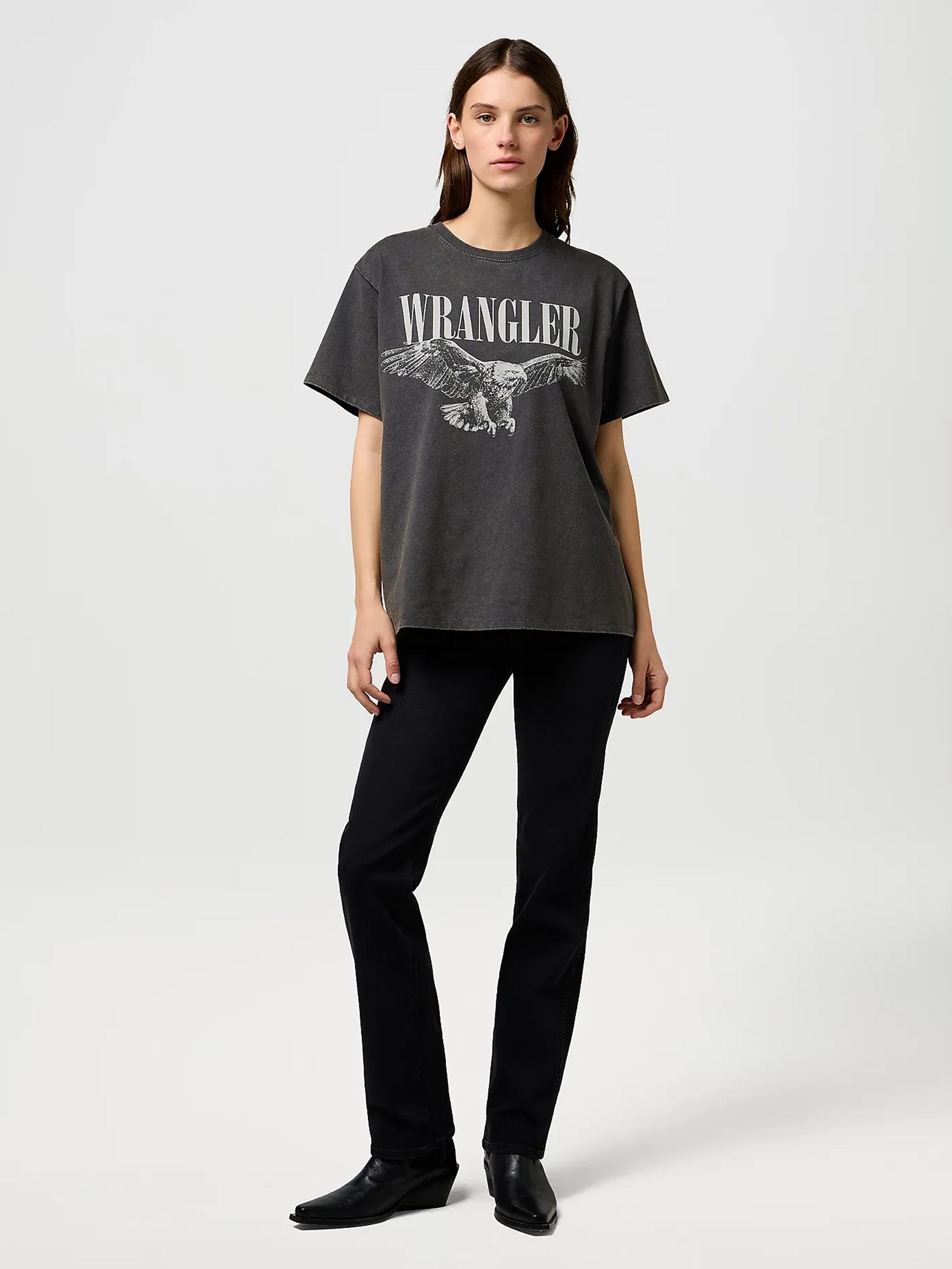 Dit antracietkleurige T-shirt van Wrangler heeft die vintage look waar we fan van zijn. De grote adelaarprint en het vervaagde katoen geven het shirt een stoere, gedragen feel. Draag ‘m op je favoriete jeans voor een casual look.